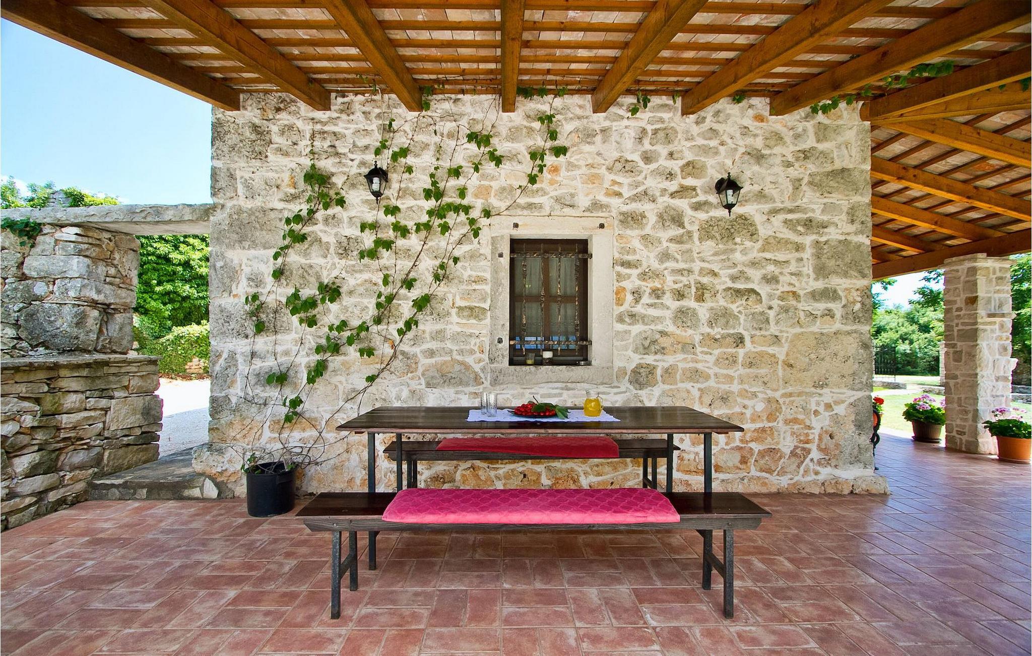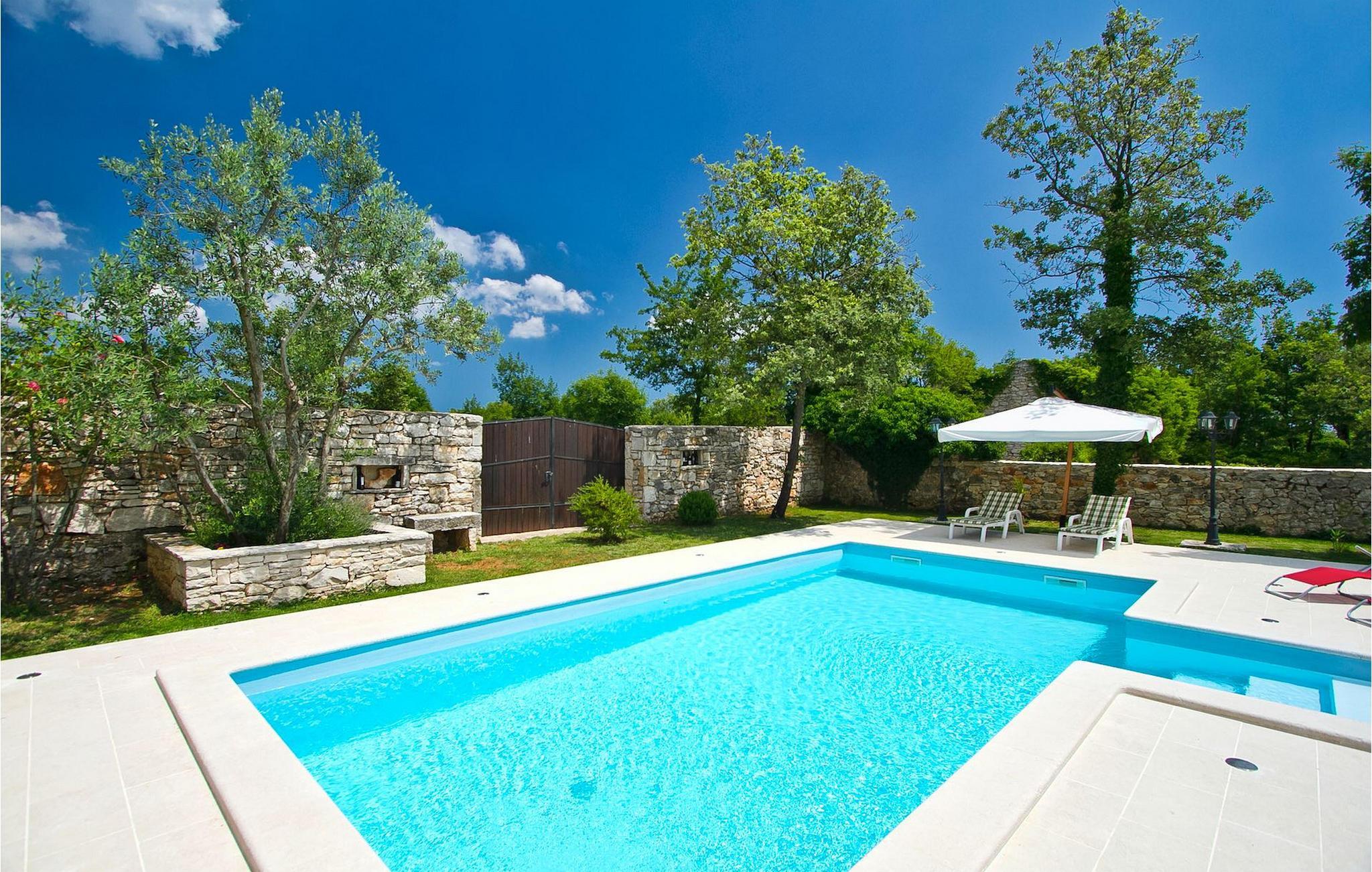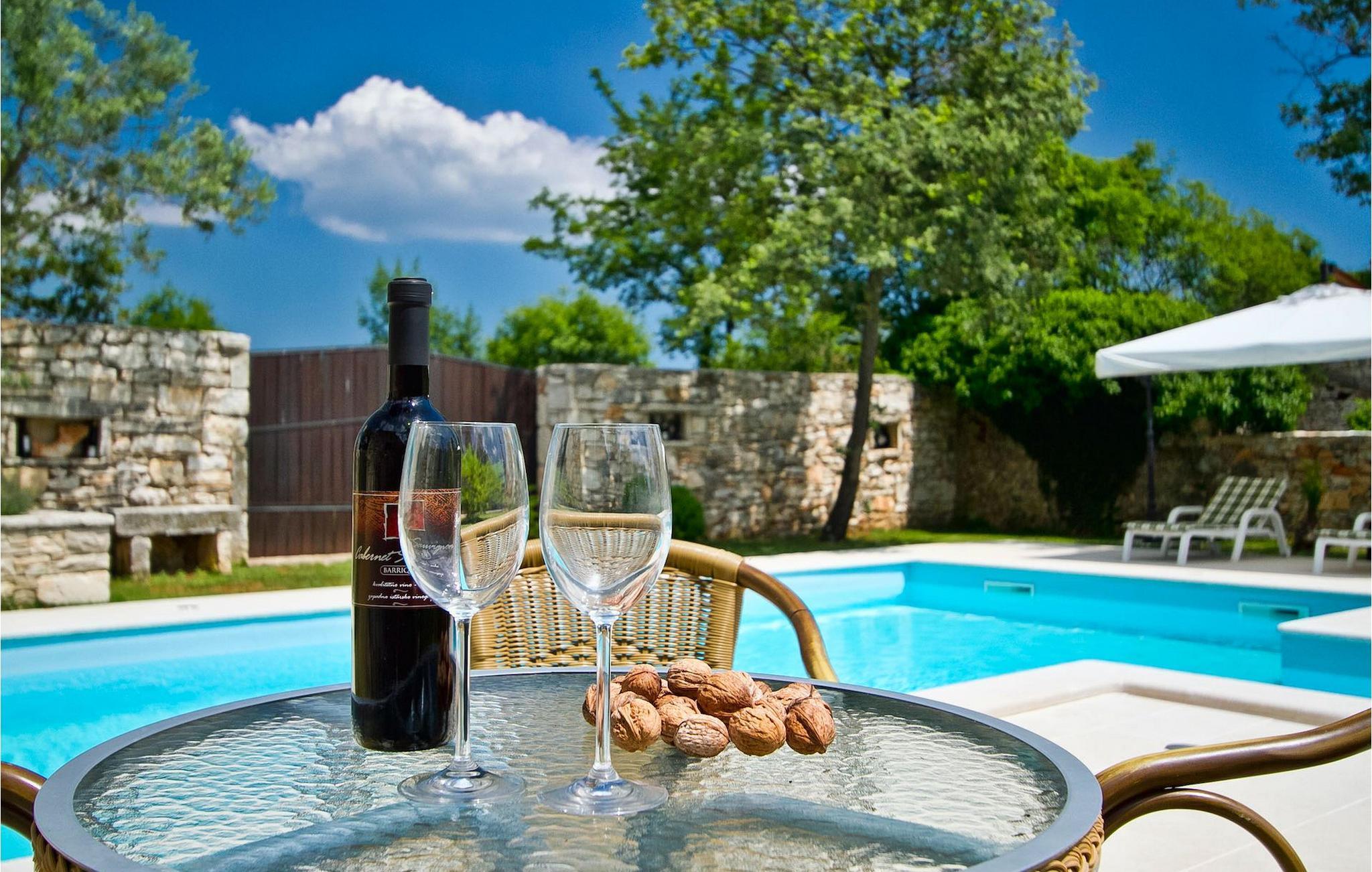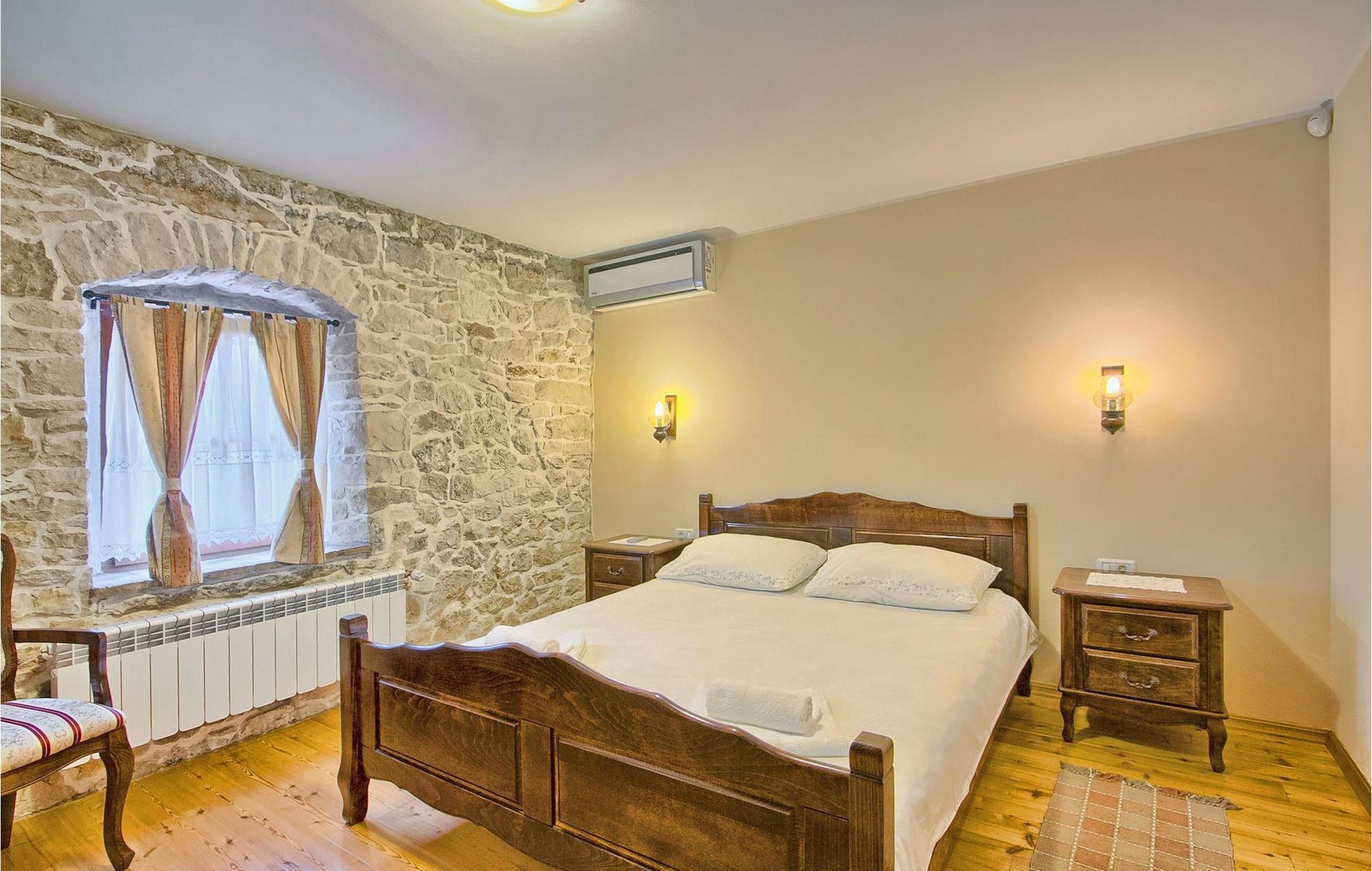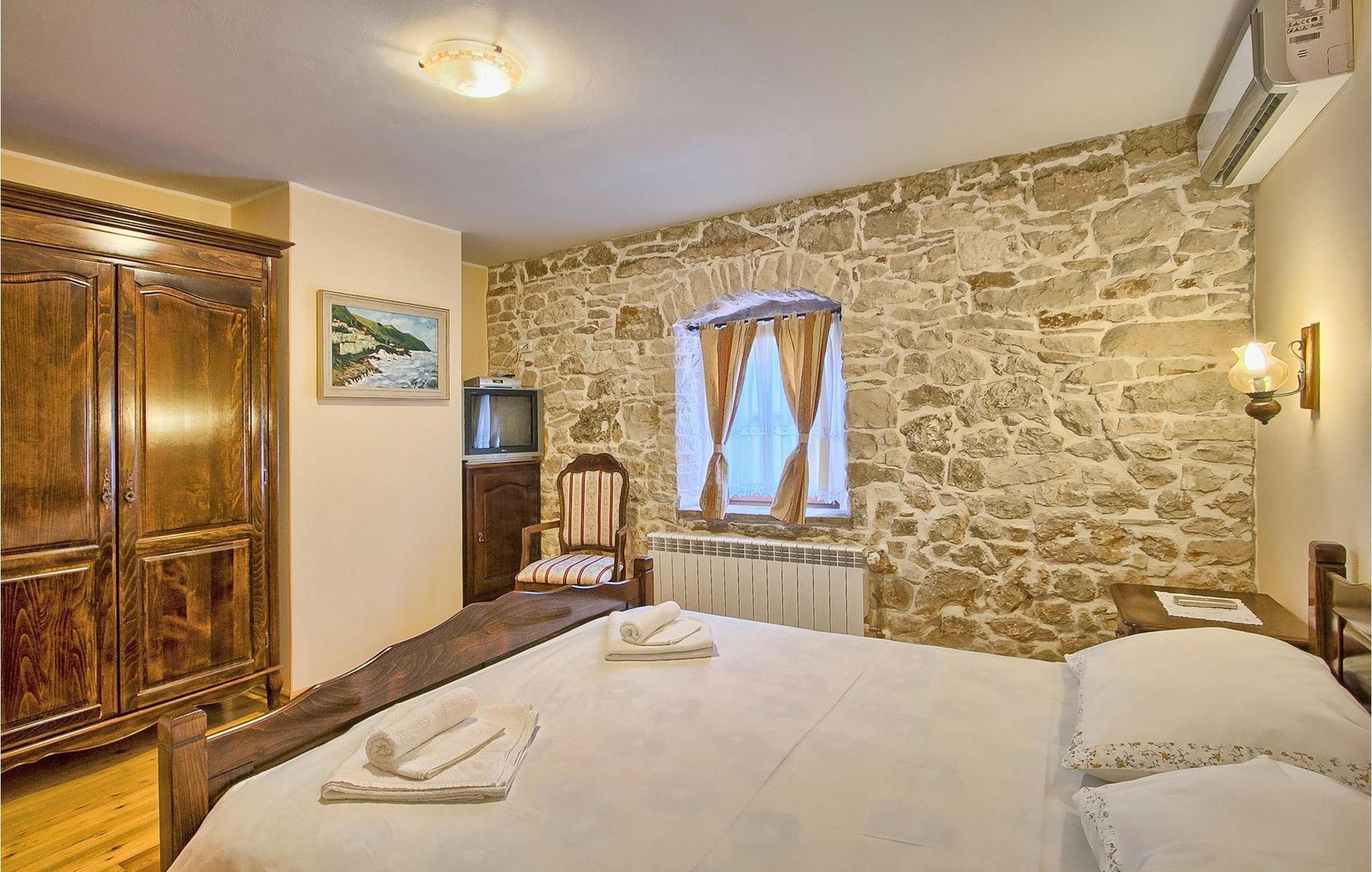 Denna charmiga stenvilla erbjuder total lugn och avskildhet för gäster som söker lugn och en fristad för att fly från det moderna livets liv och rörelse. Denna avskilda villa ligger på en fridfull privat tomt och erbjuder många intressanta funktioner som en privat pool, stengrill, lekplats, streetballområde, badminton- och fotbollsplan ... Villan erbjuder sina gäster 2 dubbelrum, varav ett är utrustat med en barnsäng om du skulle behöva det. Sovrummet på 1:a våningen har satellit-TV. Det finns 2 badrum, varav det ena är utrustat med ett massagebadkar. Villan har en vacker, rymlig trädgård med medelhavsväxter som tillsammans med den privata poolen utgör den perfekta miljön för en avkopplande semester. Viktigt: yngre besöksgrupper är inte tillåtna! Krnica är en liten by i Istrien, inte långt från havet (5 minuter med bil). Det är den perfekta utgångspunkten för dagsutflykter till de berömda städerna Pula, Rovinj och Opatija. Krnica är också en utmärkt plats för att kombinera en avkopplande och aktiv semester. I den närliggande hamnen finns ett utmärkt utrustat dykcenter som erbjuder spännande nattdyk till gamla sjunkna fartyg, spektakulära undervattensgrottor, klippor och utforskningar av den spektakulära mångfalden i undervattensvärlden för nybörjare och erfarna dykare. Alla Istriens kuster erbjuder varierande stränder och kristallklart vatten. Den orörda kustlinjen är hem för lugna vikar med små stenar, vågtvättade nya stenar och släta stenar med doftande skogar. Detta område med många kust- och skogsstigar är perfekt för mountainbike, långa avkopplande promenader, ridning och är en bra utgångspunkt för att utforska Istriens magi. Krnicki Porat är en vacker hamn med tidlösa fisketraditioner.