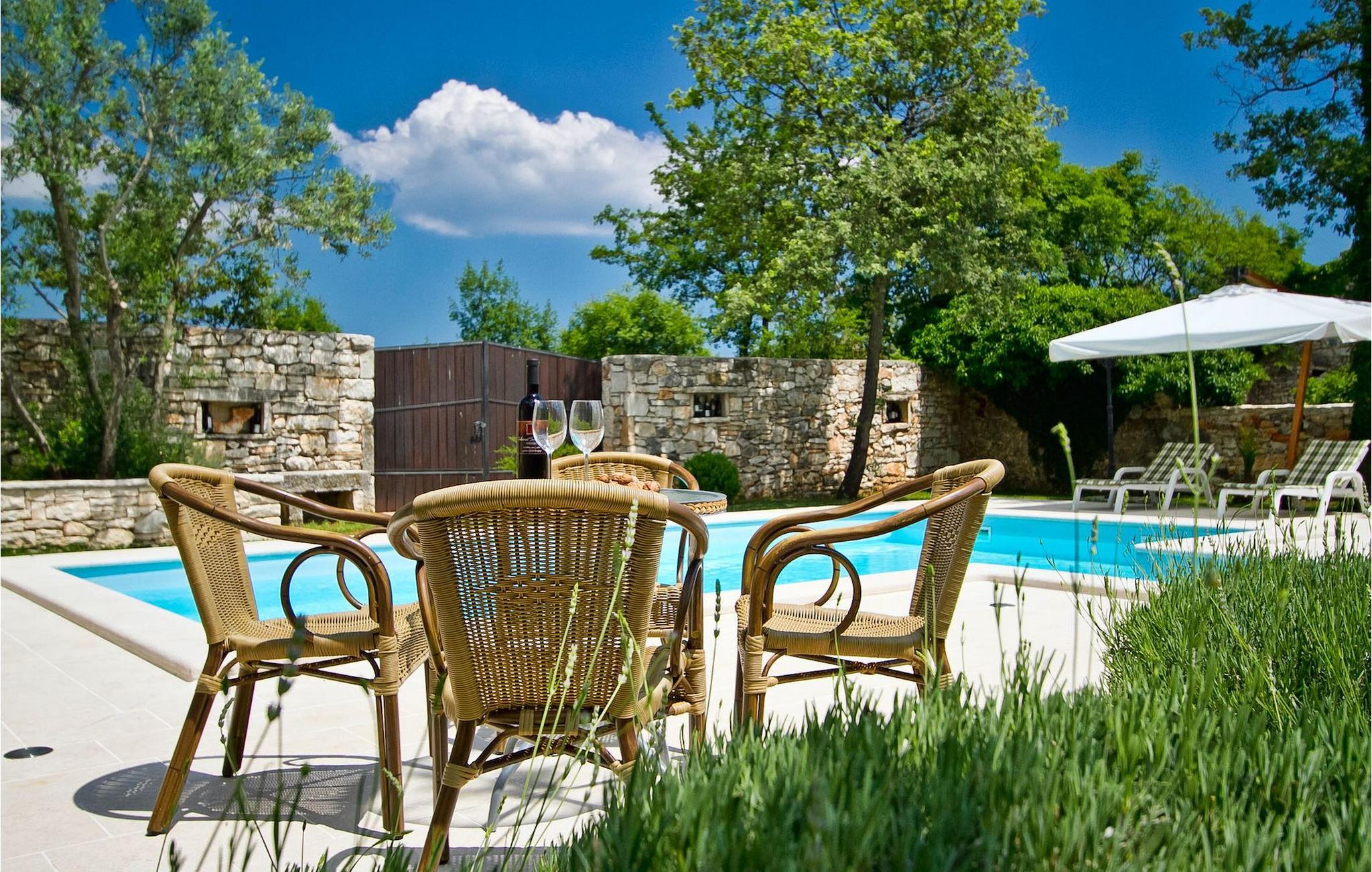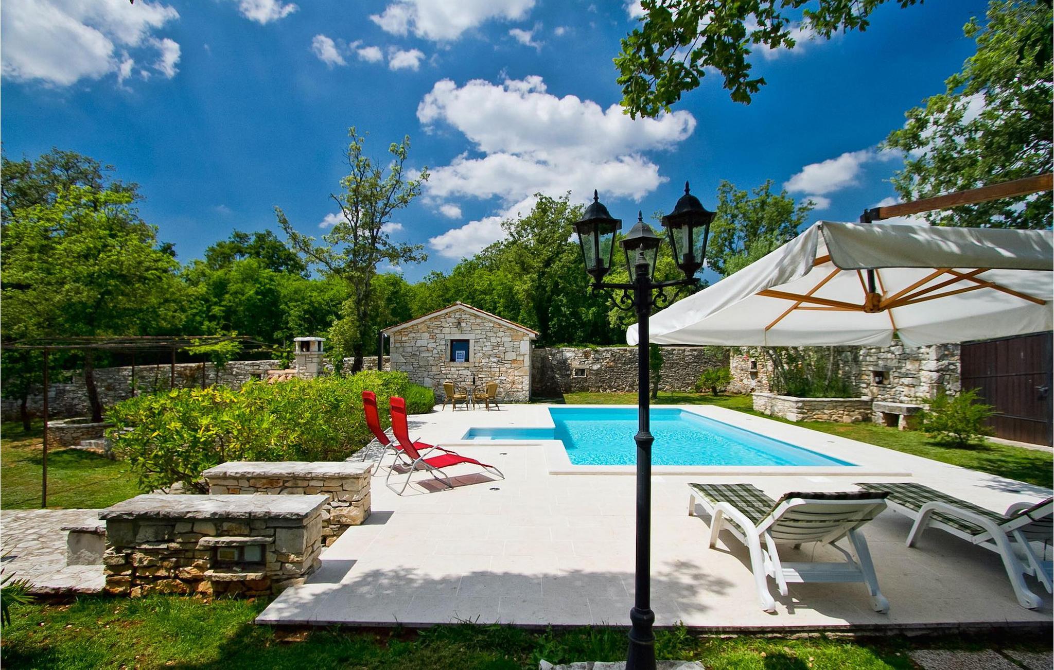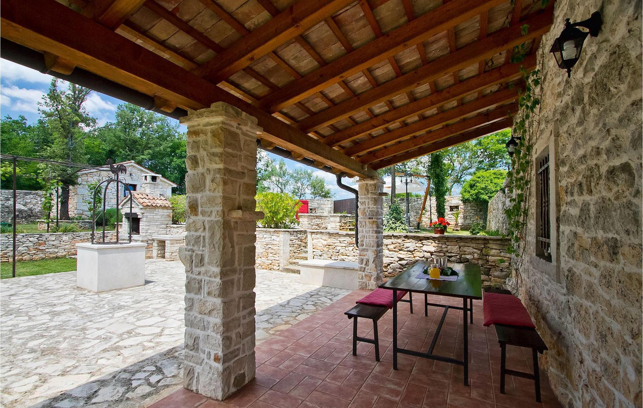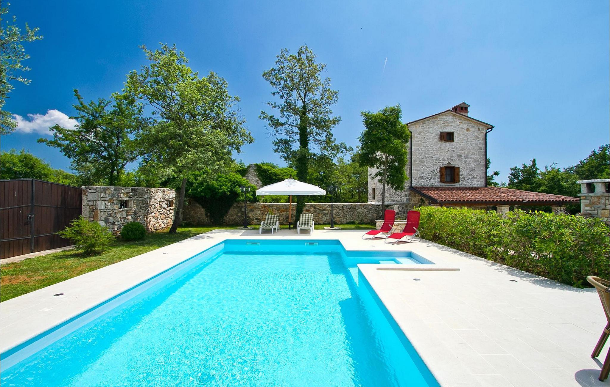 Denna charmiga stenvilla erbjuder total lugn och avskildhet för gäster som söker lugn och en fristad för att fly från det moderna livets liv och rörelse. Denna avskilda villa ligger på en fridfull privat tomt och erbjuder många intressanta funktioner som en privat pool, stengrill, lekplats, streetballområde, badminton- och fotbollsplan ... Villan erbjuder sina gäster 2 dubbelrum, varav ett är utrustat med en barnsäng om du skulle behöva det. Sovrummet på 1:a våningen har satellit-TV. Det finns 2 badrum, varav det ena är utrustat med ett massagebadkar. Villan har en vacker, rymlig trädgård med medelhavsväxter som tillsammans med den privata poolen utgör den perfekta miljön för en avkopplande semester. Viktigt: yngre besöksgrupper är inte tillåtna! Krnica är en liten by i Istrien, inte långt från havet (5 minuter med bil). Det är den perfekta utgångspunkten för dagsutflykter till de berömda städerna Pula, Rovinj och Opatija. Krnica är också en utmärkt plats för att kombinera en avkopplande och aktiv semester. I den närliggande hamnen finns ett utmärkt utrustat dykcenter som erbjuder spännande nattdyk till gamla sjunkna fartyg, spektakulära undervattensgrottor, klippor och utforskningar av den spektakulära mångfalden i undervattensvärlden för nybörjare och erfarna dykare. Alla Istriens kuster erbjuder varierande stränder och kristallklart vatten. Den orörda kustlinjen är hem för lugna vikar med små stenar, vågtvättade nya stenar och släta stenar med doftande skogar. Detta område med många kust- och skogsstigar är perfekt för mountainbike, långa avkopplande promenader, ridning och är en bra utgångspunkt för att utforska Istriens magi. Krnicki Porat är en vacker hamn med tidlösa fisketraditioner.