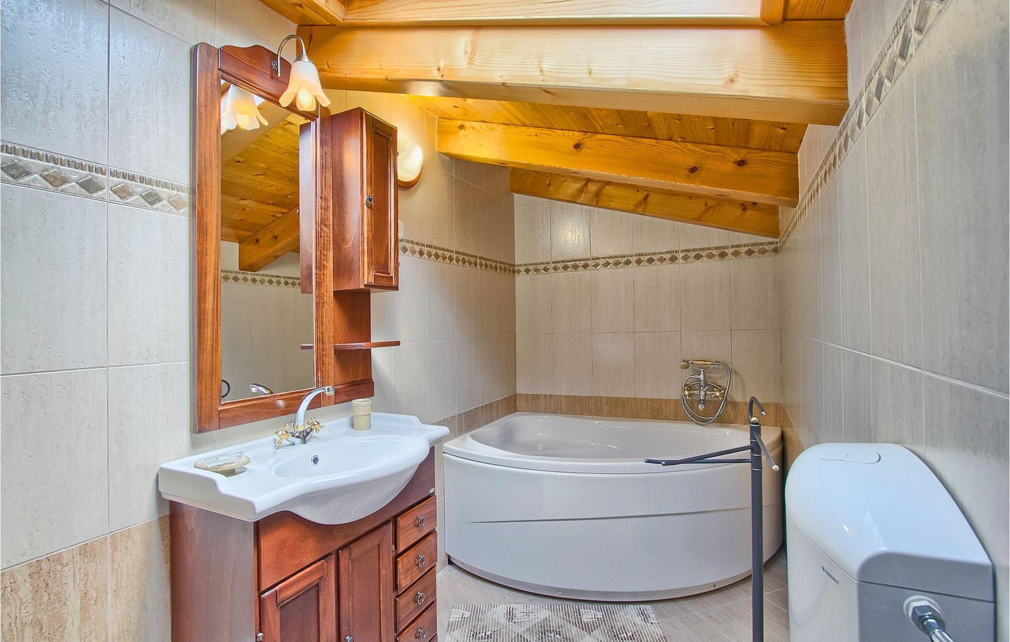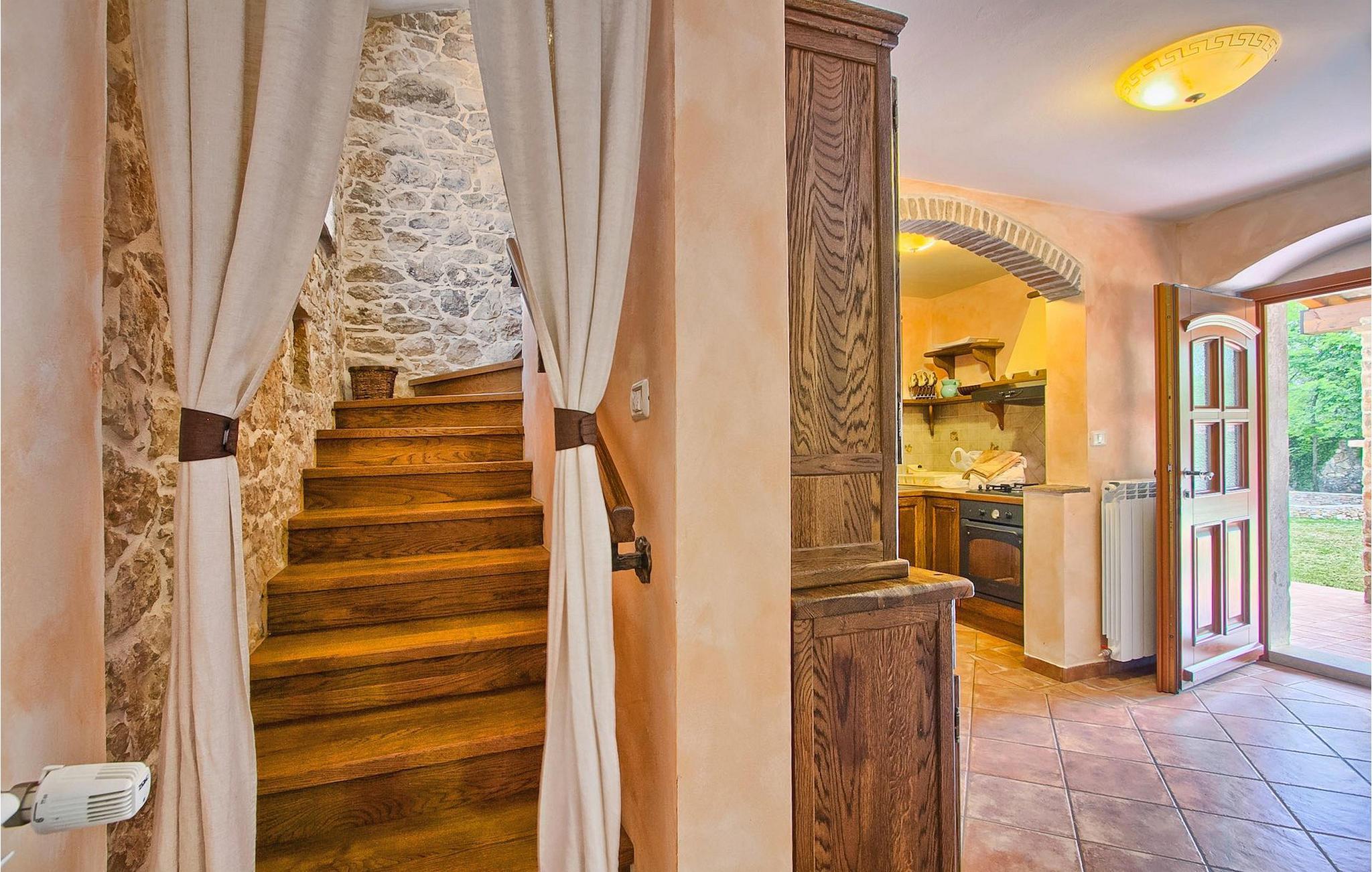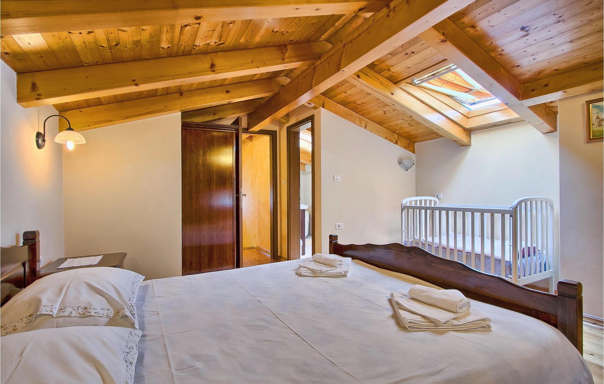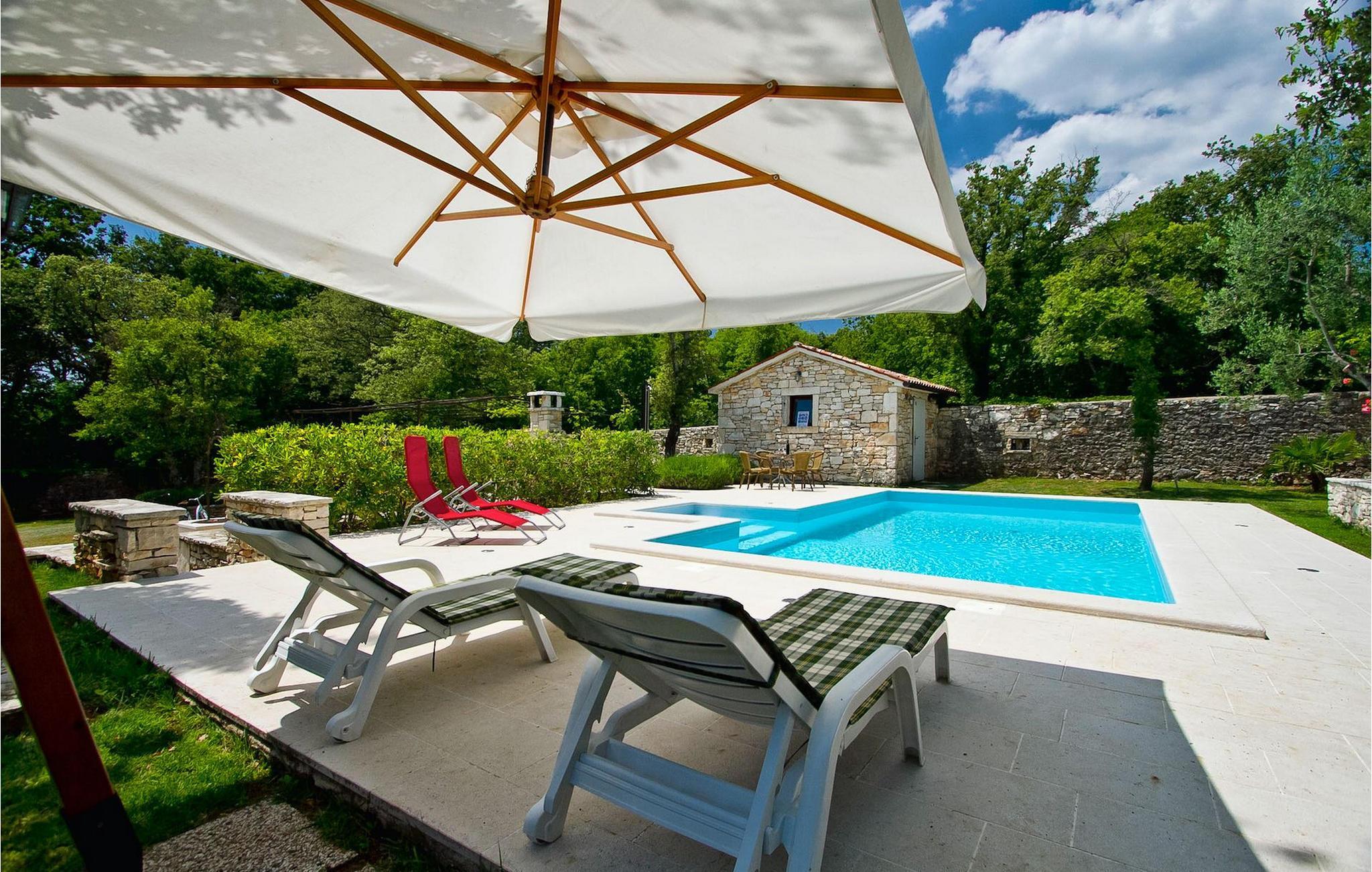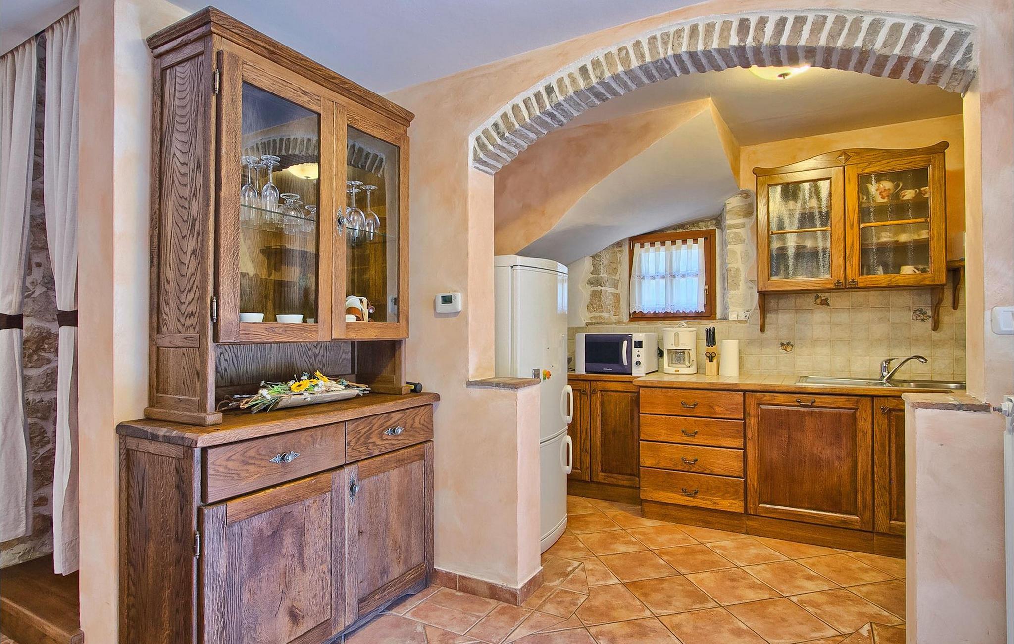 Denna charmiga stenvilla erbjuder total lugn och avskildhet för gäster som söker lugn och en fristad för att fly från det moderna livets liv och rörelse. Denna avskilda villa ligger på en fridfull privat tomt och erbjuder många intressanta funktioner som en privat pool, stengrill, lekplats, streetballområde, badminton- och fotbollsplan ... Villan erbjuder sina gäster 2 dubbelrum, varav ett är utrustat med en barnsäng om du skulle behöva det. Sovrummet på 1:a våningen har satellit-TV. Det finns 2 badrum, varav det ena är utrustat med ett massagebadkar. Villan har en vacker, rymlig trädgård med medelhavsväxter som tillsammans med den privata poolen utgör den perfekta miljön för en avkopplande semester. Viktigt: yngre besöksgrupper är inte tillåtna! Krnica är en liten by i Istrien, inte långt från havet (5 minuter med bil). Det är den perfekta utgångspunkten för dagsutflykter till de berömda städerna Pula, Rovinj och Opatija. Krnica är också en utmärkt plats för att kombinera en avkopplande och aktiv semester. I den närliggande hamnen finns ett utmärkt utrustat dykcenter som erbjuder spännande nattdyk till gamla sjunkna fartyg, spektakulära undervattensgrottor, klippor och utforskningar av den spektakulära mångfalden i undervattensvärlden för nybörjare och erfarna dykare. Alla Istriens kuster erbjuder varierande stränder och kristallklart vatten. Den orörda kustlinjen är hem för lugna vikar med små stenar, vågtvättade nya stenar och släta stenar med doftande skogar. Detta område med många kust- och skogsstigar är perfekt för mountainbike, långa avkopplande promenader, ridning och är en bra utgångspunkt för att utforska Istriens magi. Krnicki Porat är en vacker hamn med tidlösa fisketraditioner.