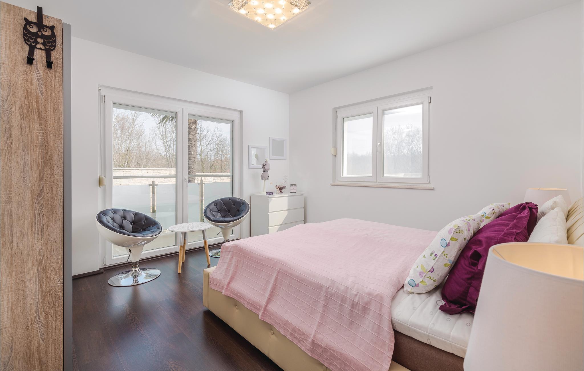 Detta semesterhus med pool ligger i Beneci, en liten by mellan Rabac och Labin. Det består av två boendeenheter med utvändiga trappor. Den stilfulla inredningen har allt du behöver för en trevlig semester. Skickligt placerade kontraster i svart och vitt har en uppfriskande och avkopplande effekt på samma gång. Poolen garanterar svalka och badglädje, medan bordtennis och dart också finns tillgängliga för underhållning. Besök den pittoreska staden Labin som ligger på en kulle med sina smala gator och gamla byggnader. Från Rabac kan du ta båtturer till öarna Cres och Losinj.