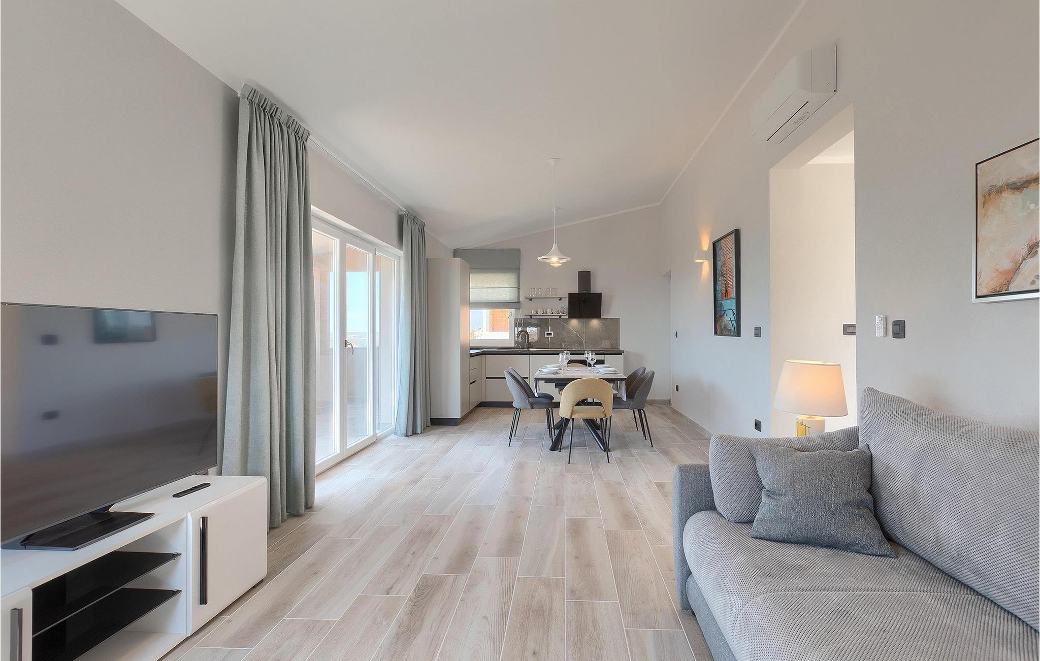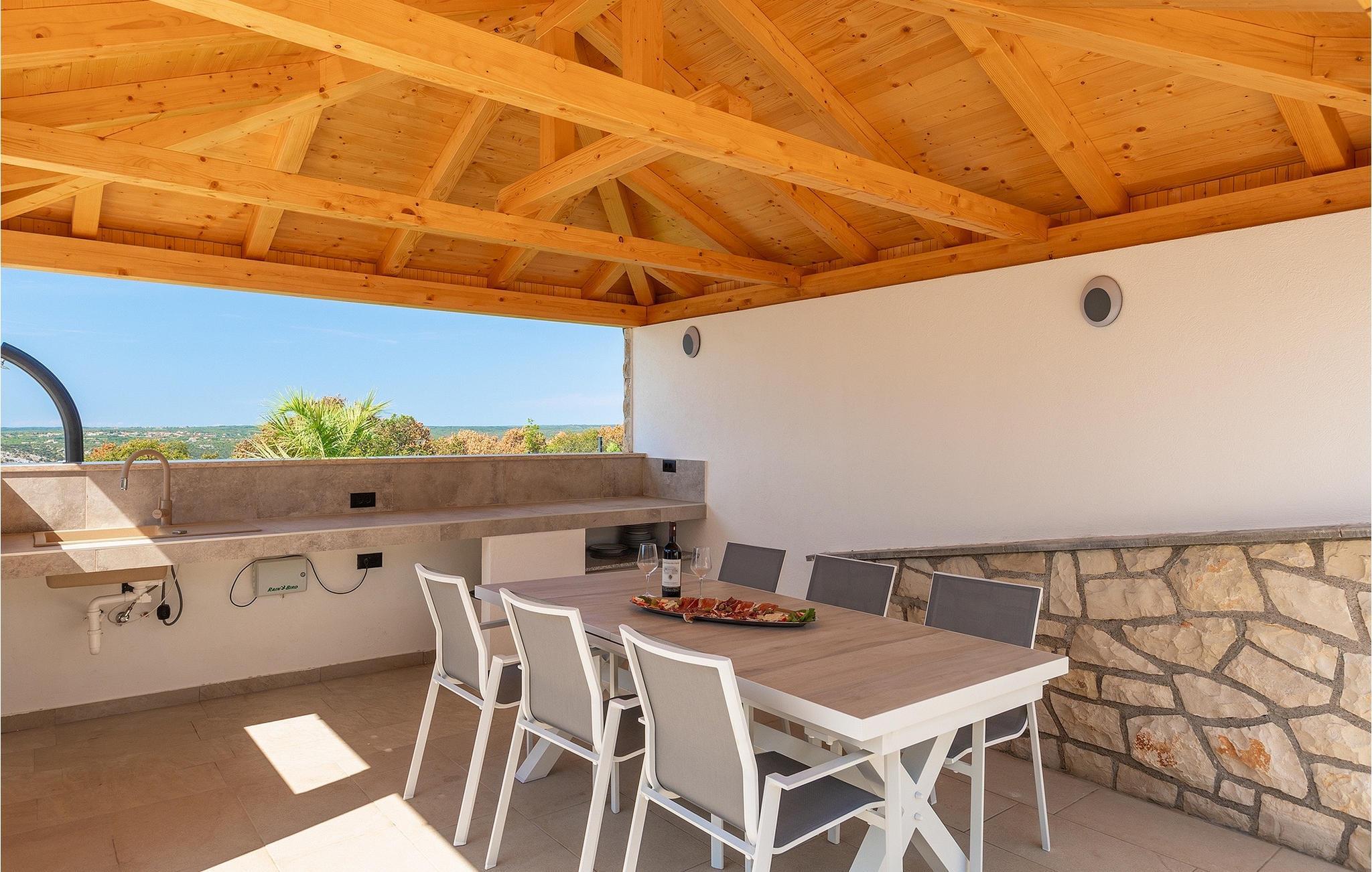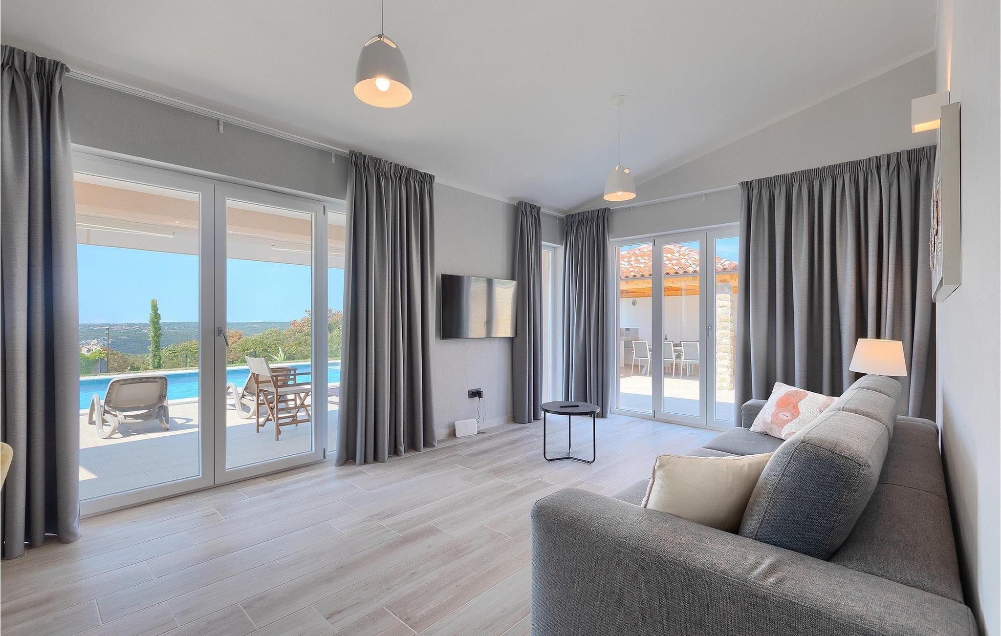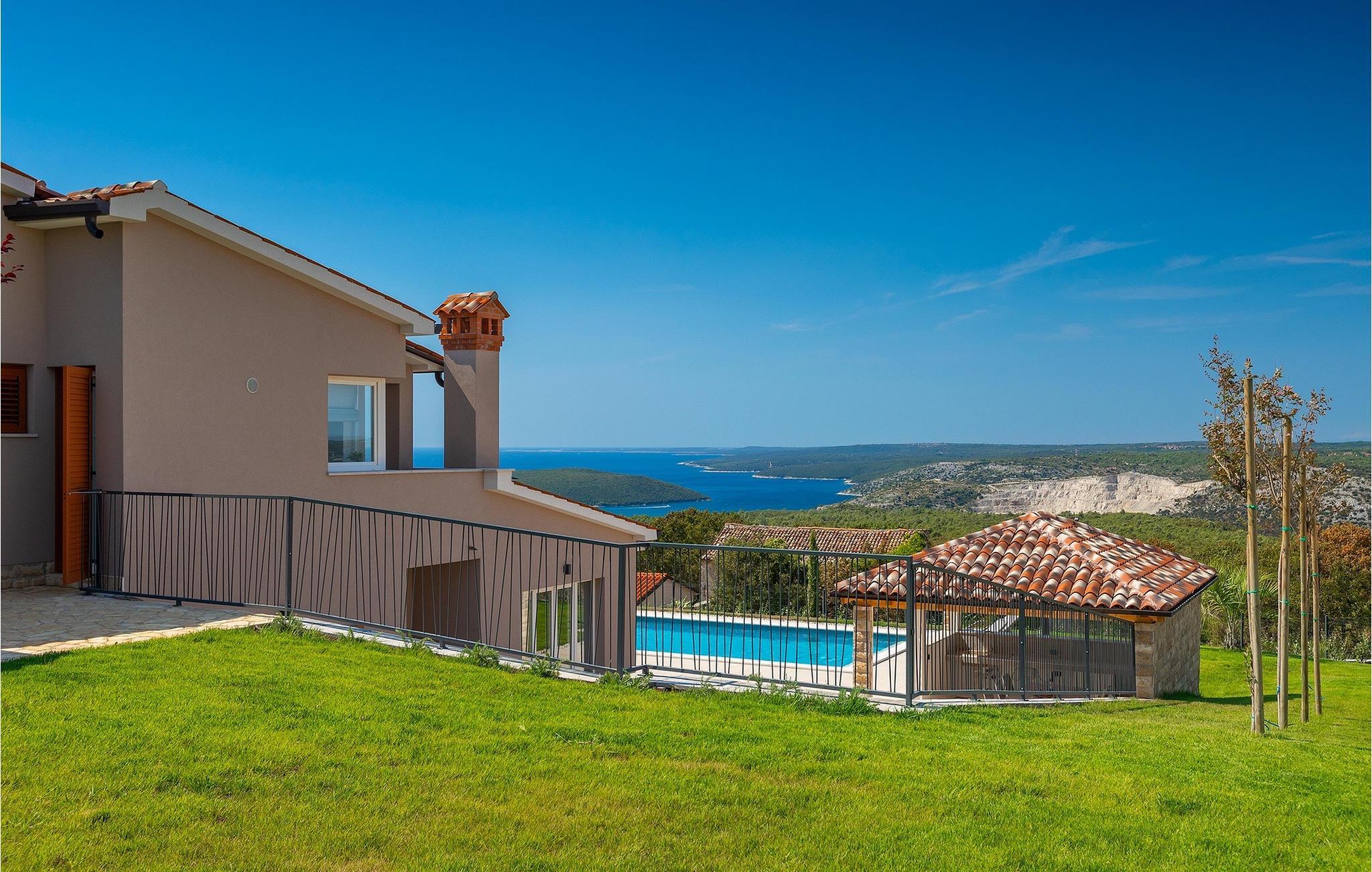 Villa Bay View är en modern villa som inbjuder dig att koppla av och varva ner med sina noggrant utvalda möbler och rymlighet. Medan du dricker ditt morgonkaffe på terrassen kan du njuta av den underbara panoramautsikten som sträcker sig hela vägen till havet. Medan du njuter av utsikten kan dina nära och kära fly undan sommarvärmen i poolen eller koppla av på solstolarna vid poolen. På den yttre delen av den täckta terrassen finns ett utomhusbord och en grill där du kan tillaga istriska delikatesser. Villan är omgiven av en vacker grön gräsmatta, som tillsammans med panoramautsikten över havet erbjuder en unik upplevelse av naturen. Från utomhusområdet kommer du in i villans inre, där du omedelbart hittar ett modernt vardagsrum med ett fullt utrustat kök och matsal, 2 bekväma sovrum och 2 badrum. Inuti är lägenheterna inte anslutna med en trappa, men du går in i lägenheten från utsidan, och våningarna där ingångarna ligger ligger bara några steg bort.på första våningen i villan finns ett extra vardagsrum som gör utrymmet unikt med sin design, en matsal och ett modernt kök, 2 sovrum med eget badrum och en toalett. Boka Bay View Villa och säkra din drömsemester!