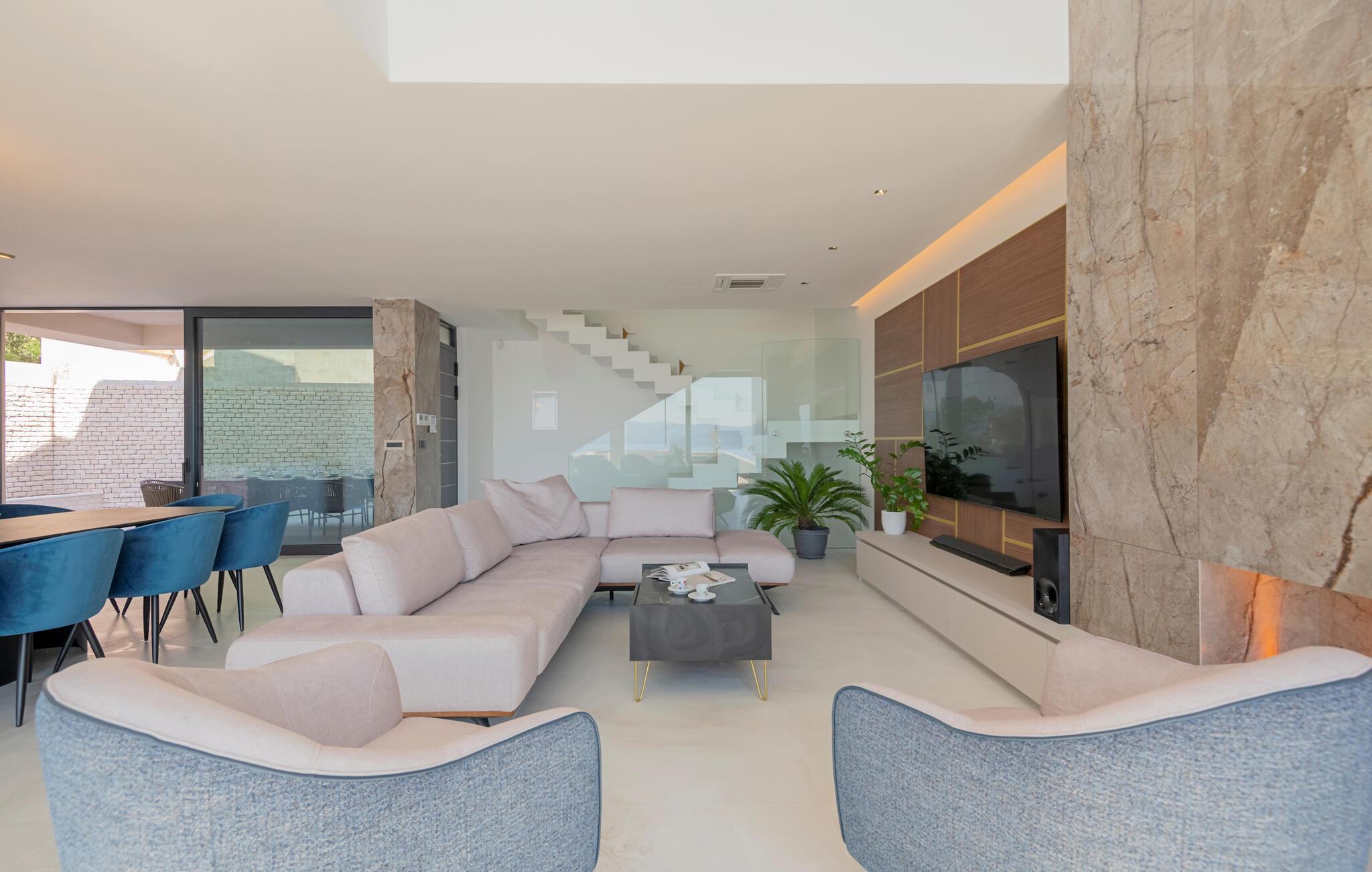 Ren lyx väntar dig i denna drömvilla med panoramautsikt över havet och bergen.