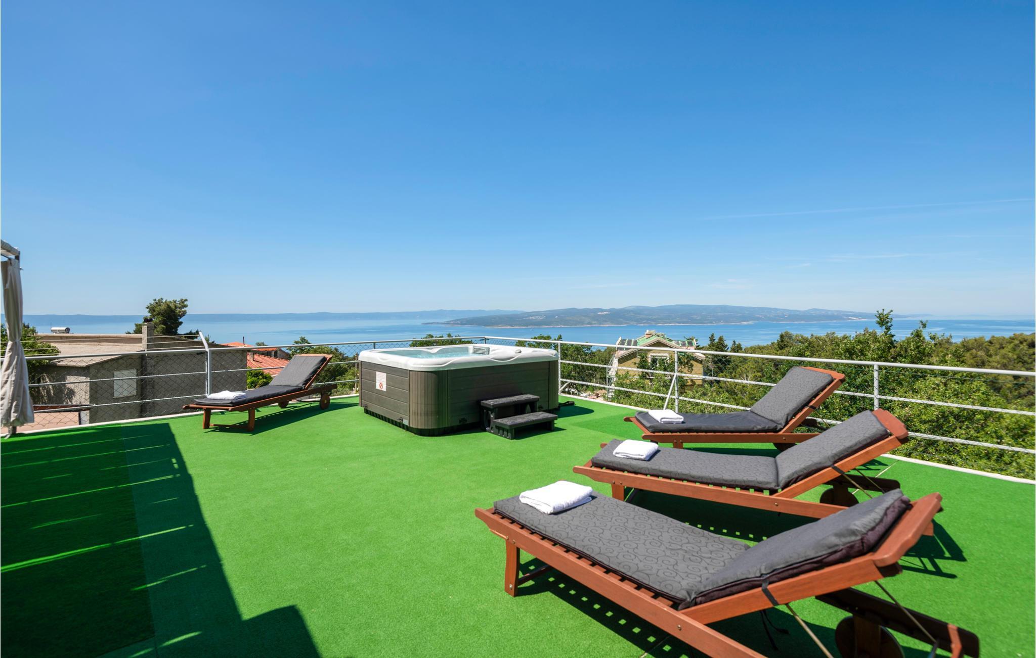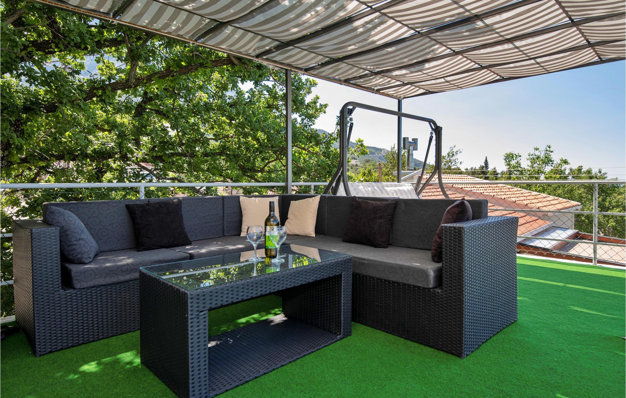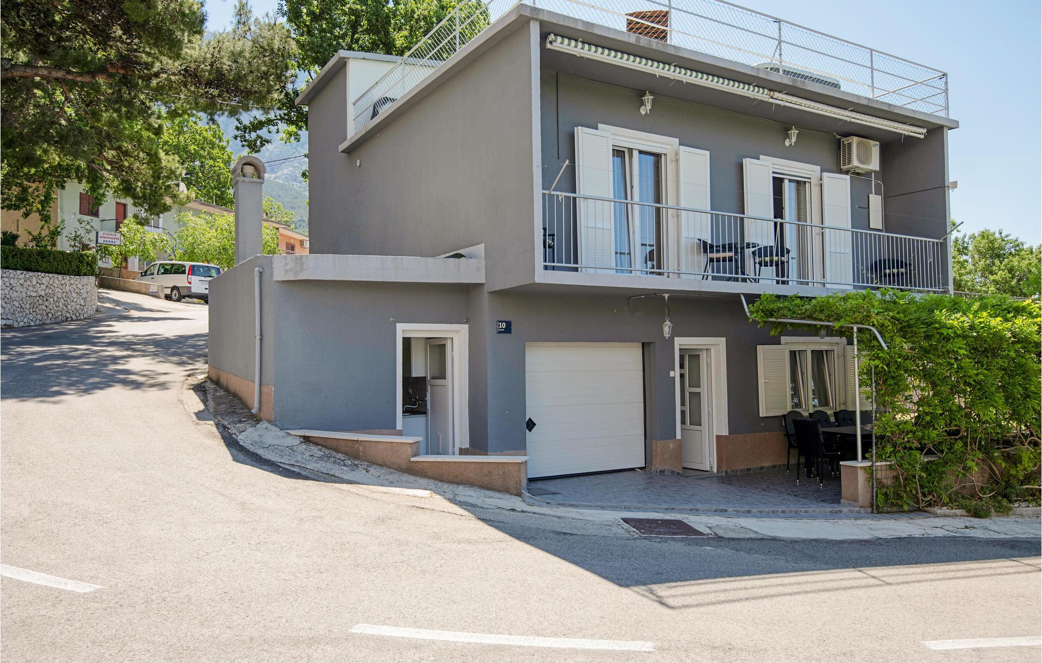 Detta vackert inredda och välutrustade semesterhus ligger vid foten av berget Biokovo, i den vackra, historiska byn Bast nära Baka Voda. Det består av en bottenvåning och en första våning, medan det på taket finns en terrass med bubbelpool. Här kan ni koppla av och njuta av utsikten över havet och öarna. På bottenvåningen finns också ett utomhuskök med grill och en annan möblerad terrass. Staden Makarska med sina många bekvämligheter ligger bara 10 kilometer bort, medan den vackra staden Baka Voda ligger bara 4 km från Bast.