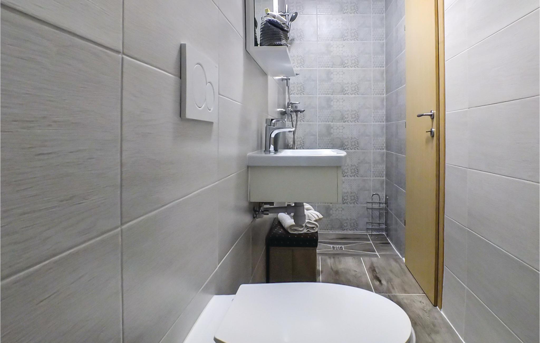 Badrum (nr. 1) - WC: Varmt och kallt vatten. Dusch