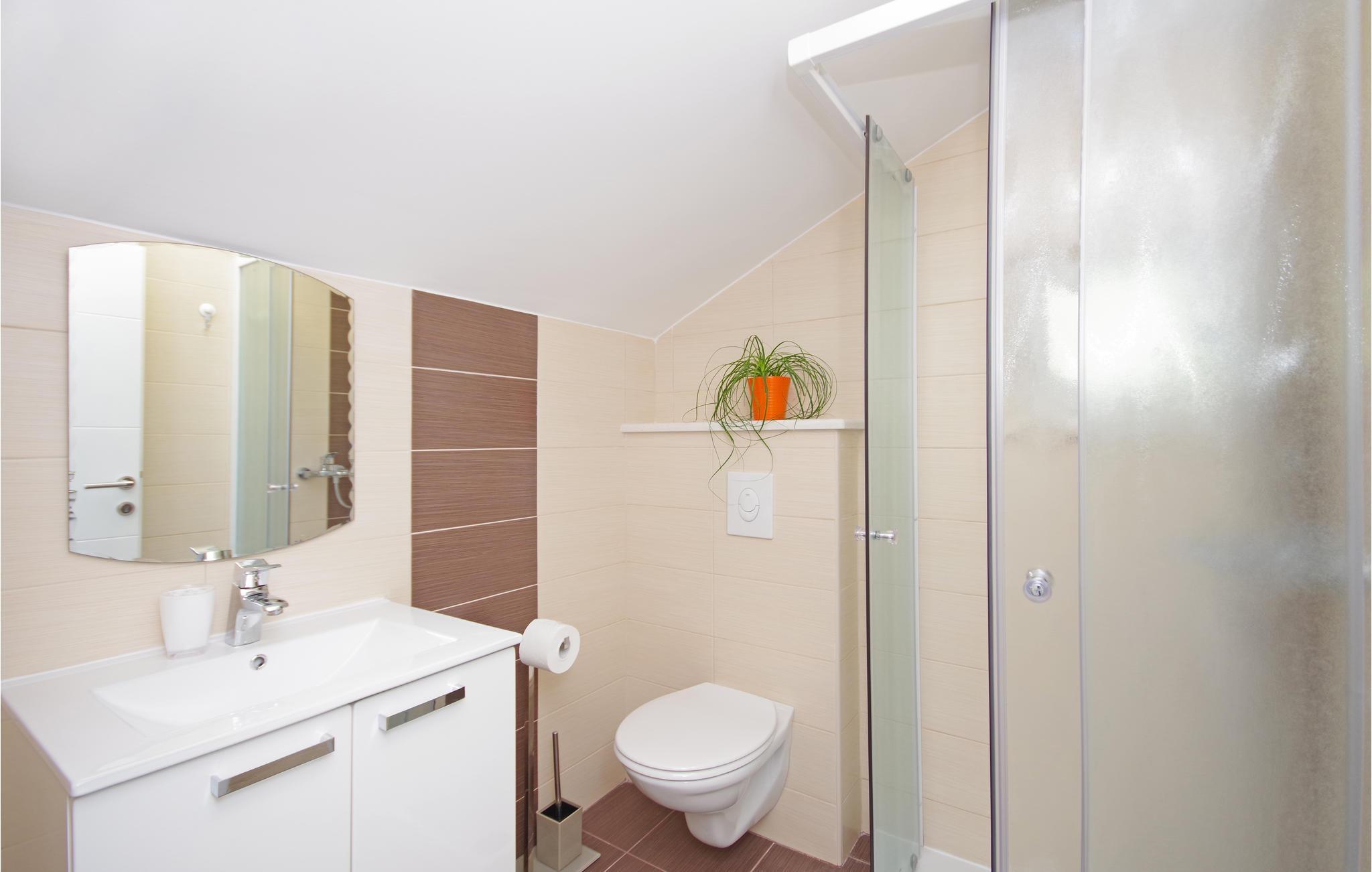 Badrum (nr. 3) - WC: Varmt och kallt vatten. Dusch