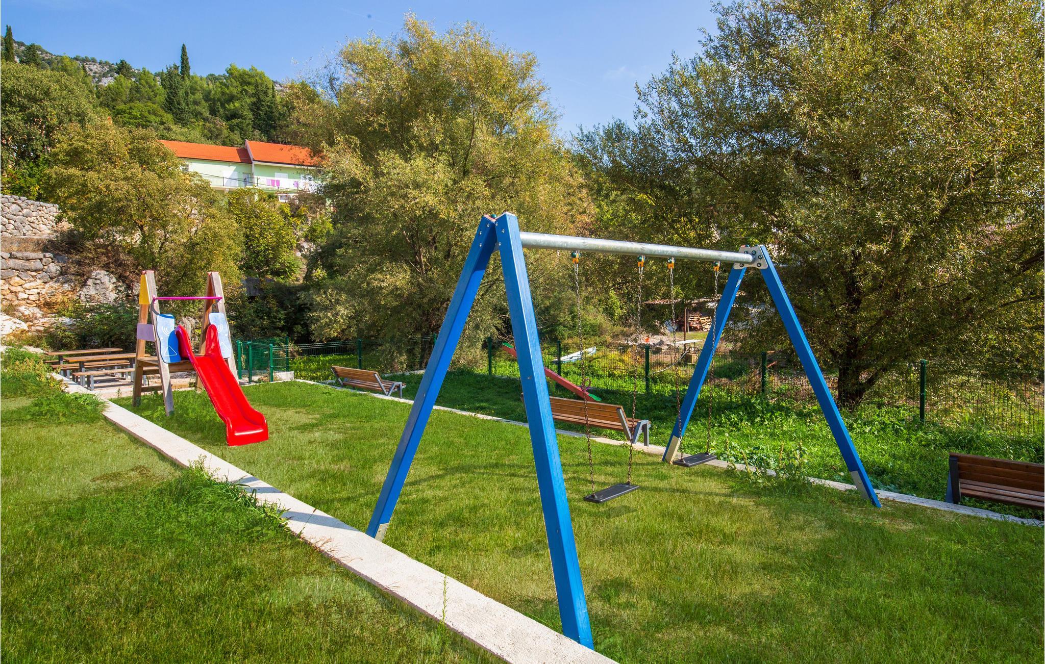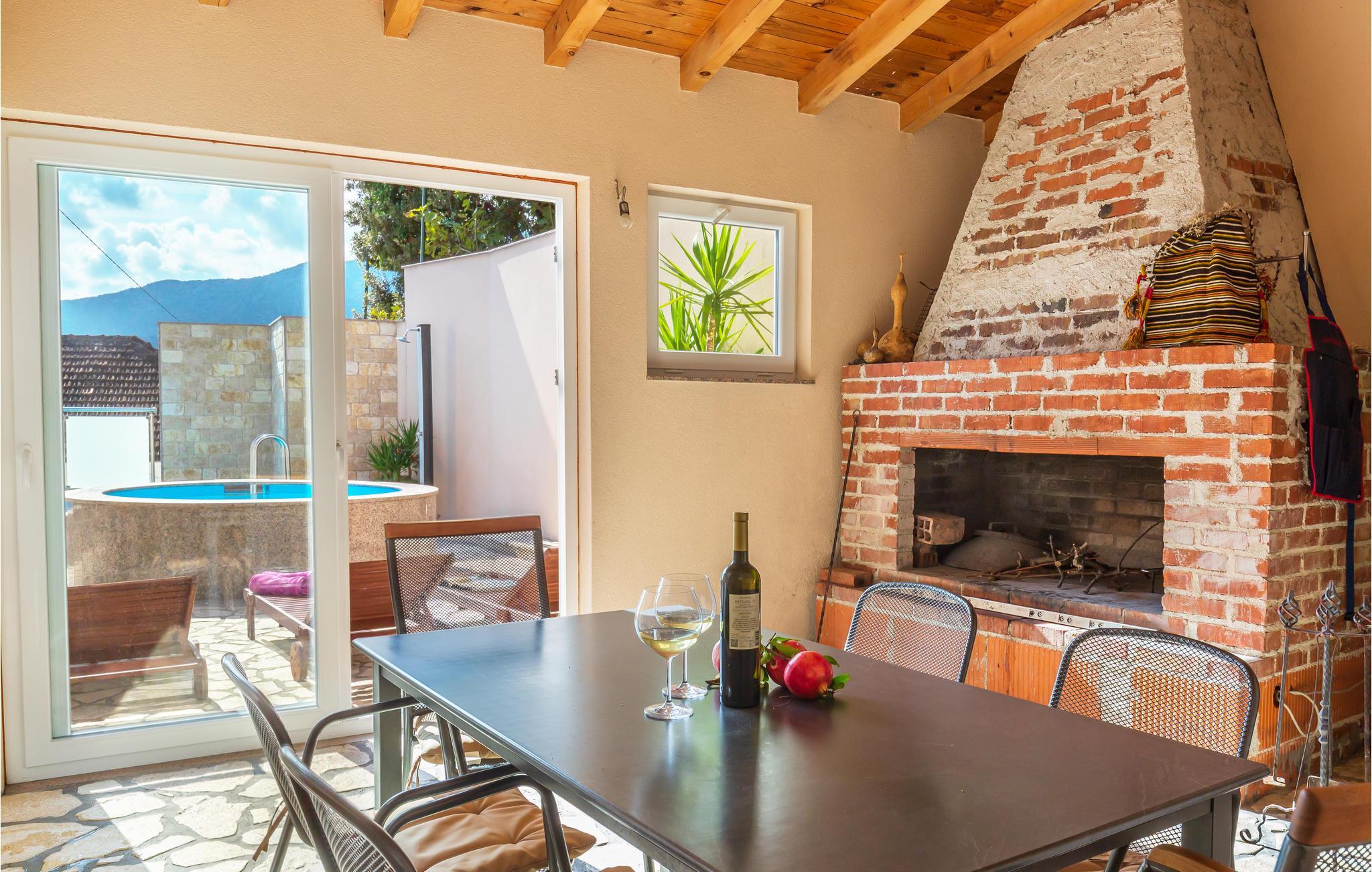 Detta vackra och trevligt inredda semesterhus ligger i hjärtat av det dalmatiska inlandet, nära staden Vrgorac. På bottenvåningen finns ett kök, ett vardagsrum, ett sovrum och ett badrum. Inre trappor leder till första våningen, där de andra sovrummen och badrummen ligger. I trädgården finns en pool och en stor täckt terrass med grill. Det finns en lekplats för barn i byn. För dem som föredrar rekreation i friska luften finns det vandrings- och cykelleder cirka 150 meter bort, liksom floden Matica. Täckt parkeringsplats mittemot.