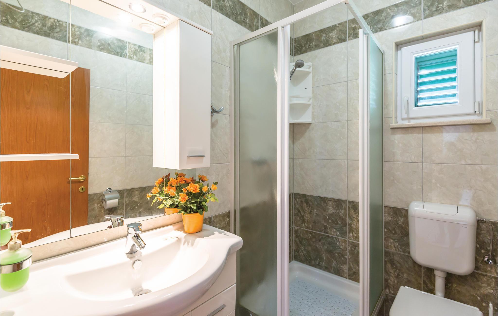 Badrum (nr. 1) - WC: Varmt och kallt vatten. Dusch