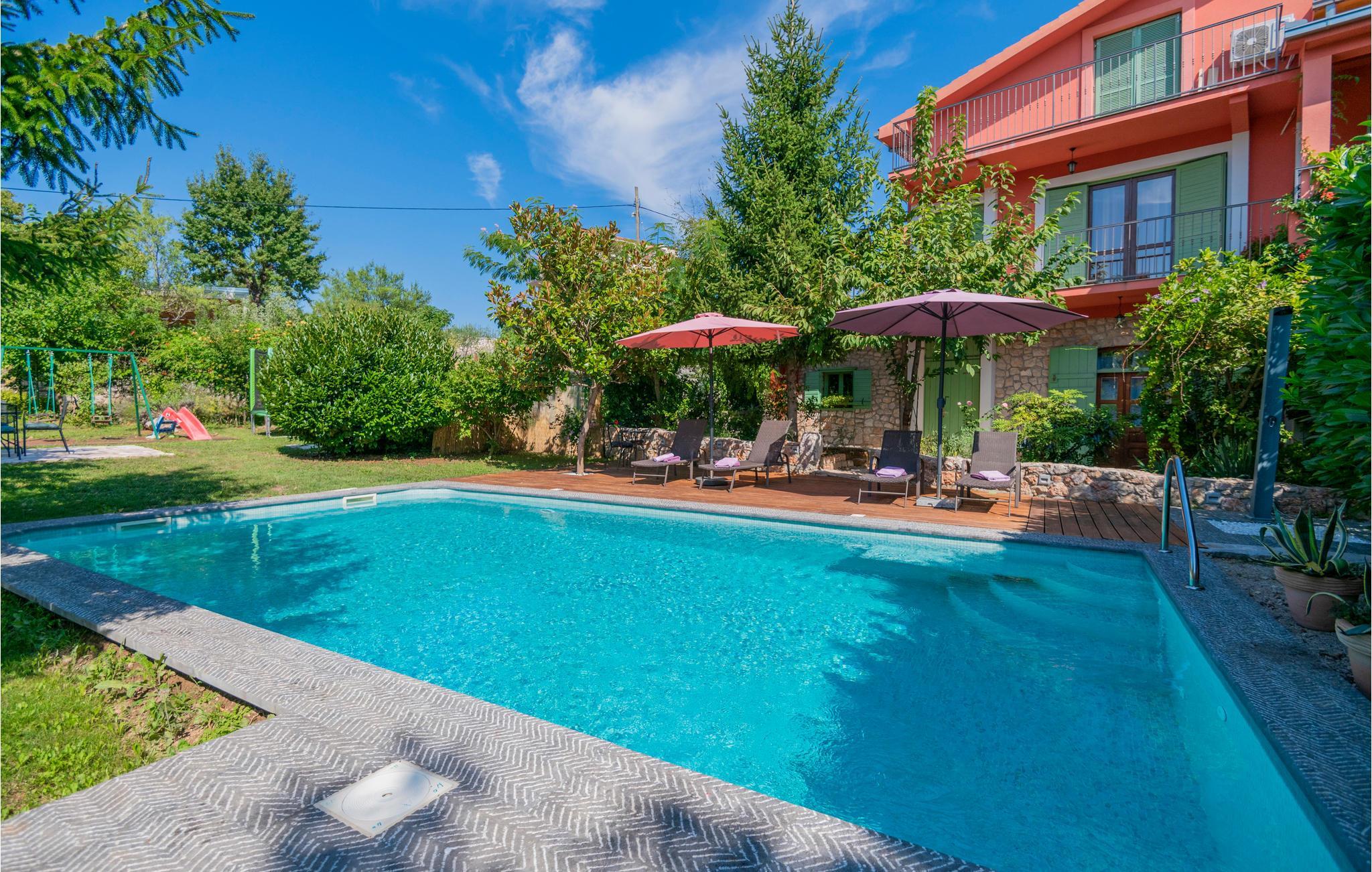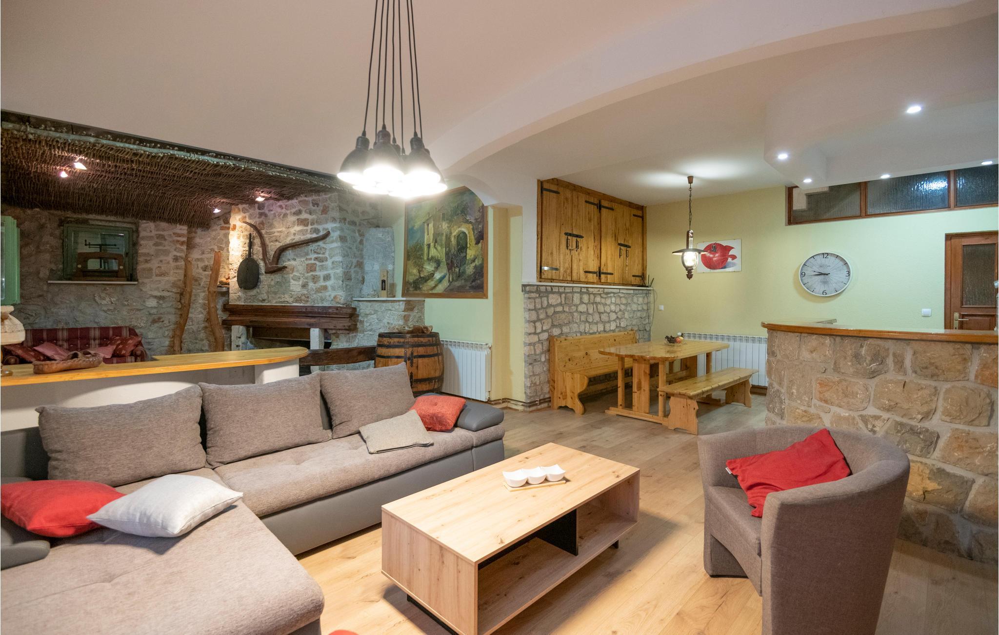 Här bor du långt bort från stadens liv och rörelse, i detta semesterhus omgivet av natur. Makarska Rivieran ligger också bara cirka 20 minuter bort med bil. Huset består av två fullt utrustade boendeenheter, idealiska för två familjer som vill tillbringa sin semester tillsammans. Du är omgiven av fruktträd, vingårdar och naturens grönska. Koppla av i det välskötta utomhusområdet med flera terrasser och en pool samt lekredskap för barn och gym i trädgården. Imotski med olika nöjesmöjligheter ligger 5 km härifrån.