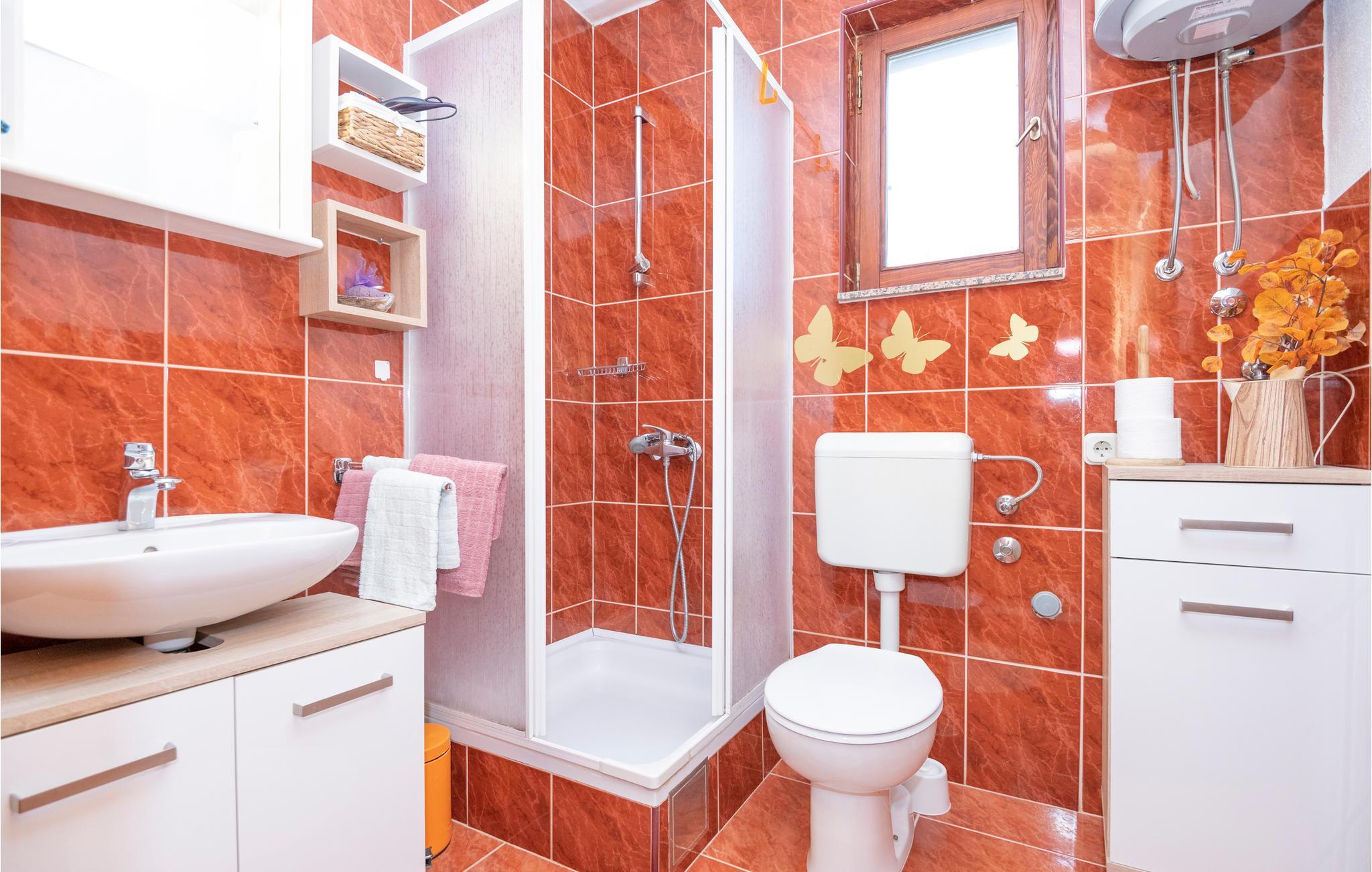 Badrum (nr. 2) - WC: Varmt och kallt vatten. Dusch