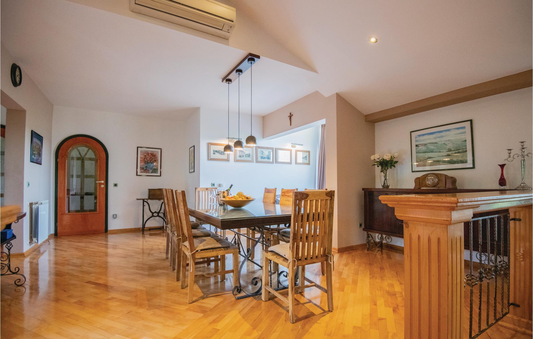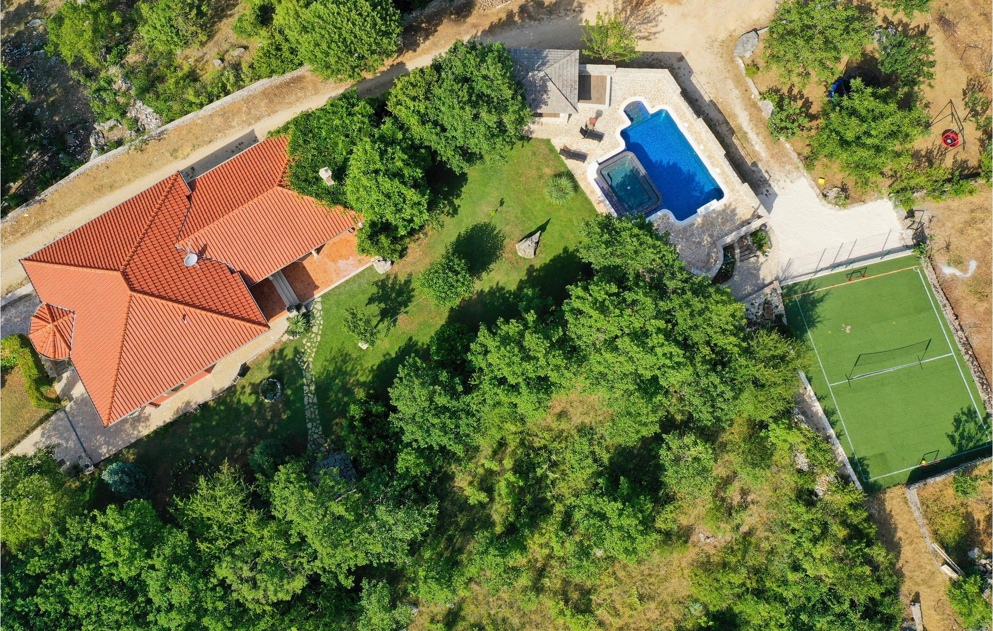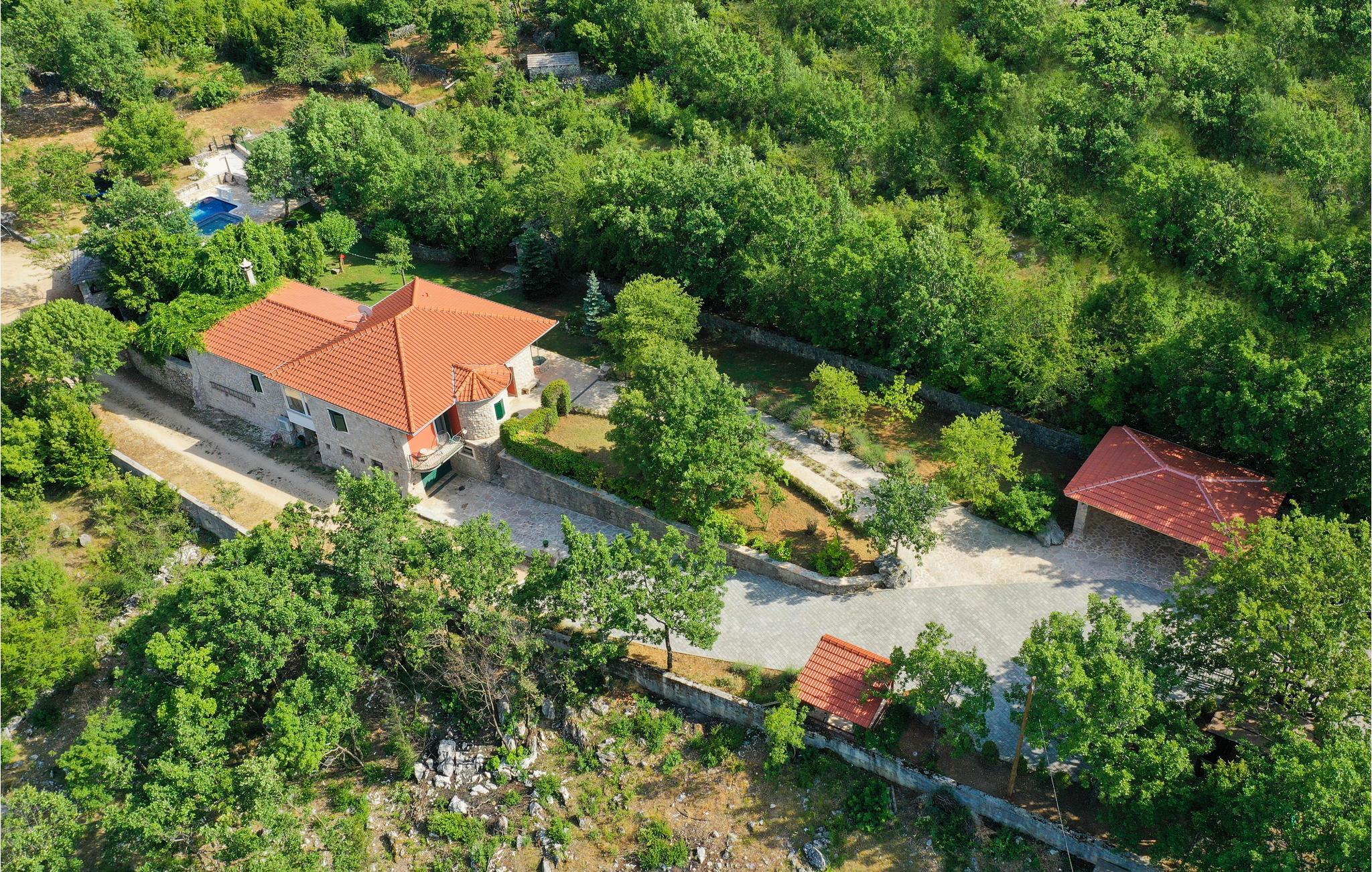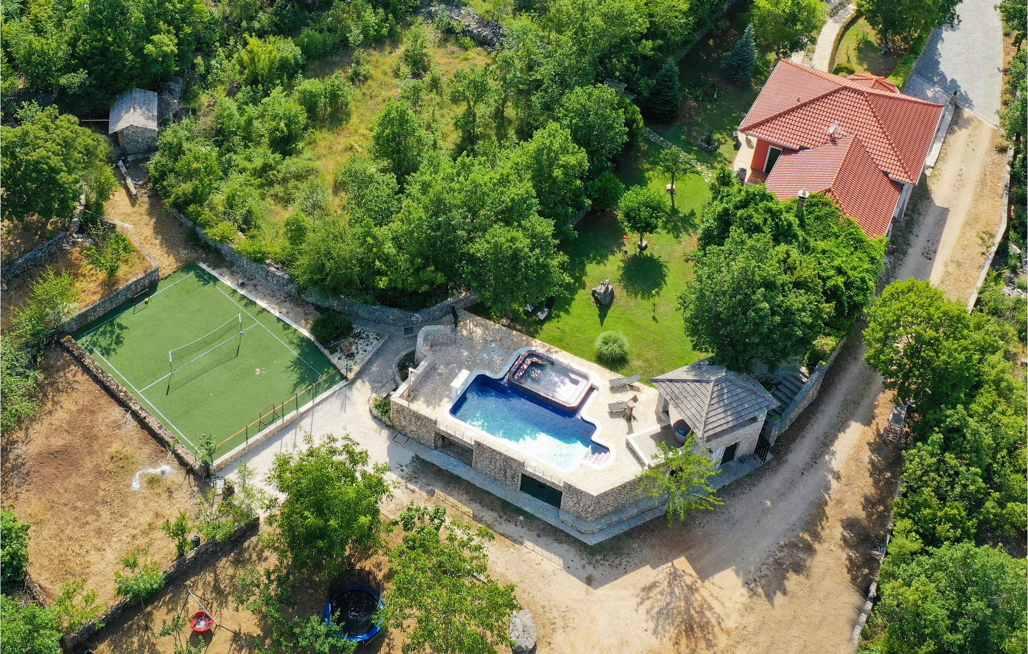 I det lugna och idylliska inlandet i centrala Dalmatien ligger detta bekväma och vackert inredda semesterhus. På bottenvåningen finns tre sovrum, två badrum, toalett och kök med vardagsrum. I husets källare, som nås via en intern trappa, finns vardagsrummet, inrett i dalmatisk stil, och ett gym. I trädgården, bredvid poolen, finns en täckt terrass. De små kommer att njuta av lekplatsen för barn. Terrassen på husets östra sida erbjuder en vacker utsikt över staden Imotski, vars centrum med olika turistutbud ligger cirka 5 km bort. Du kan också besöka de röda och blå sjöarna. Cyklar och en multifunktionell lekplats för fotboll, badminton och en basketkorg står till ditt förfogande.