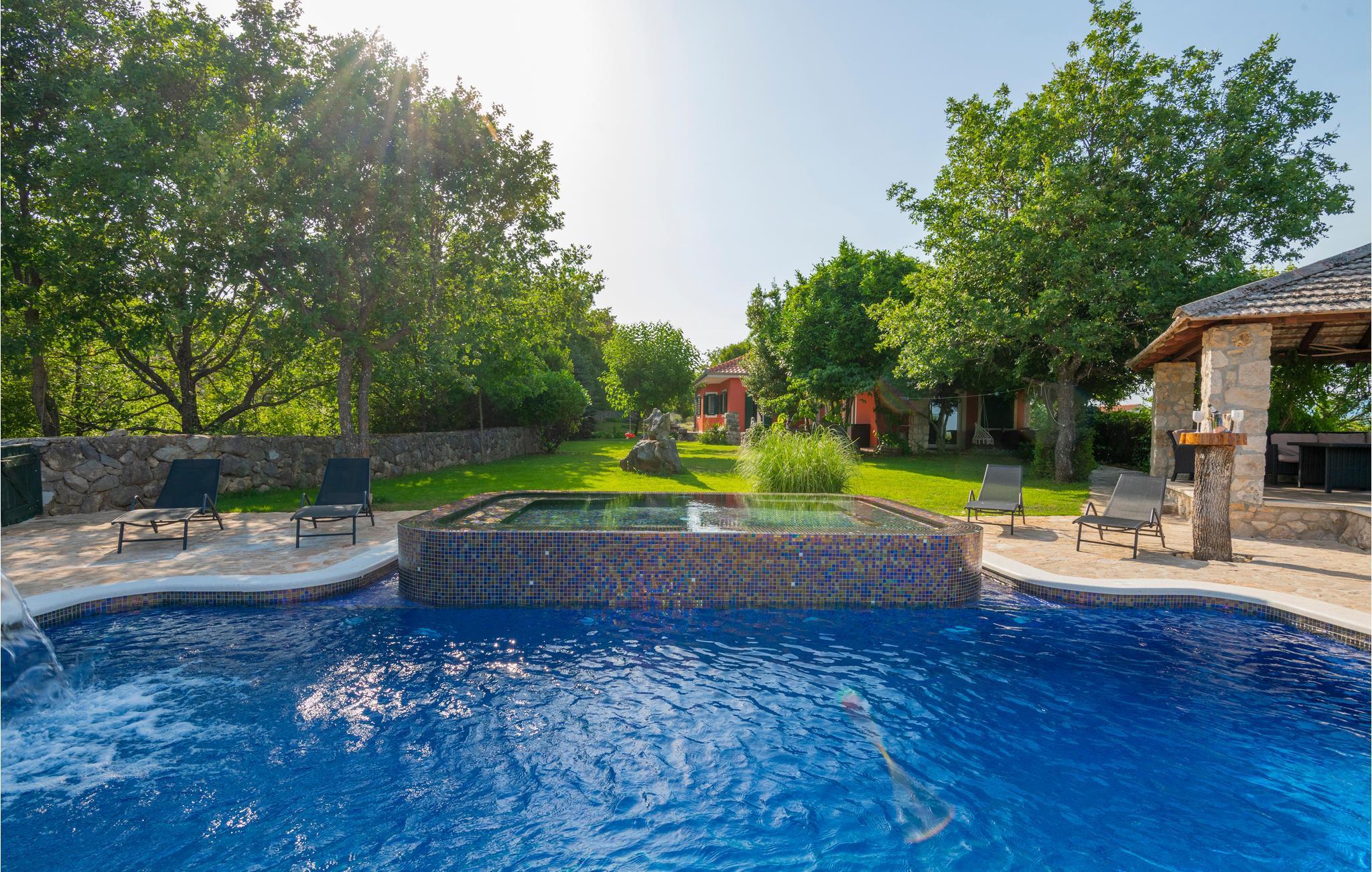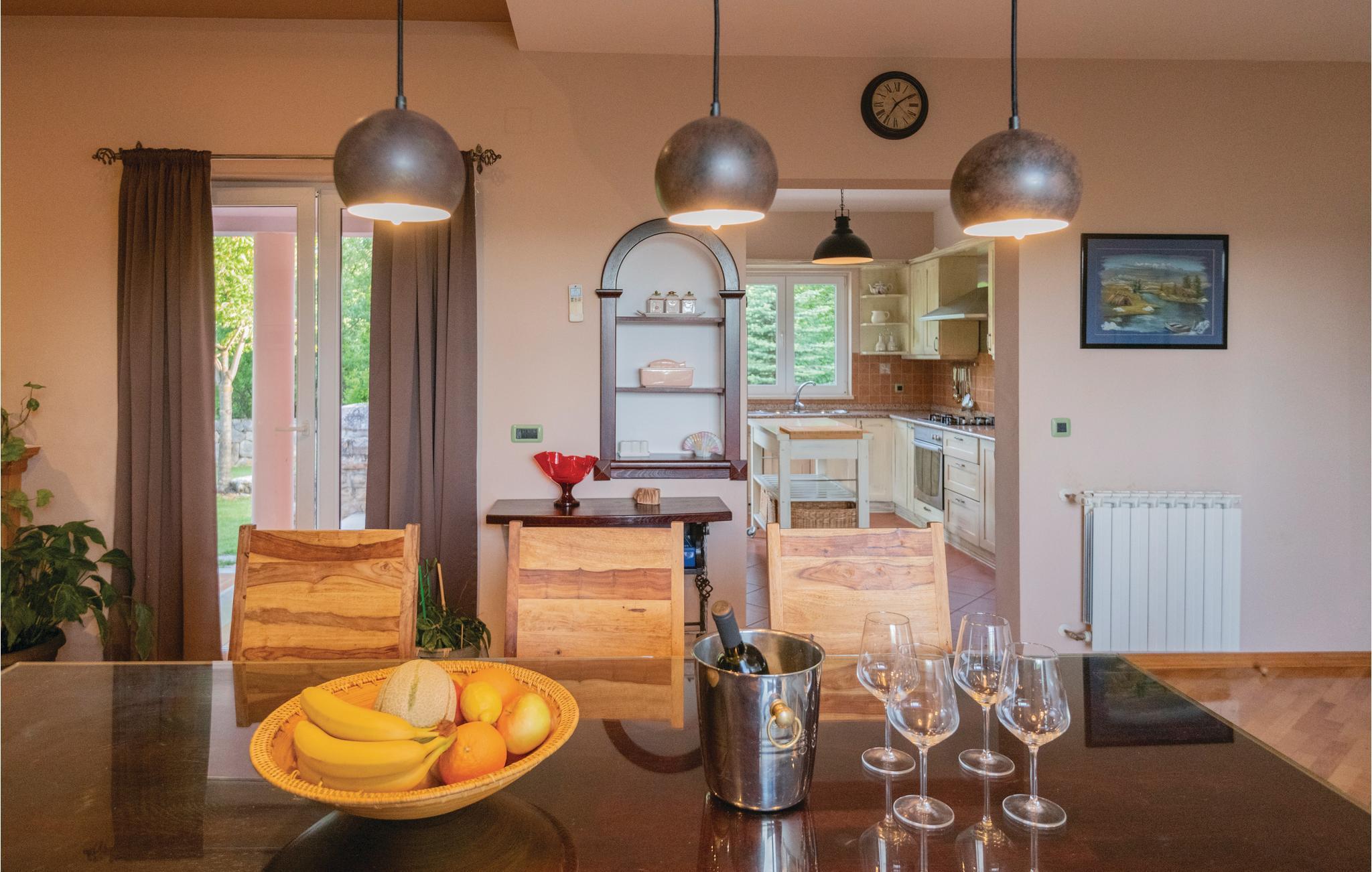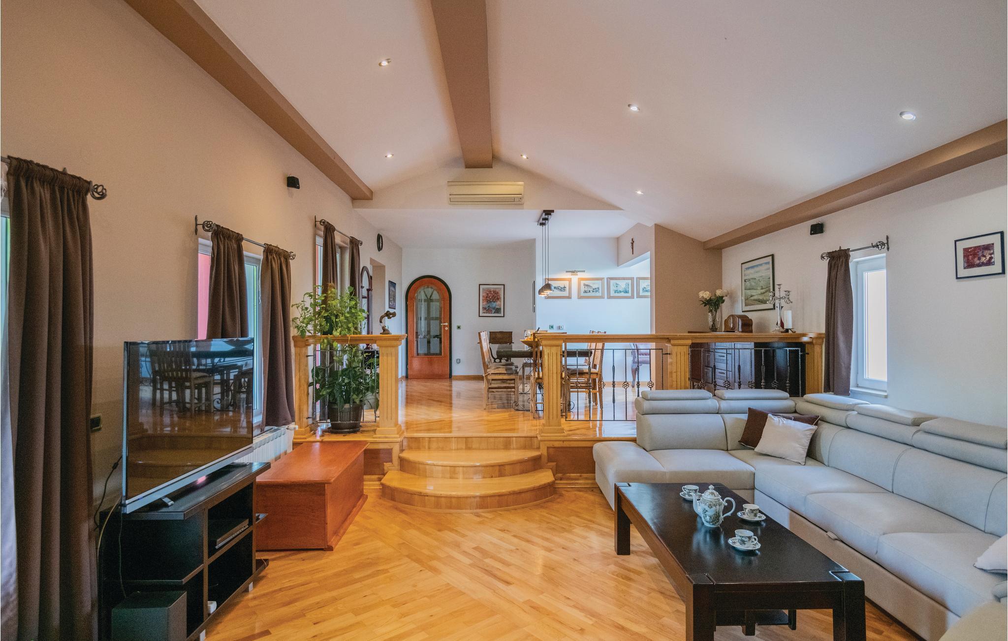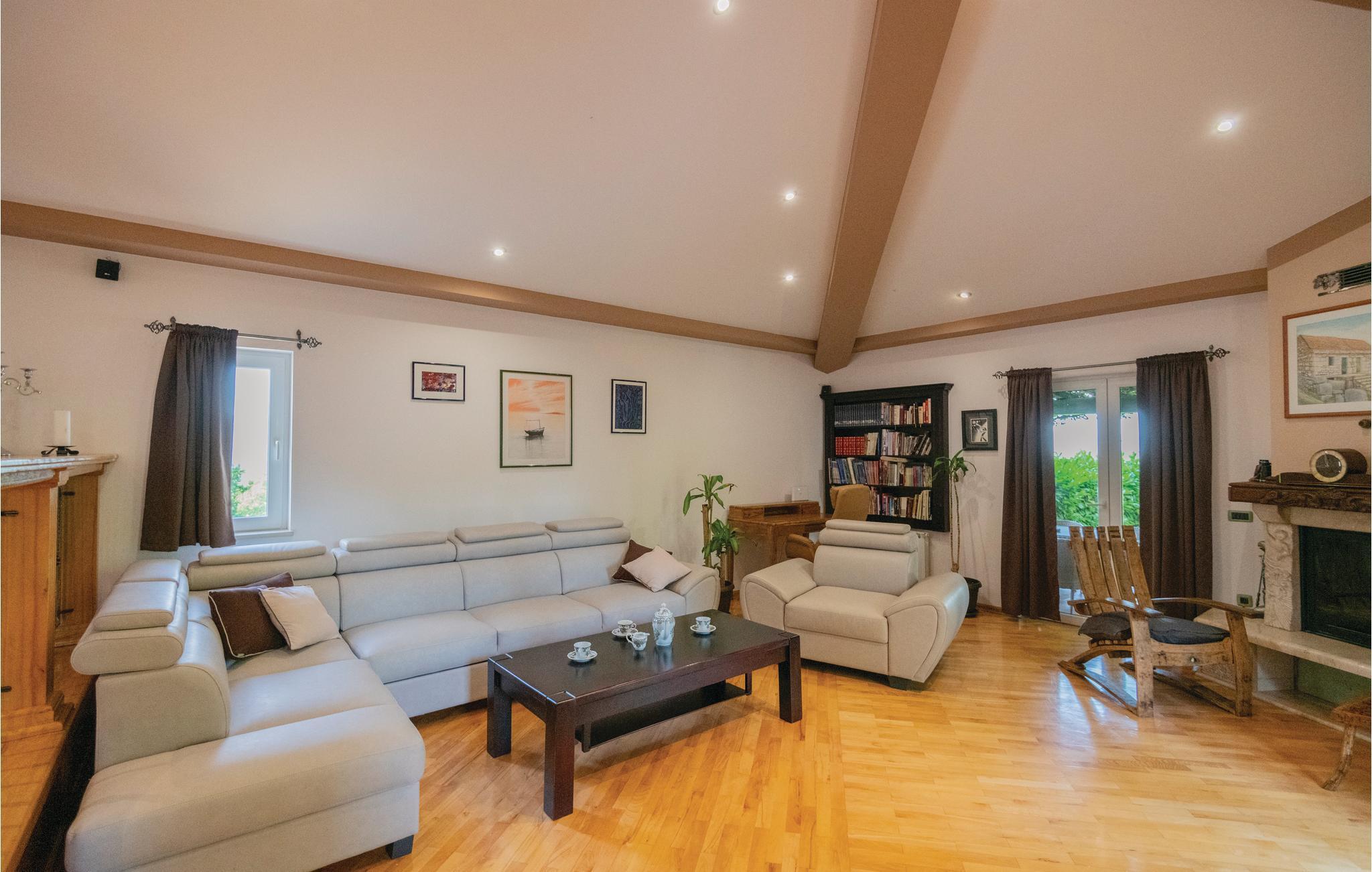 I det lugna och idylliska inlandet i centrala Dalmatien ligger detta bekväma och vackert inredda semesterhus. På bottenvåningen finns tre sovrum, två badrum, toalett och kök med vardagsrum. I husets källare, som nås via en intern trappa, finns vardagsrummet, inrett i dalmatisk stil, och ett gym. I trädgården, bredvid poolen, finns en täckt terrass. De små kommer att njuta av lekplatsen för barn. Terrassen på husets östra sida erbjuder en vacker utsikt över staden Imotski, vars centrum med olika turistutbud ligger cirka 5 km bort. Du kan också besöka de röda och blå sjöarna. Cyklar och en multifunktionell lekplats för fotboll, badminton och en basketkorg står till ditt förfogande.