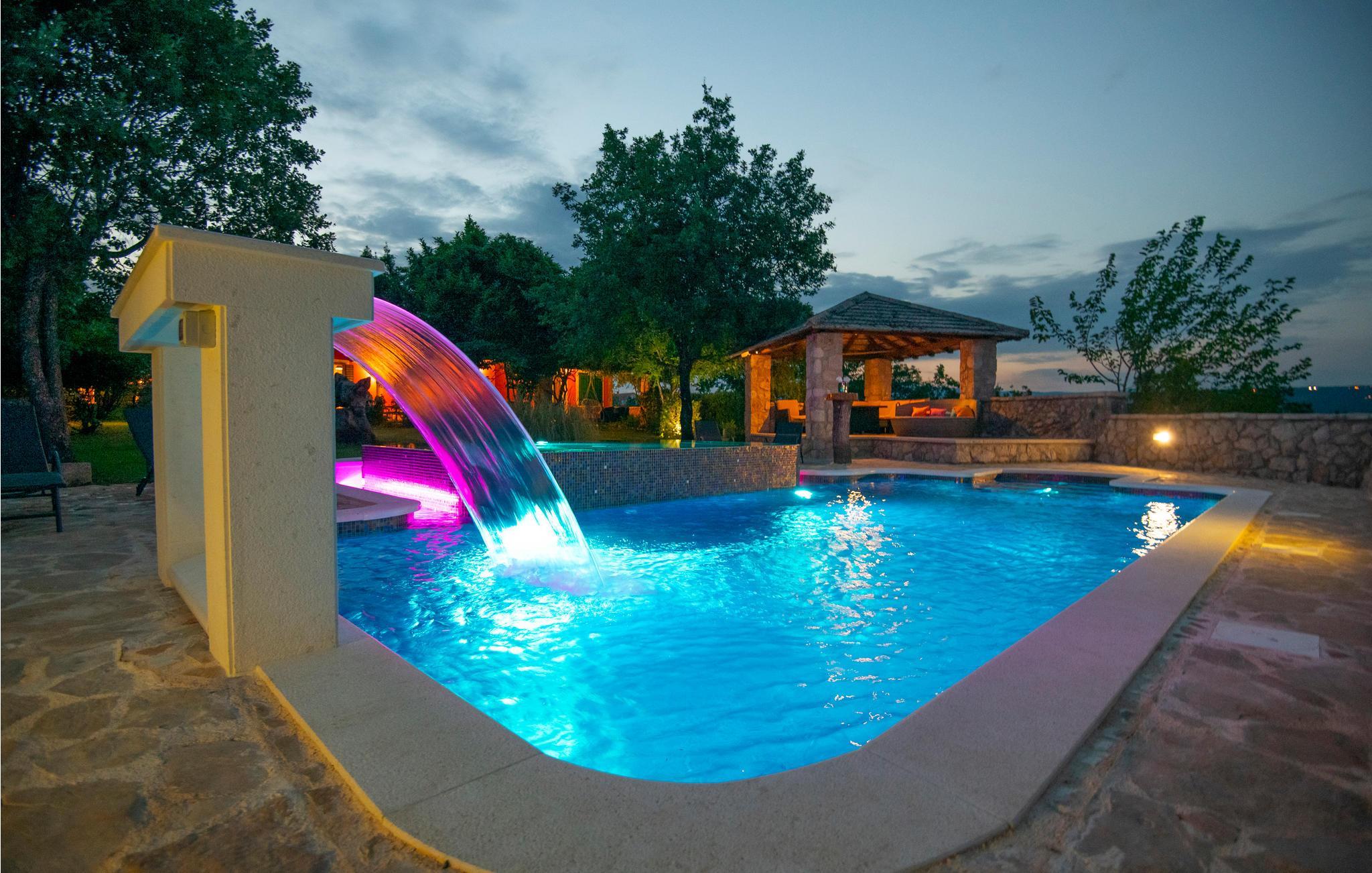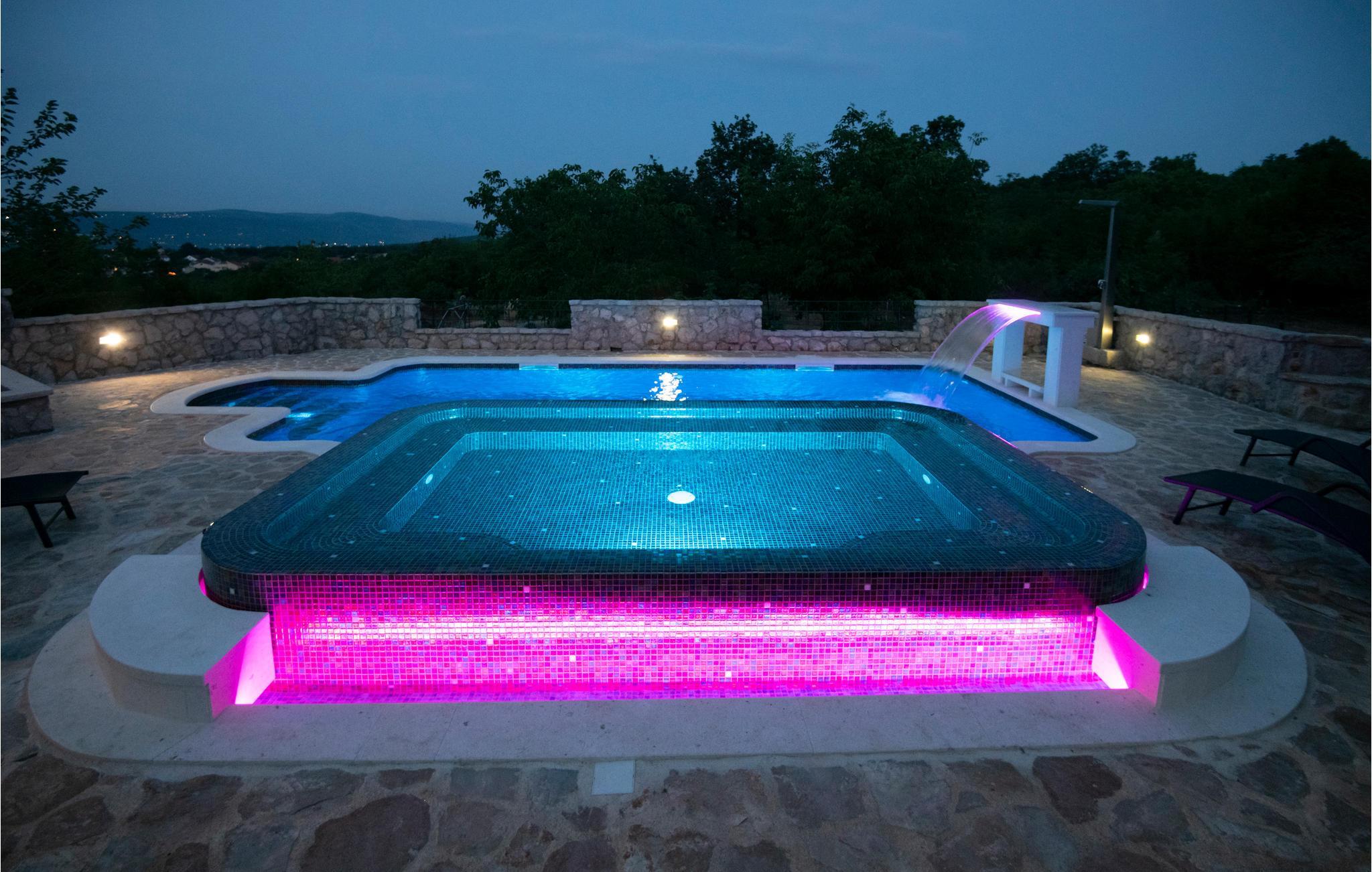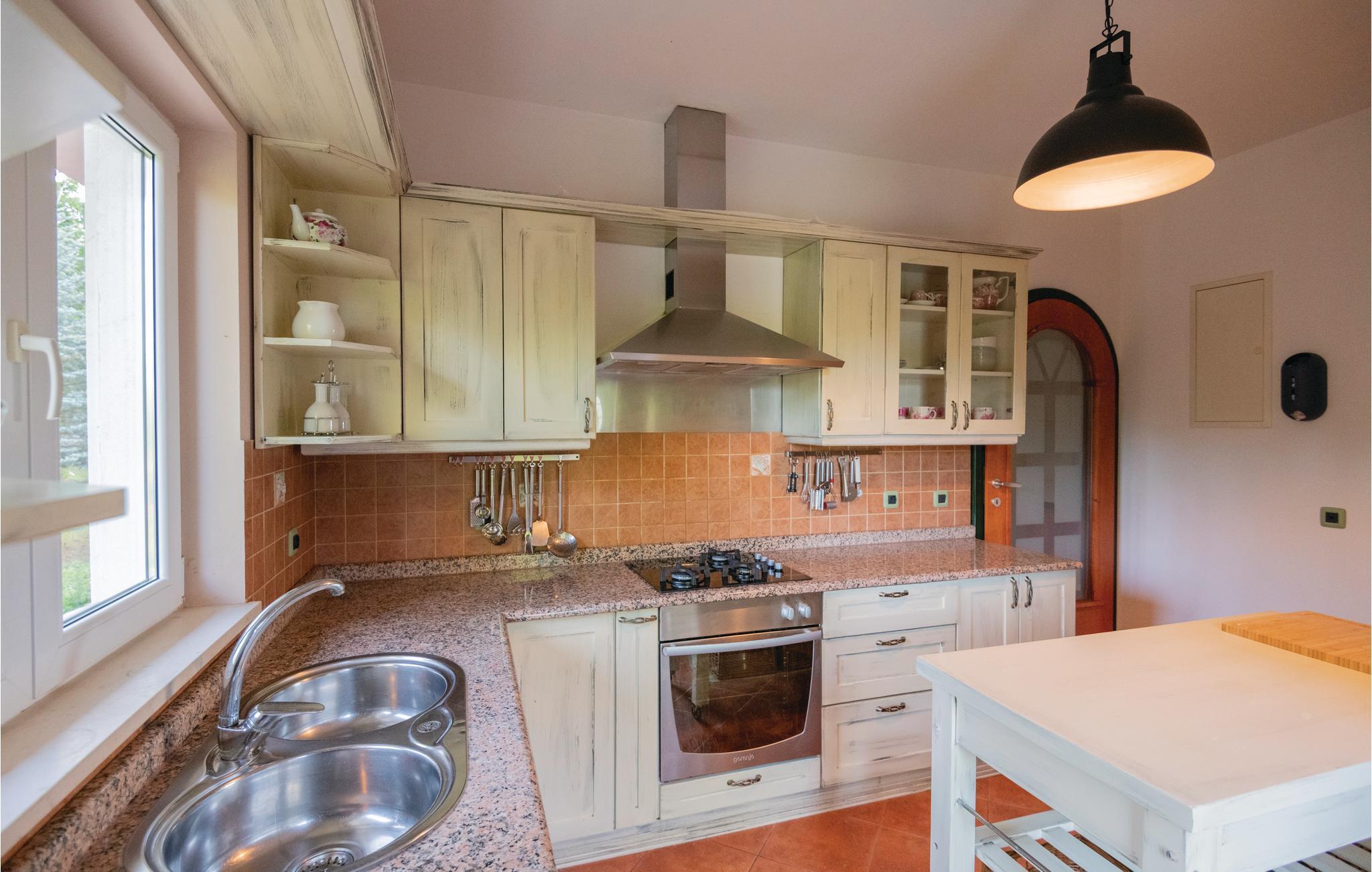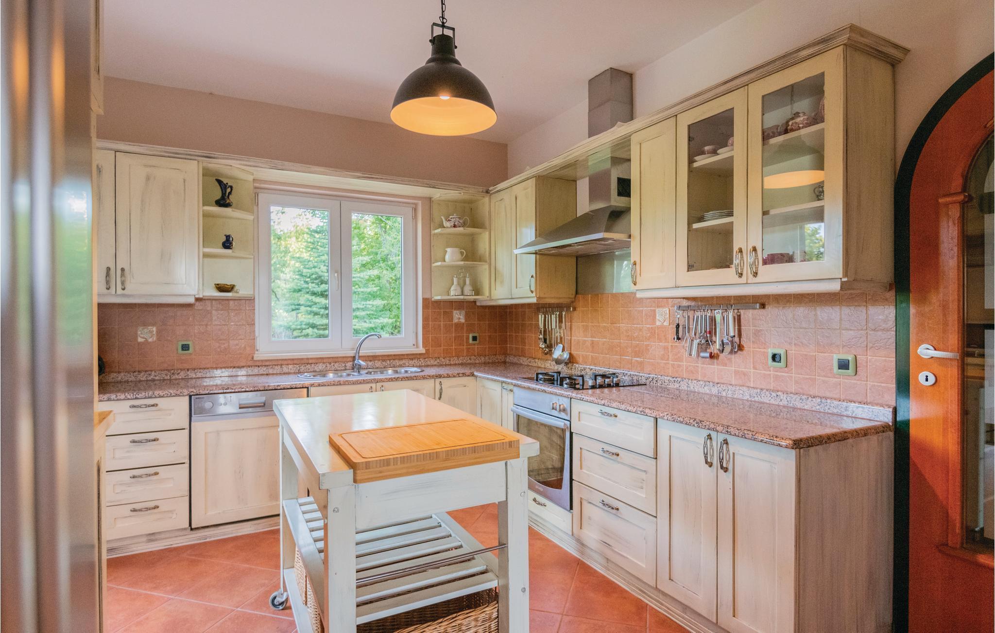 I det lugna och idylliska inlandet i centrala Dalmatien ligger detta bekväma och vackert inredda semesterhus. På bottenvåningen finns tre sovrum, två badrum, toalett och kök med vardagsrum. I husets källare, som nås via en intern trappa, finns vardagsrummet, inrett i dalmatisk stil, och ett gym. I trädgården, bredvid poolen, finns en täckt terrass. De små kommer att njuta av lekplatsen för barn. Terrassen på husets östra sida erbjuder en vacker utsikt över staden Imotski, vars centrum med olika turistutbud ligger cirka 5 km bort. Du kan också besöka de röda och blå sjöarna. Cyklar och en multifunktionell lekplats för fotboll, badminton och en basketkorg står till ditt förfogande.