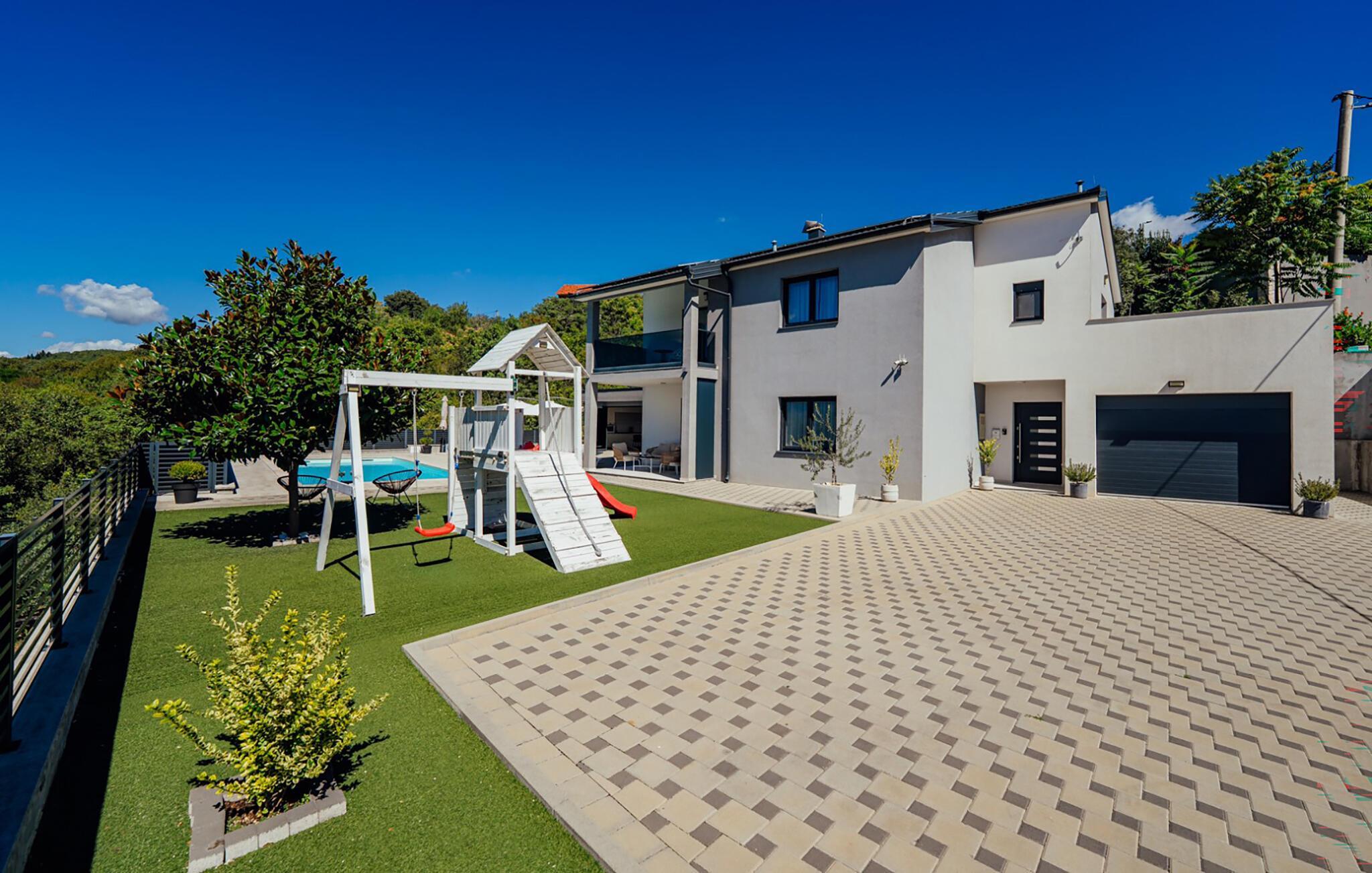 Detta vackra semesterhus ligger i centrala Dalmatiens inland, nedanför Imotskis centrum, bara 700 m från de röda och blå sjöarna. På bottenvåningen finns den stora poolen för förfriskningar och precis bredvid finns lekplatsen för barn, sommarkök med grill och aktivitetsrum för underhållning. Sovavdelningen ligger på första våningen. Semesterhuset är helt luftkonditionerat och har flera terrasser som erbjuder dig en magnifik utsikt över de omgivande fälten och Biokovo Nature Park. Upptäck det stora utbudet av aktiviteter som erbjuds i Imotski med vackra sjöar, en flod och kulinariska läckerheter i någon av tavernorna och restaurangerna i området. Ta en simtur på de vackra stenstränderna på Makarska Rivieran och passa på att besöka Split, Omi, pilgrimsmålet Meugorje eller Mostar.