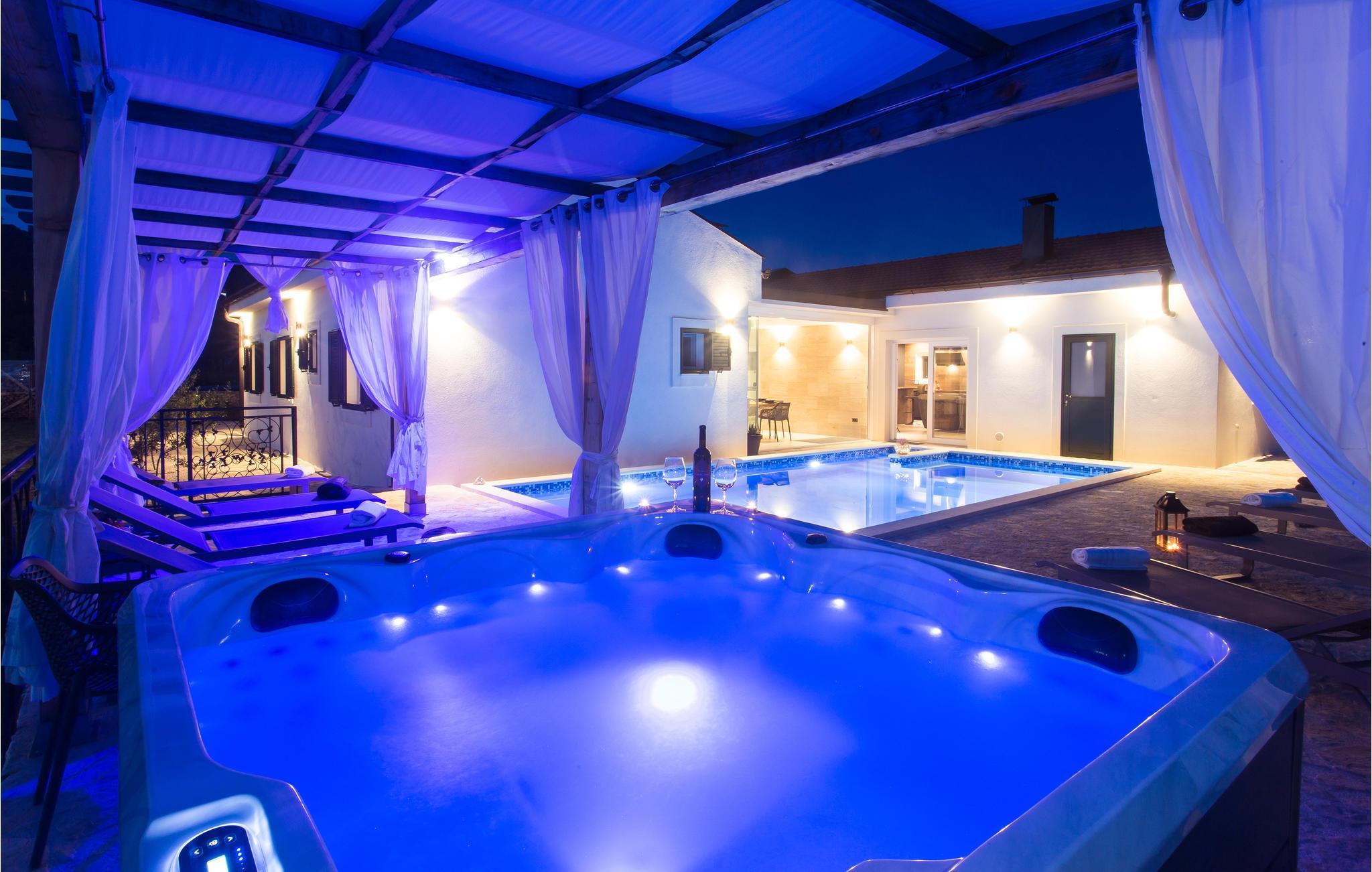 Njut av utomhuslivet och ljumma sommarkvällar på husets terrasser i bekväma trädgårdsmöbler. Koppla av i bubbelpoolen, svalka dig i poolen och tillaga grillmåltider för hela familjen. Det finns gott om lekutrustning för dina barn.