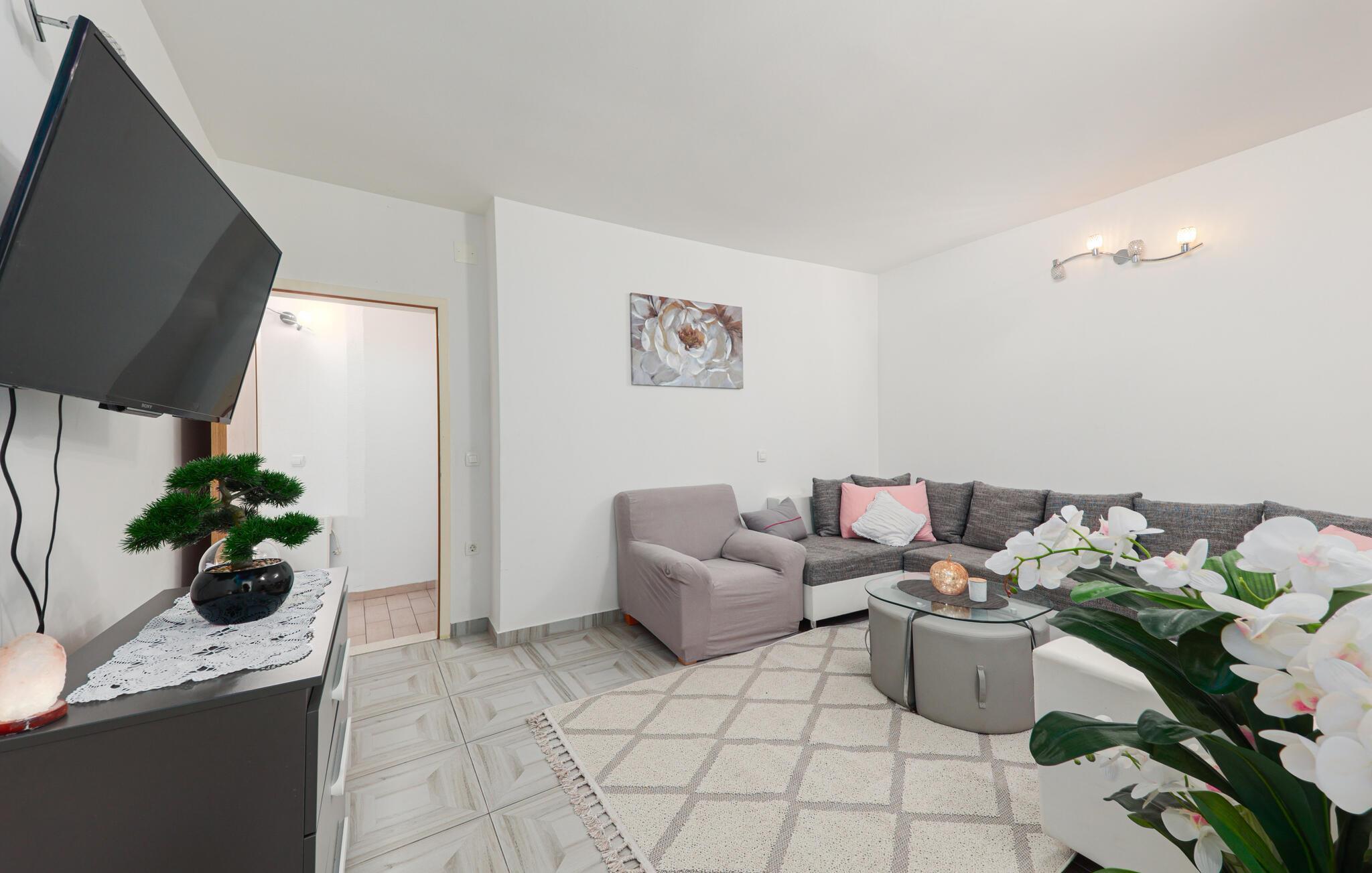Välkommen till denna moderna och stilfullt inredda semesterlägenhet, där du kan njuta av en avkopplande semester med dina nära och kära. Förbered dina måltider i köket med öppen planlösning och slå dig ner vid det inbjudande matbordet. Efter en lång dag kan du sätta dig tillrätta i den rymliga soffan och se en spännande film på Netflix.