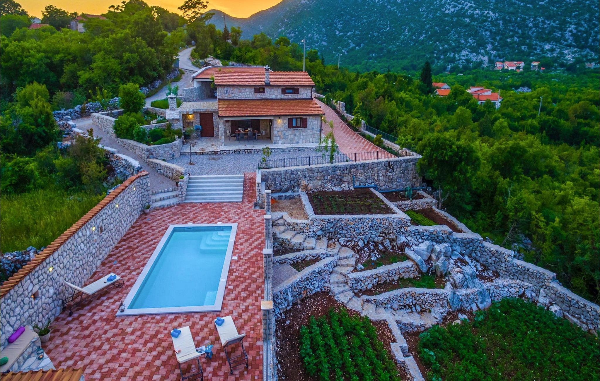 Om du vill uppleva den äkta medelhavskänslan, men samtidigt inte är villig att ge upp bekvämligheten i ett modernt semesterhus, kan den fantastiska Villa Gardens vara det perfekta valet för dig. Charmiga Villa Gardens ligger mitt i det vackra karstlandskapet i Dalmatiens inland, men bara en kort bilresa från några av de vackraste stränderna i Kroatien, och kommer snabbt att få dig på semesterhumör.