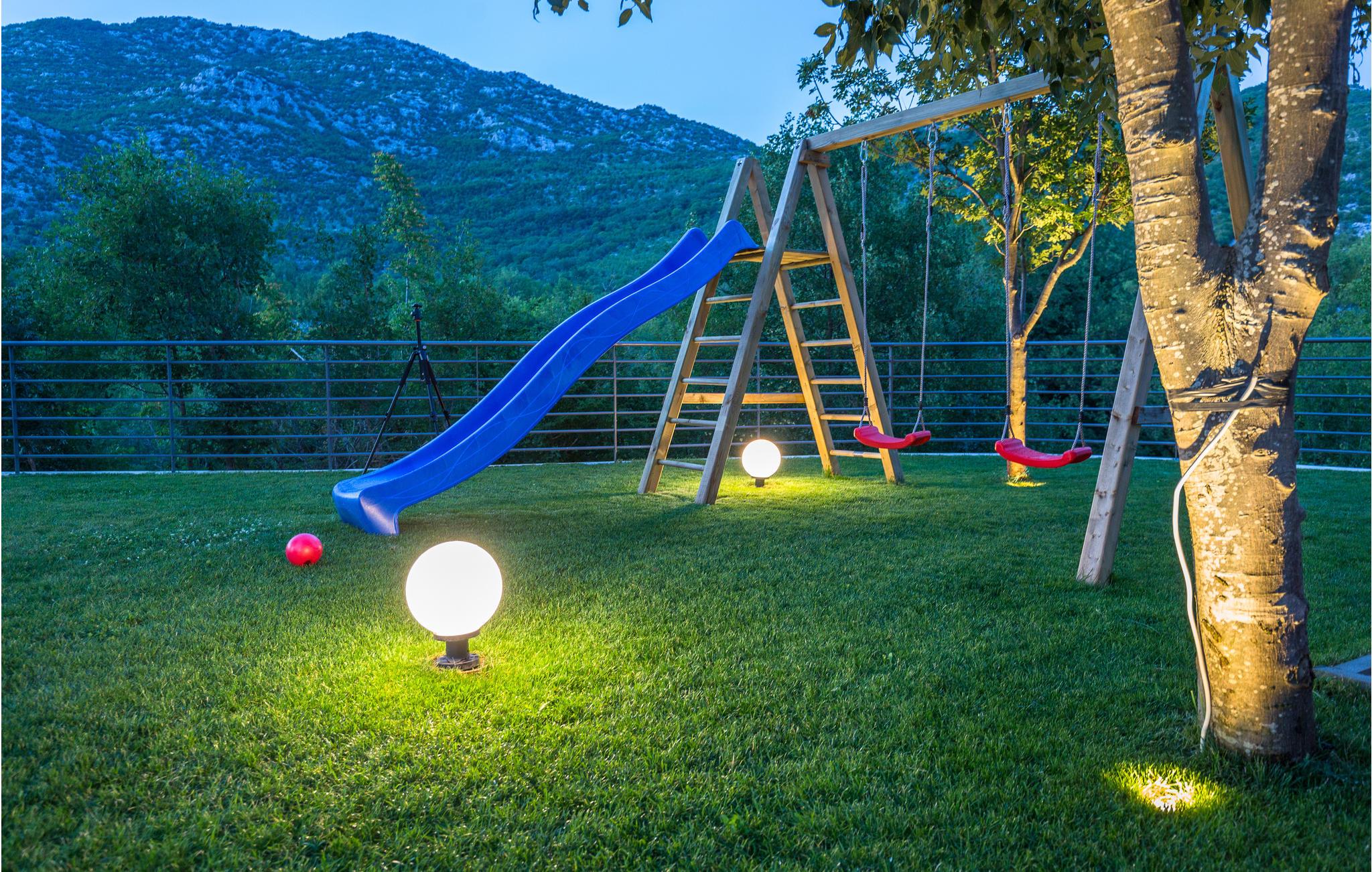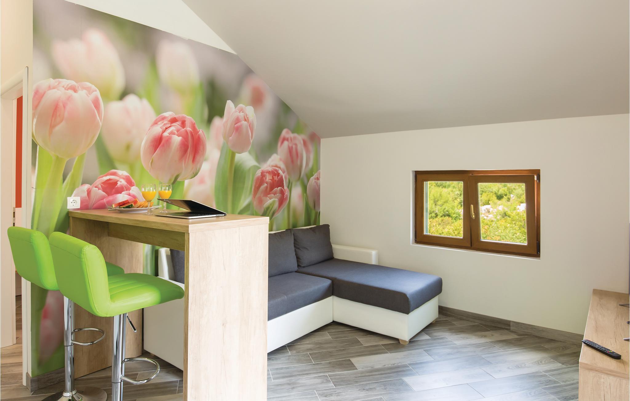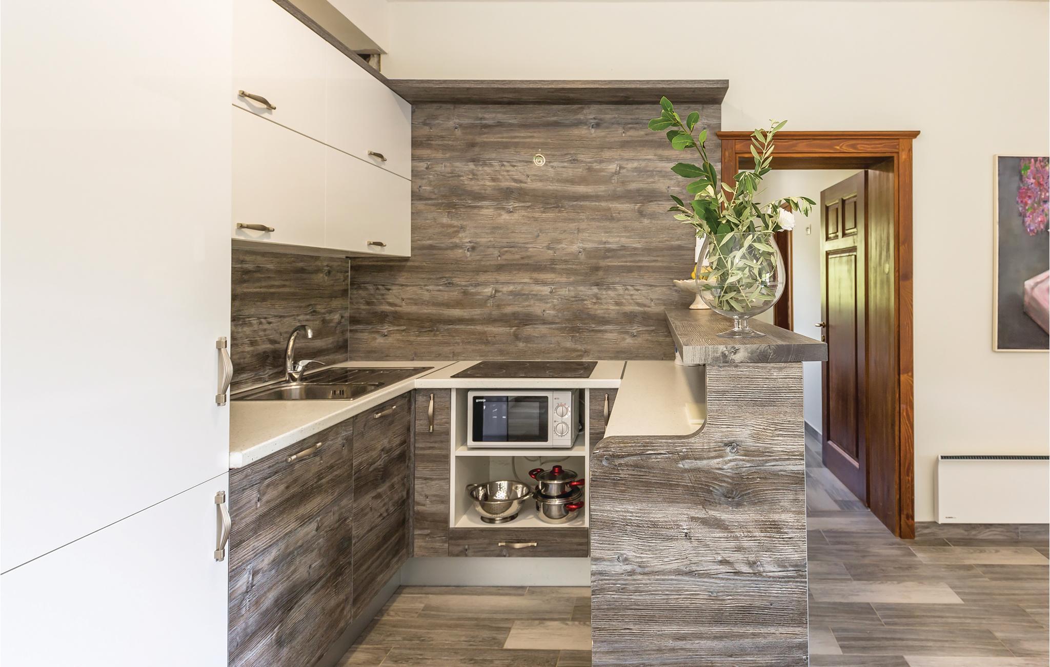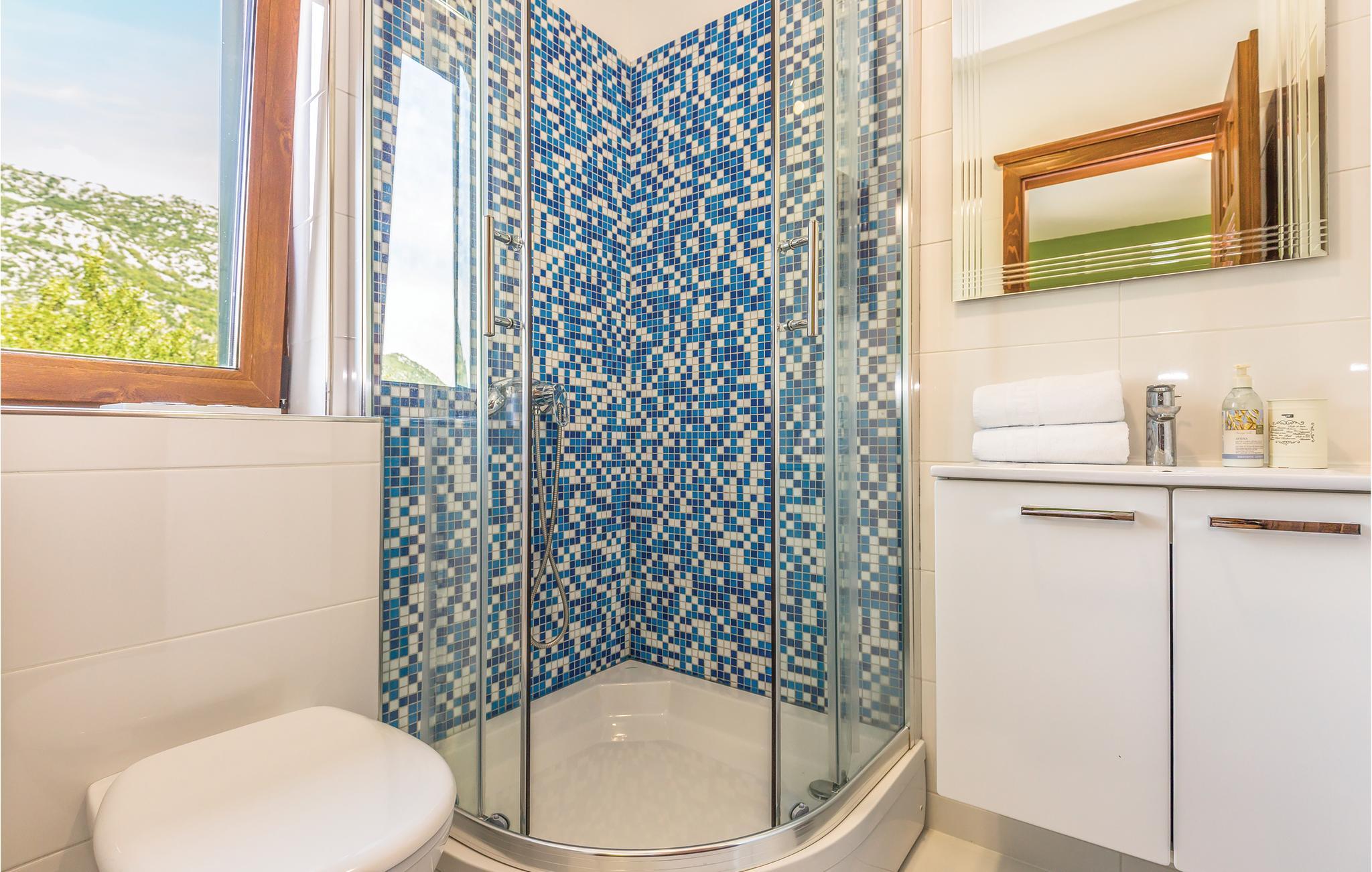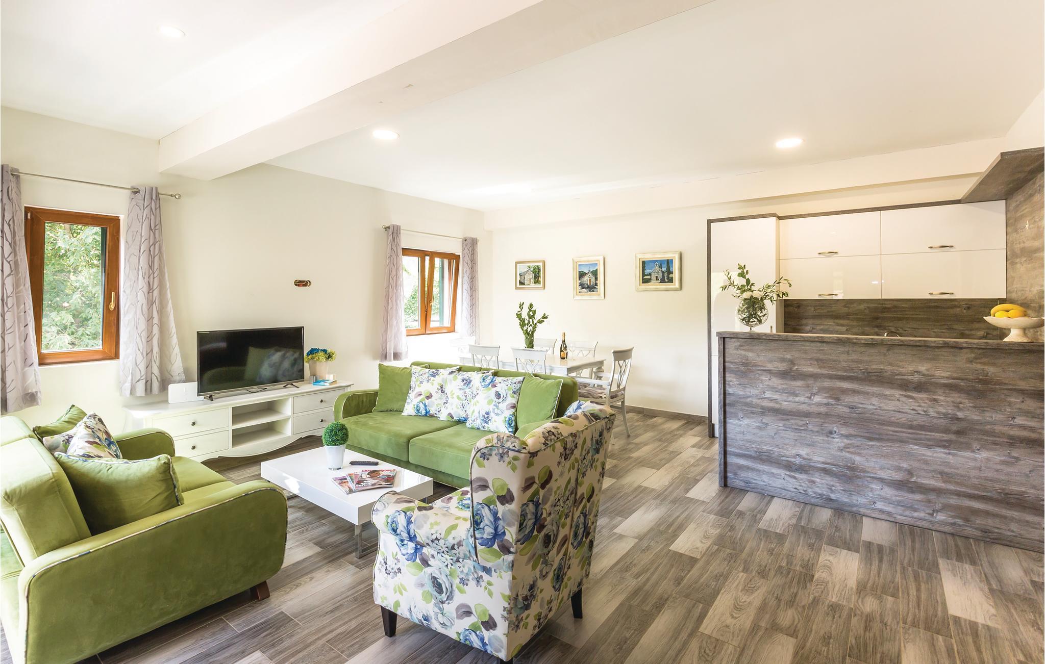 I det inre av Dalmatien, i den norra delen av naturparken Biokovo, hittar du detta vackert inredda och välutrustade semesterhus. Det består av fyra separata boendeenheter. Boendeenheterna på bottenvåningen har en separat ingång, medan boendeenheterna på första och andra våningen är sammankopplade via en intern trappa. På den välskötta fastigheten finns en stor pool där du kan fräscha upp dig medan du förbereder olika läckra rätter på grillen i uteköket. Aktivitetsrummet, lekplatsen och utomhusinnehållet ger trevlig underhållning. De vackra stränderna på Makarska Rivieran ligger cirka 10 minuters bilresa bort.
