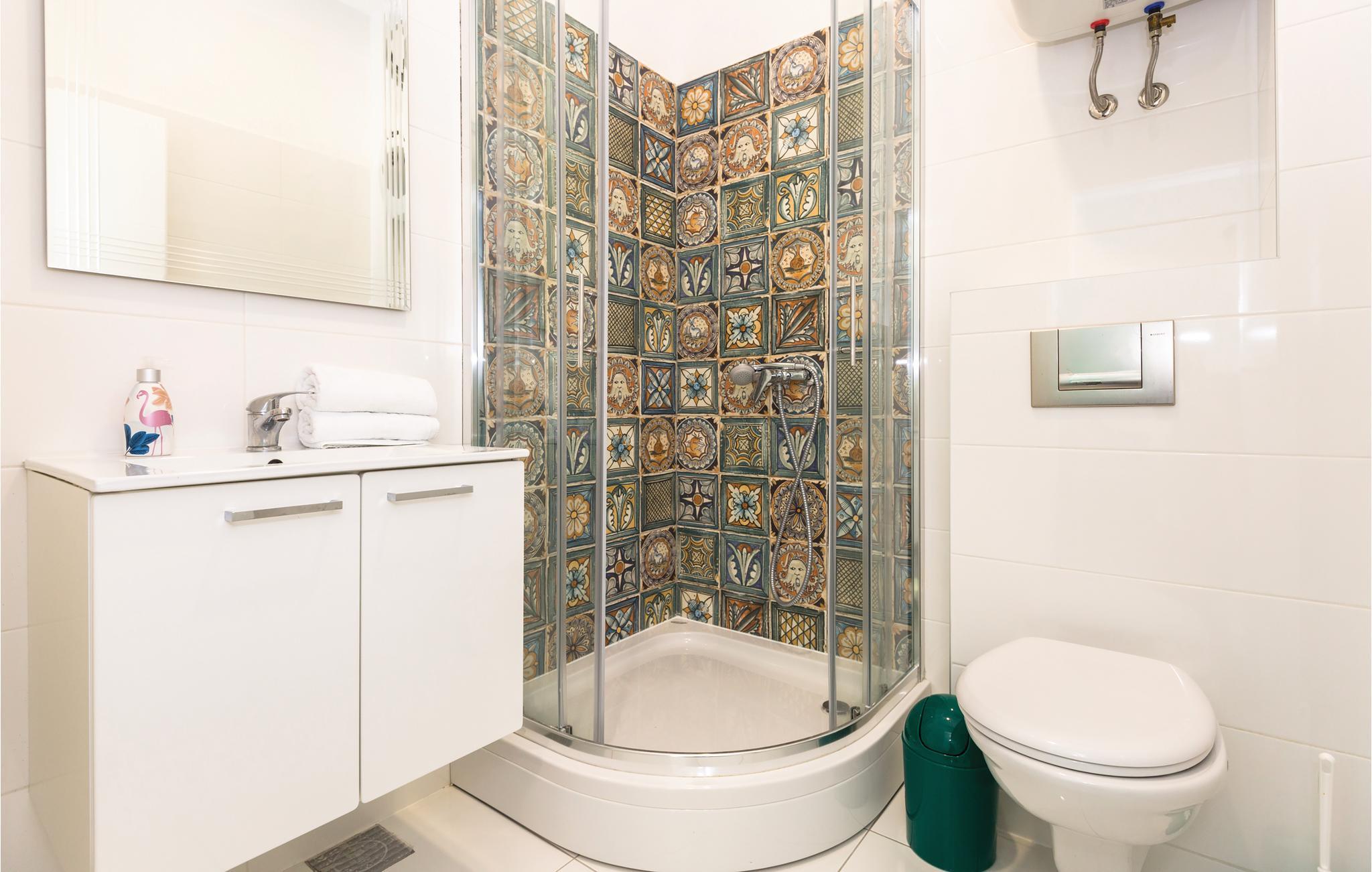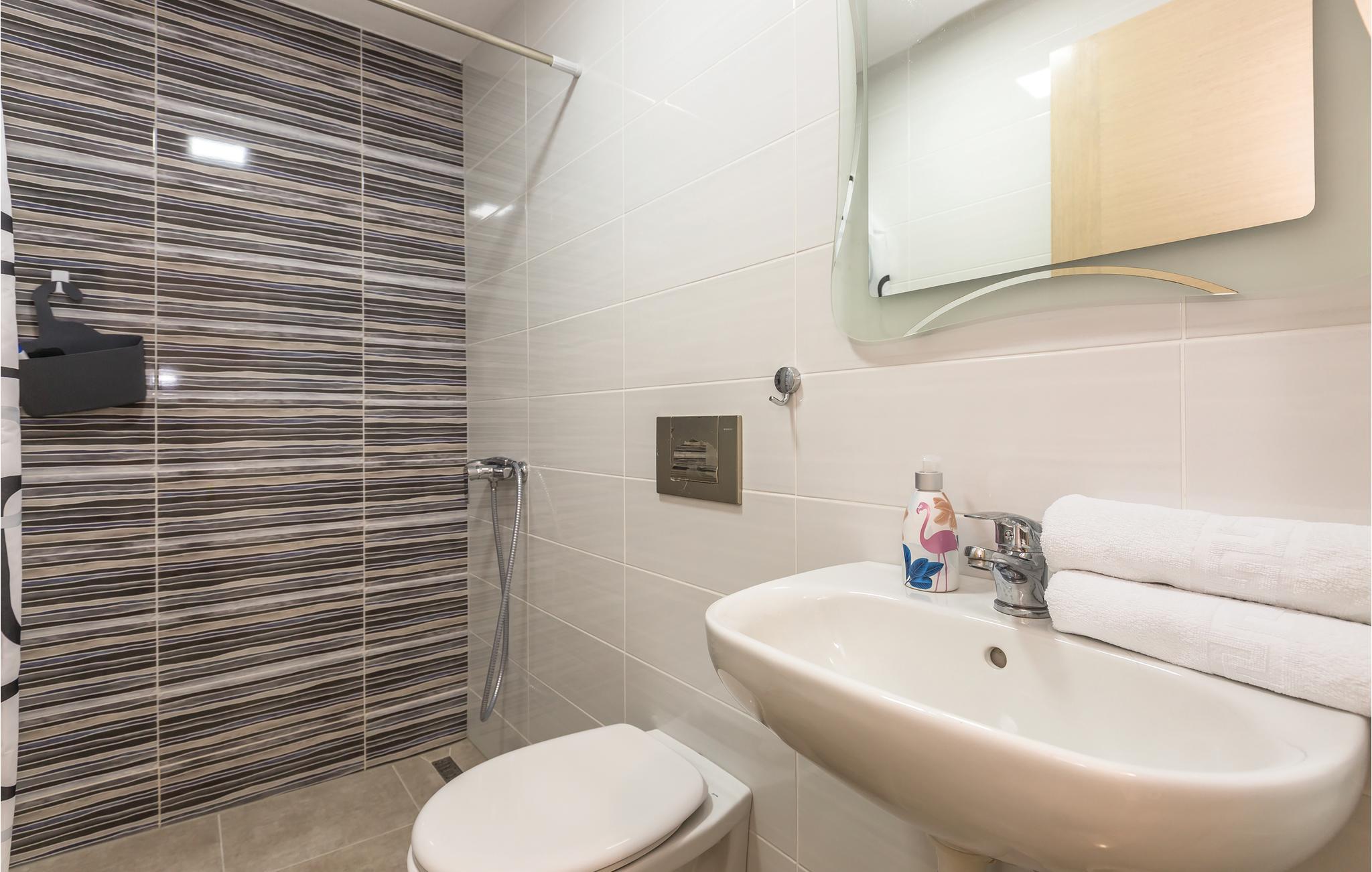 Badrum (nr. 1) - WC: Varmt och kallt vatten. Dusch