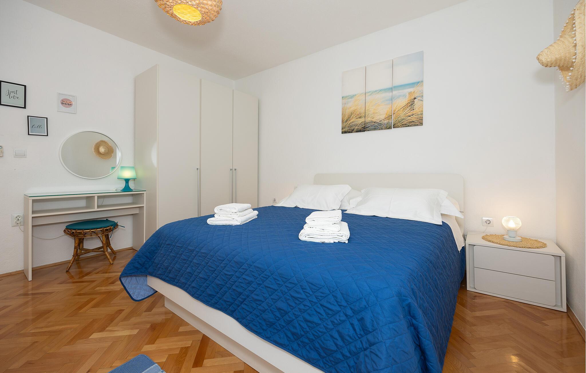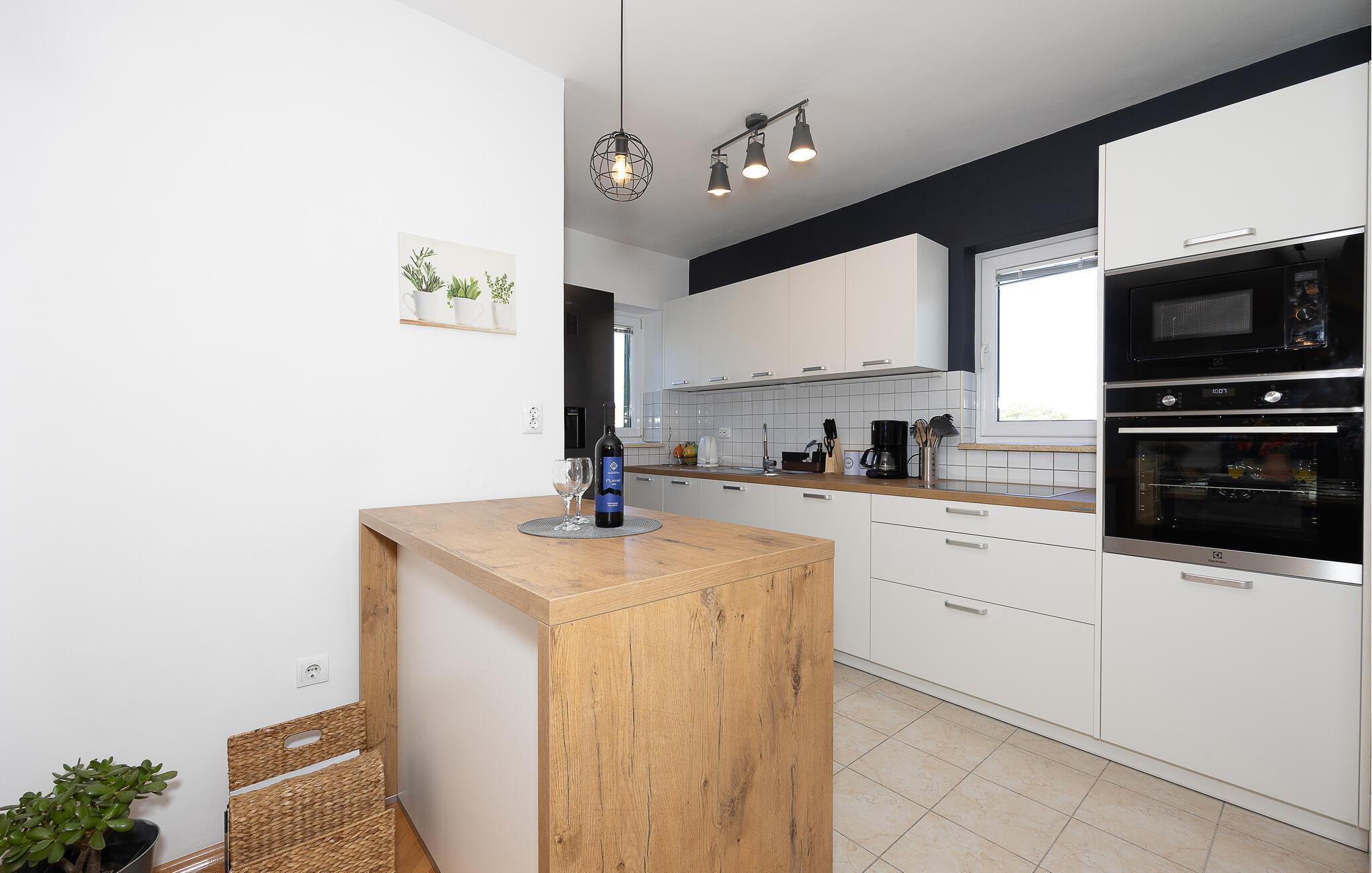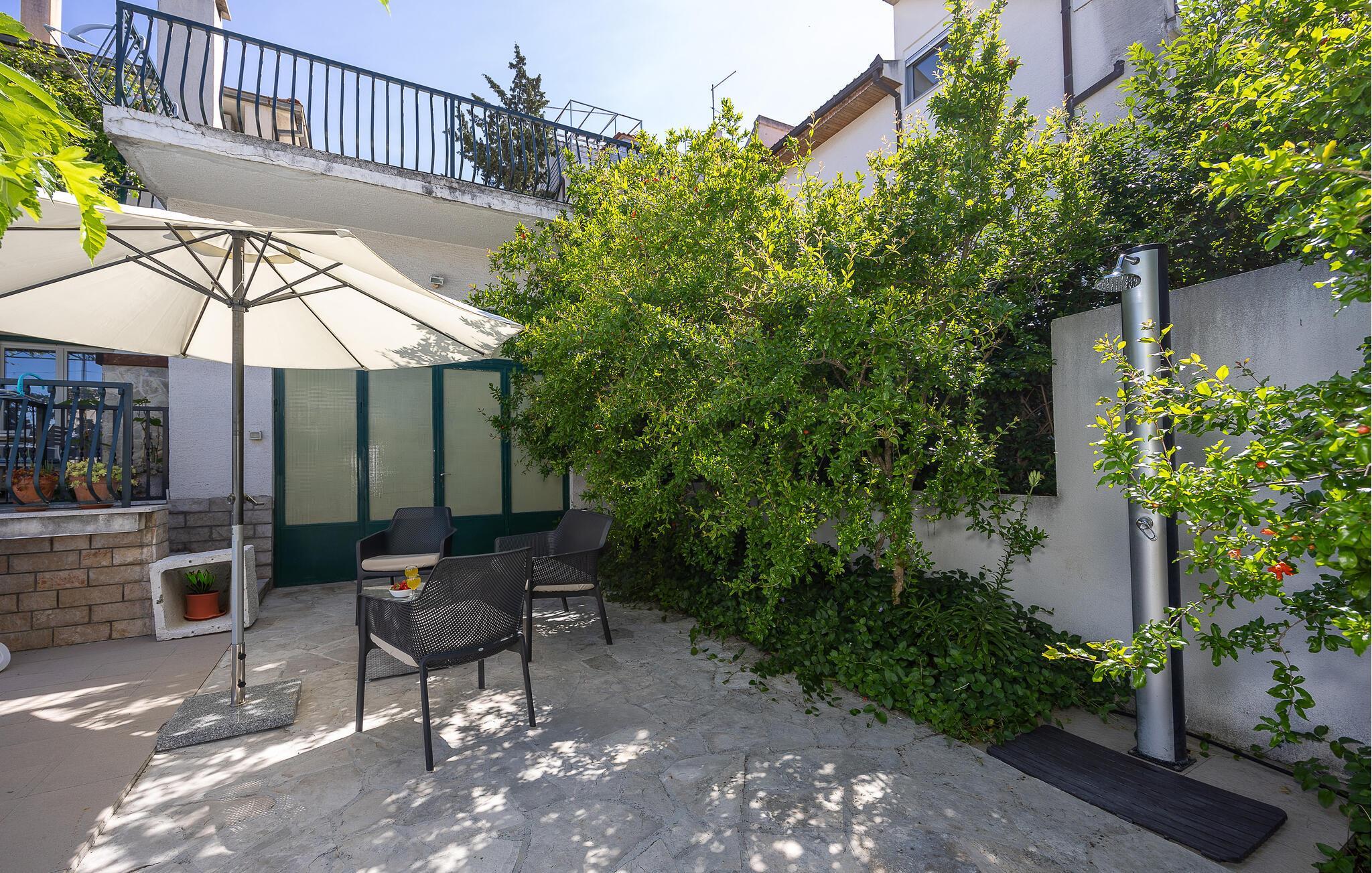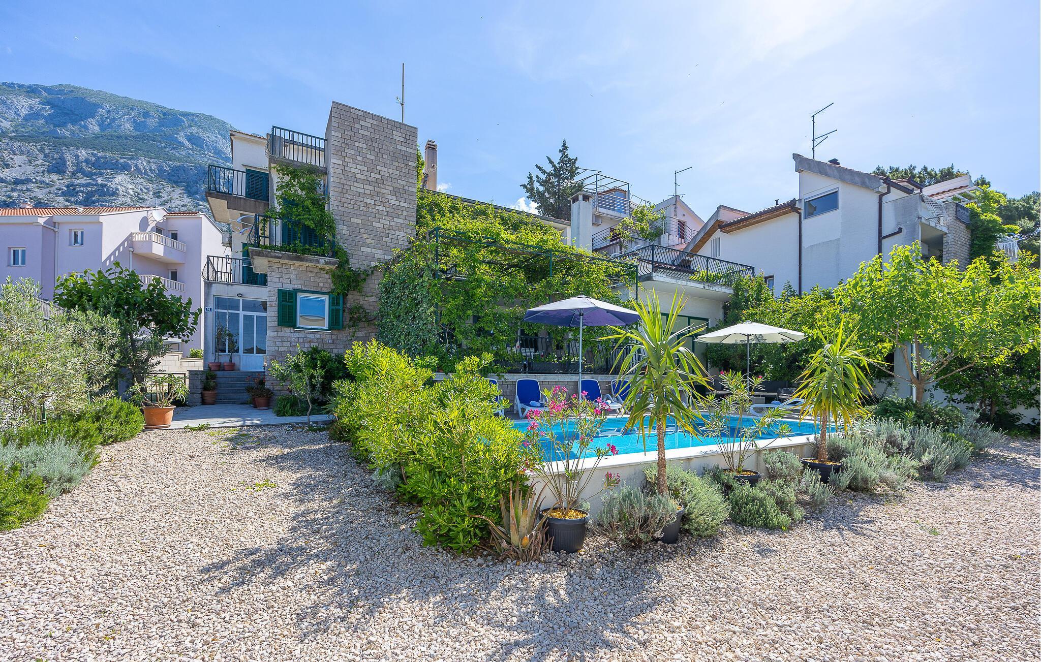 Detta rymliga och modernt utrustade semesterhus ligger bara några minuters promenad från Makarskas centrum. Semesterboendet har en utomhuspool och är omgivet av pinjeträd. Du kan njuta av panoramautsikten från terrassen på övre våningen. På terrassen på bottenvåningen kan du också koppla av i skuggan av citronträden. Makarska är en pittoresk stad av förtrollande skönhet som varje år lockar många besökare från hela världen. Det är en stad som präglas av ungdom, kultur, sport och nöjen. Kustvägen löper 50 meter från huset.