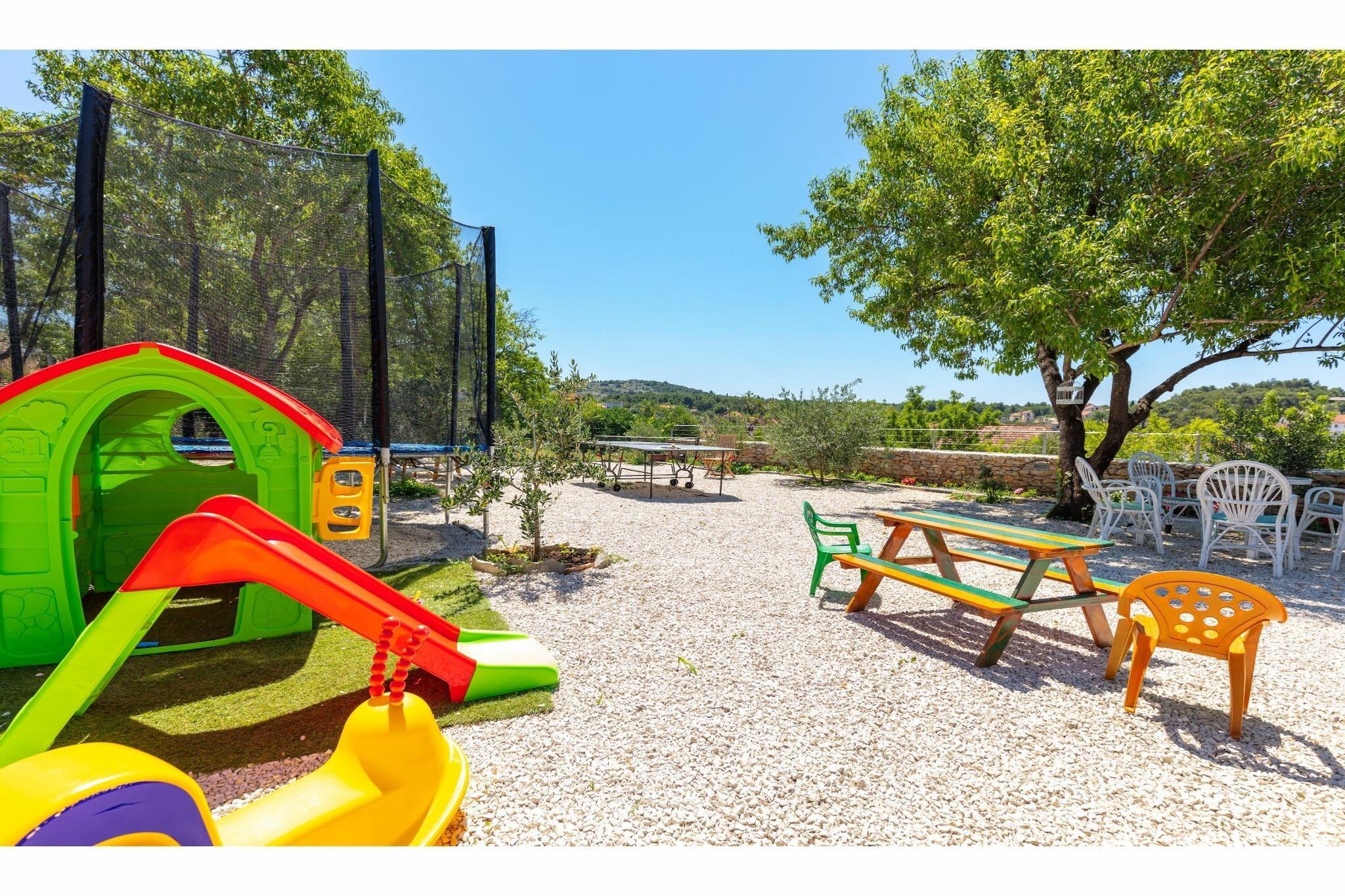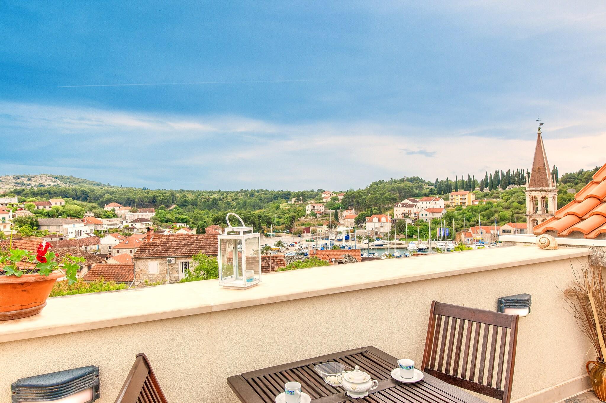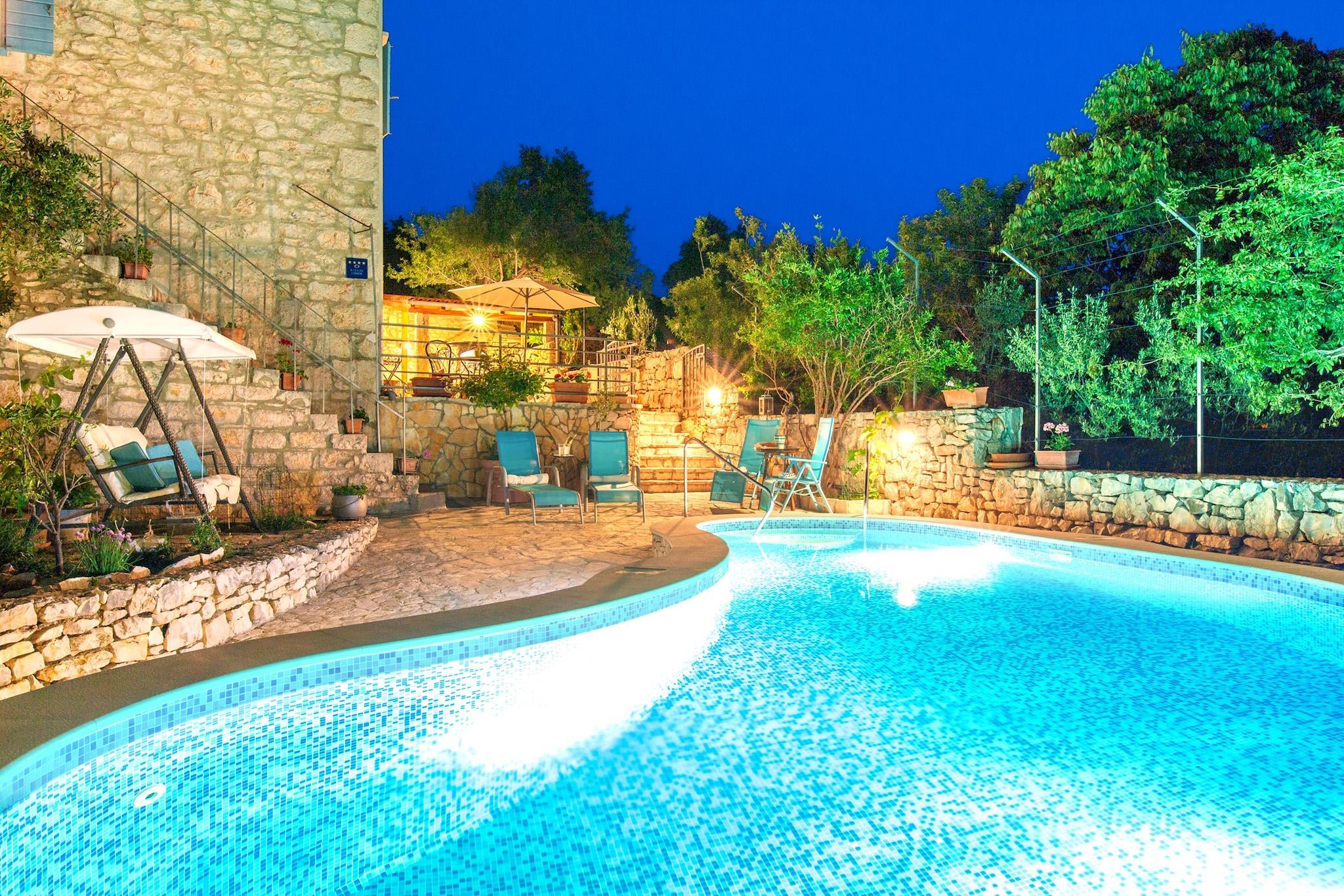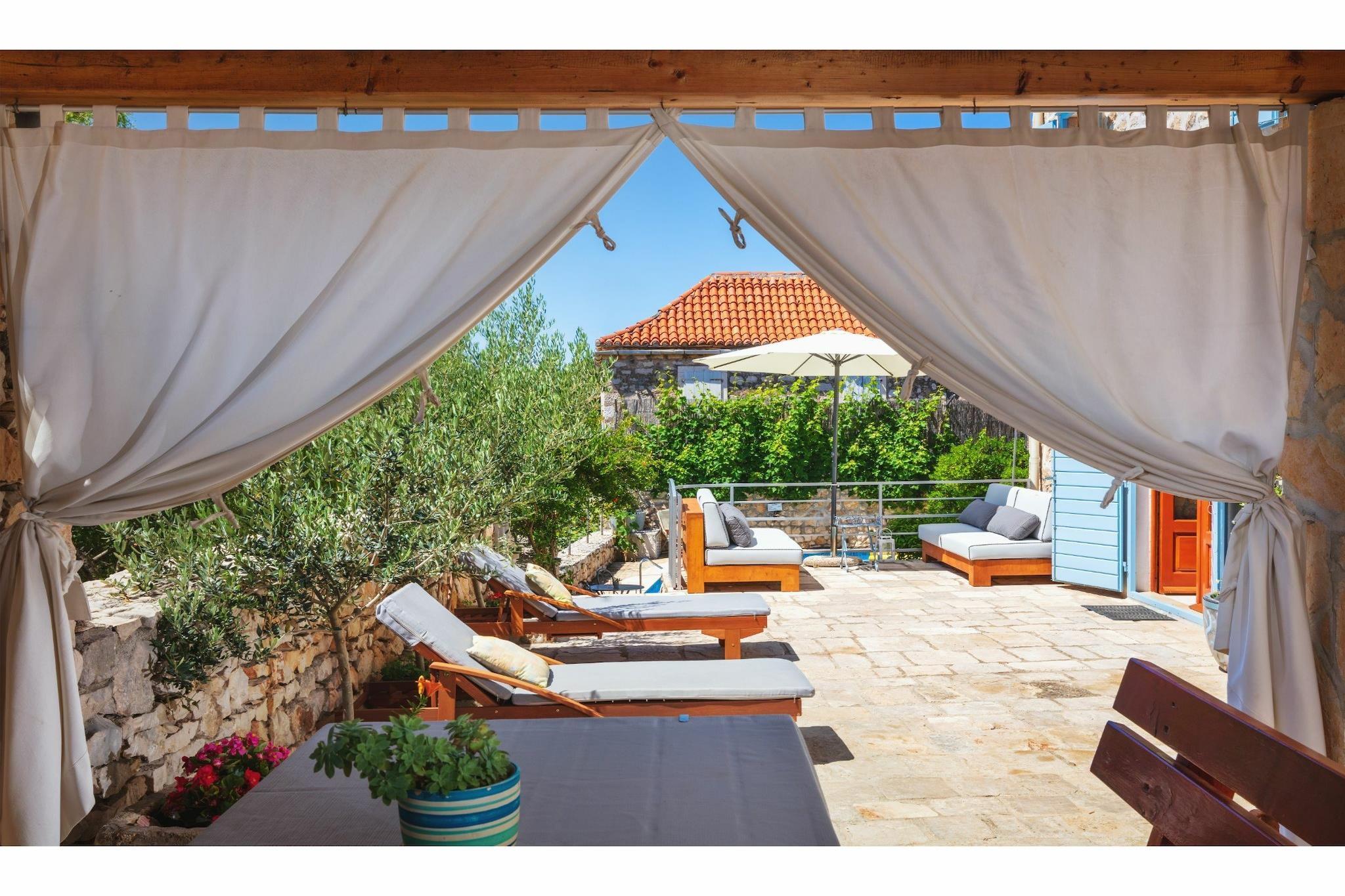 Villa Vicina ligger i hjärtat av Milna på Brac, högst upp på de kända stegen som dominerar byn, bara 110 meter från havet. Det är rätt i hjärtat av saker, nära restauranger, kaffebar och butiker, men har en privat, muromgärdad trädgård som skyddar den mot ljud och nyfikna förbipasserande. När du går nerför stegen, stämplad med historien om denna plats, når du vattnet, vid kristallklart hav. Denna traditionella dalmatiska stenvilla är 200 år gammal. Det renoverades omfattande under de senaste åren och smakfullt inredda så att de ursprungliga arkitektoniska funktionerna har bevarats. Den ligger på över 600 kvm privat mark med vackert underhållen trädgård. Villa Vicina är ett hus som verkar berika din ande och utstrålar lugn. Du kommer helt enkelt känna dig avslappnad här. Huset rymmer 7-9 personer bekvämt. På bottenvåningen finns ett öppet kök / matsal / vardagsrum, upptagen 55 m² och separat toalett, medan på första våningen finns 1 dubbelrum och 1 tvåbäddsrum och ett badrum. På andra våningen, på vinden med träbjälkar, finns ett trippelrum med eget badrum och en terrass (15 kvm) där du kan titta på hela omgivningen, hela den vackra havsbryggan och småbåtshamnen. Villa Vicina har en trädgårdsterrass (120 m²) som delvis är täckt, en öppen spis och trädgårdsmöbler för trevliga möten, en utomhuspool, en privat pool och en dusch och en fruktträdgård. Villa Vicina ger dig gott om plats att koppla av och njuta av. Lokala restauranger, stormarknader, kaféer ligger bara 3 minuters promenad från villan, medan Milna erbjuder en variation av högkvalitativa restauranger. Det tar 10 minuters promenad till stranden längs kusten eller 3 min med bil. De historiska platser som inkluderar gamla monument, slott som Blaca, Škrip, Dragon Cave ... kan nås med bil. Det tar 30 minuter att komma dit. Milna är också ett underbart läge som gör det möjligt att upptäcka många andra öar som Hv