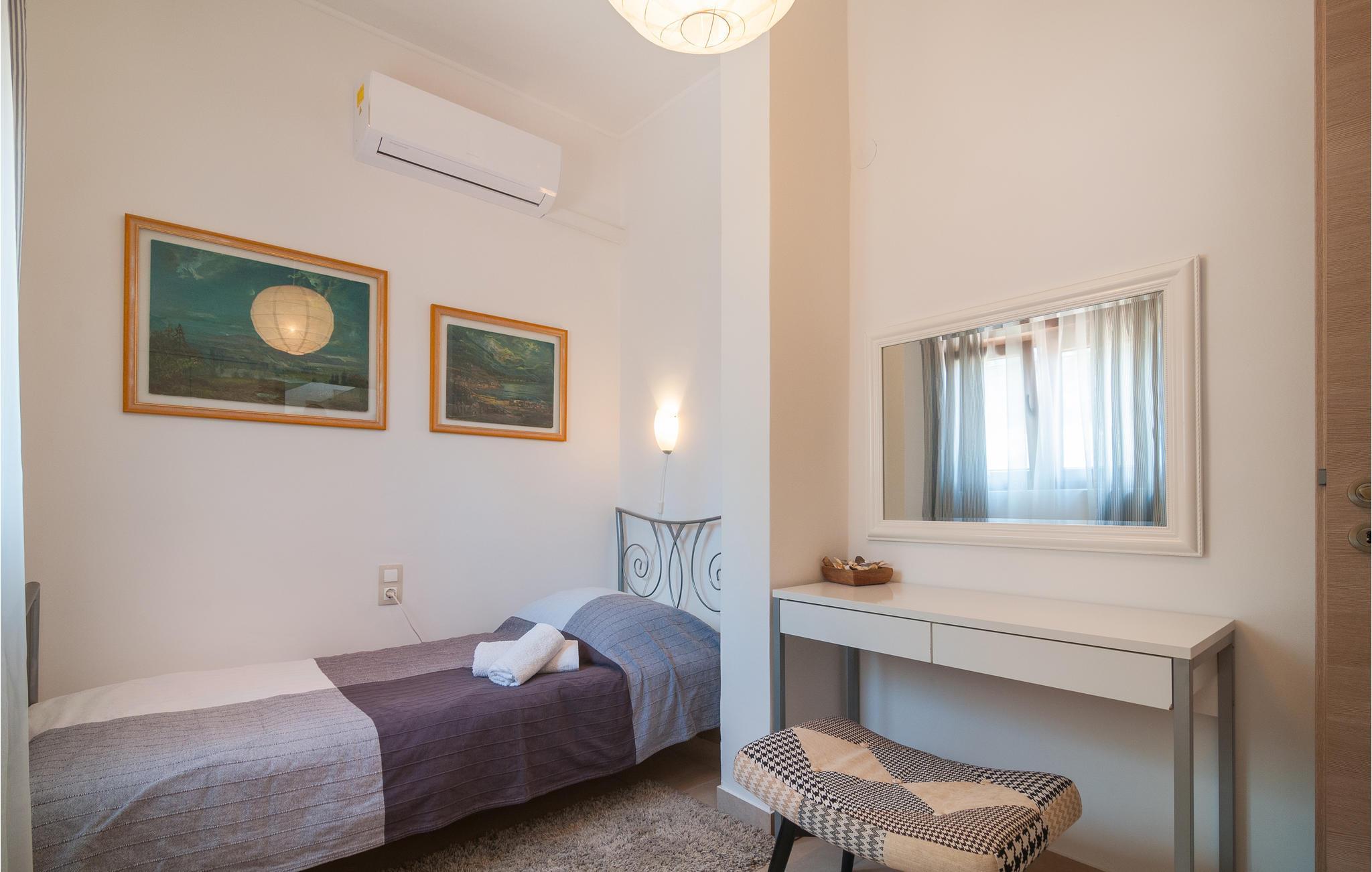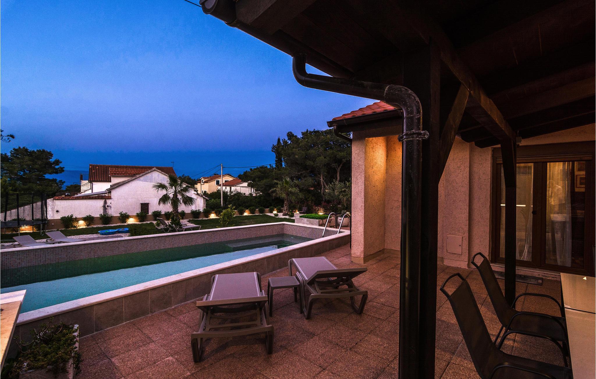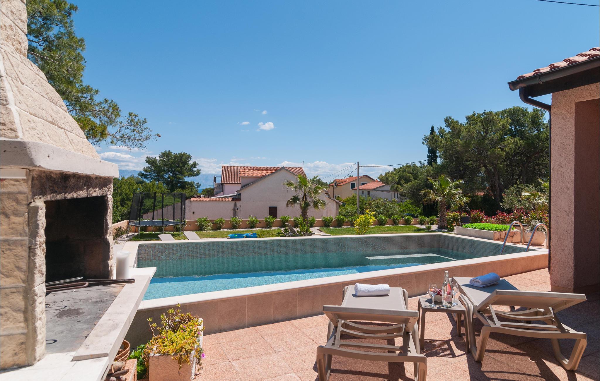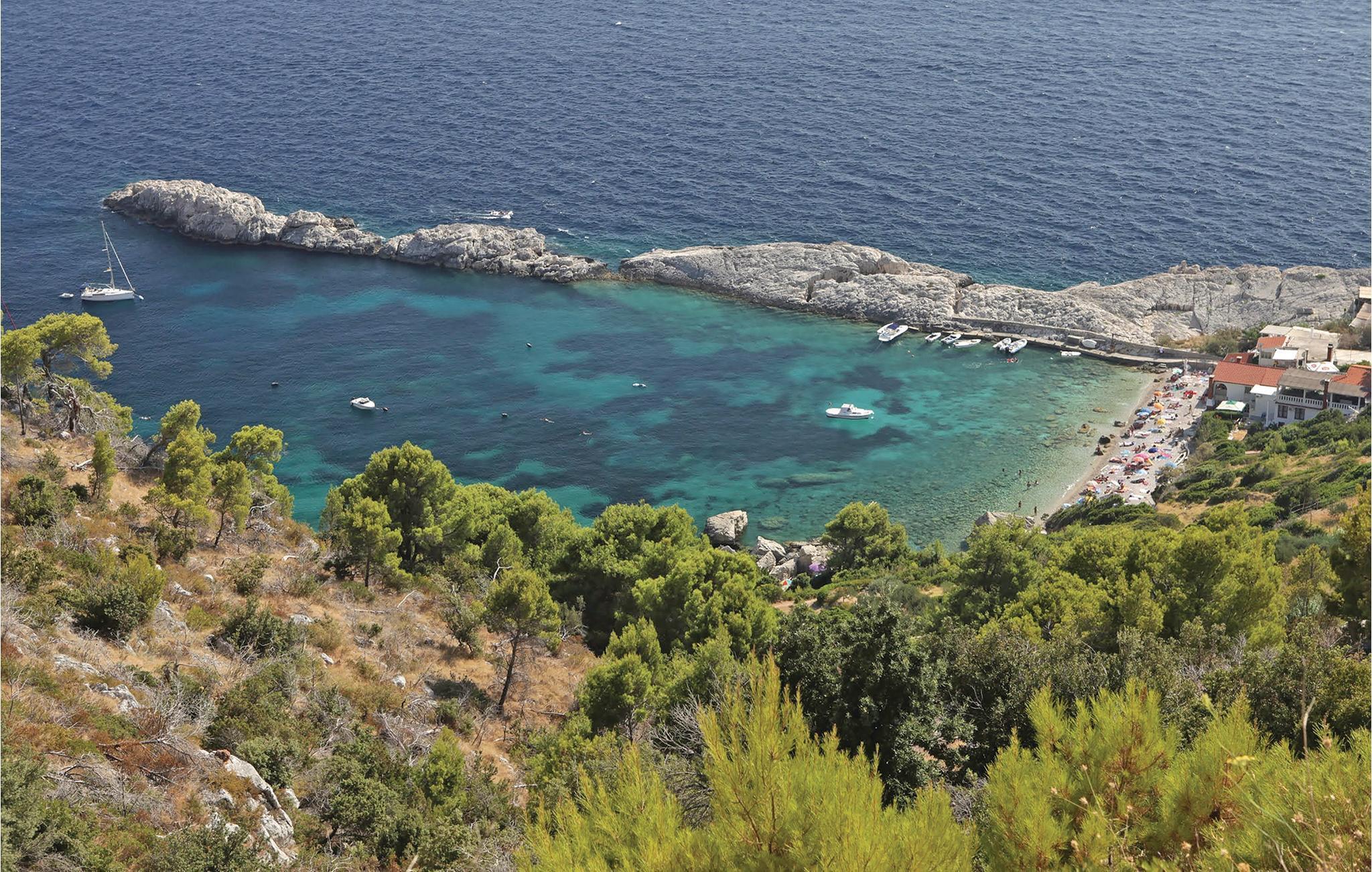 Detta trevliga semesterhus ligger i bukten Mudri Dolac. Det är omgivet av pinjeträd och medelhavsväxter, perfekt för en familjesemester. Det har en terrass och en stengrill där du kan koppla av eller ta en förfriskning i poolen. Fritiden kan spenderas med att spela bordtennis eller idrotta på studsmattan. Det finns fyra sovrum och en bastu på vinden, varifrån du når terrassen. Alla våningar är förbundna med invändiga trappor. Småstensstranden ligger ca 150 m nedåt. Endast 5 km längre bort ligger större städer på ön där du kan njuta av natur och kulturella skönheter och traditionella rätter på restaurangerna. På grund av läget rekommenderas bil.