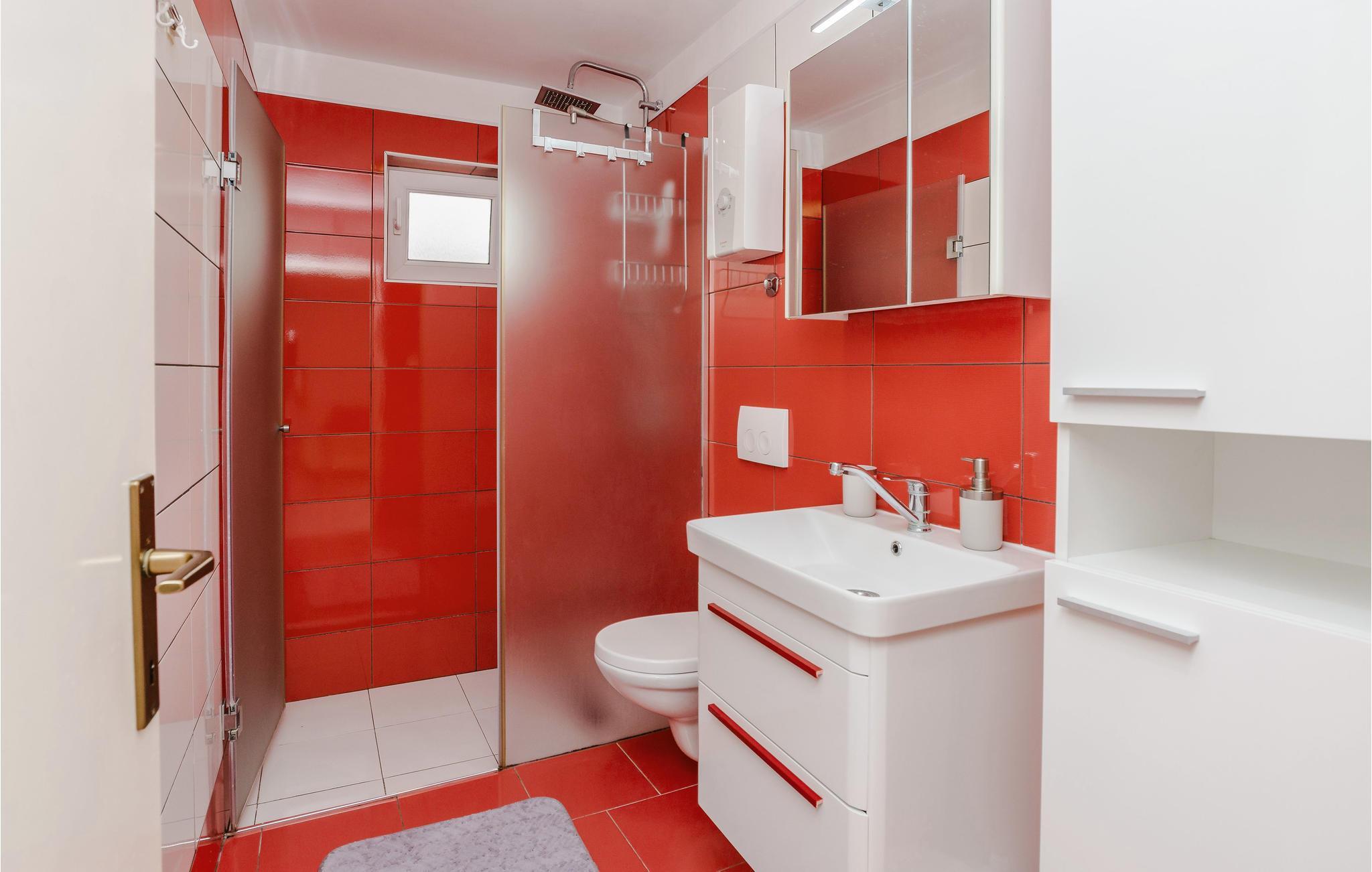 Badrum (nr. 2) - WC: Varmt och kallt vatten. Dusch