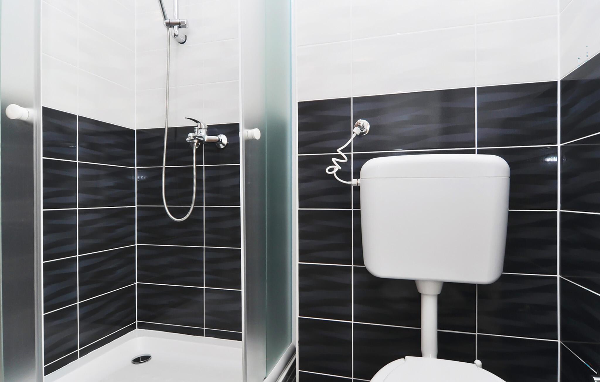 Badrum 5m2 (nr. 1) - WC: Varmt och kallt vatten. Dusch