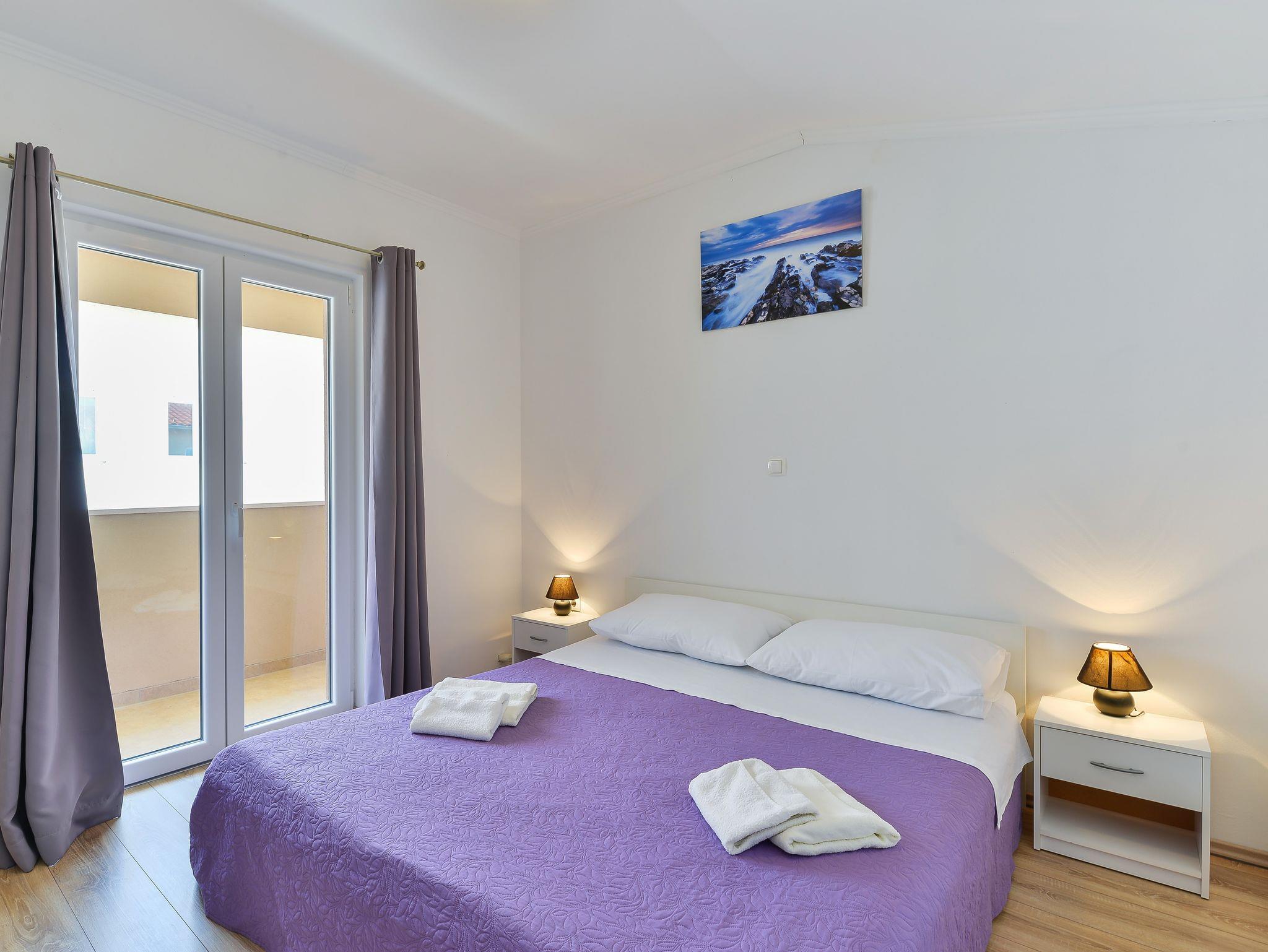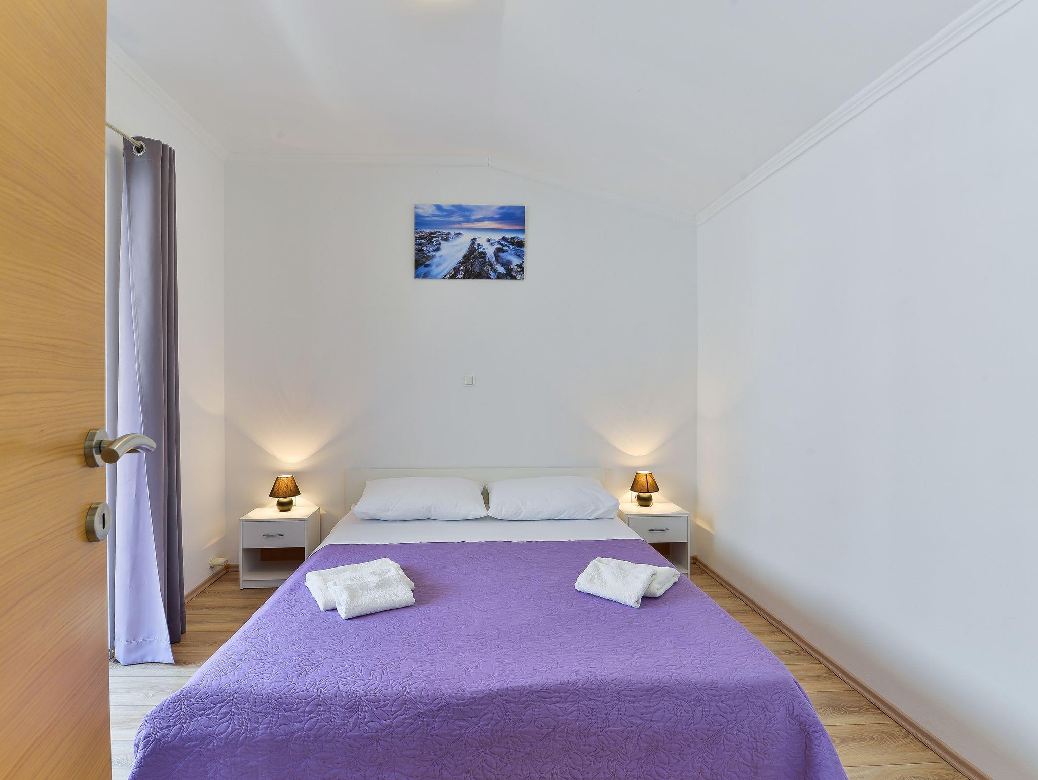 Ferienwohnung bietet Platz für 5 Gäste. Die Betten sind in Schlafzimmern, die es 2 gibt, und in Esszimmer, innerhalb einer Gesamtfläche von 57m2, angeordnet. Die Gäste haben einen eigenen Balkon zur Verfügung, auf der sie in warmen Sommernächten genießen können. Das Apartment bietet Meerblick. Es ist erlaubt, Speisen auf dem Gemeinschafts-Grill vorzubereiten. In der Unterkunftseinheit besteht die Möglichkeit des Mitbringens von Haustieren gegen Aufpreis. IM PREIS INBEGRIFFEN: Kurtaxe, Endreinigung, Klimatisierung, Parkplatz, Internet. UNVERBINDLICHE ZUSÄTZLICHE KOSTEN: Wäschewaschen (10,00 € Waschen), Haustiere (8,00 € pro Nacht). Die Verfügbarkeit zusätzlicher Dienstleistungen in Ihrem reservierten Termin und die Preise derselben (falls nicht aufgeführt) müssen im Voraus überprüft werden. Zusätzliche Dienstleistungen die in der Zahlungsaufforderung nicht aufgeführt sind werden direkt beim Vermieter bezahlt, angenommen der Gast nutzt auch diese.