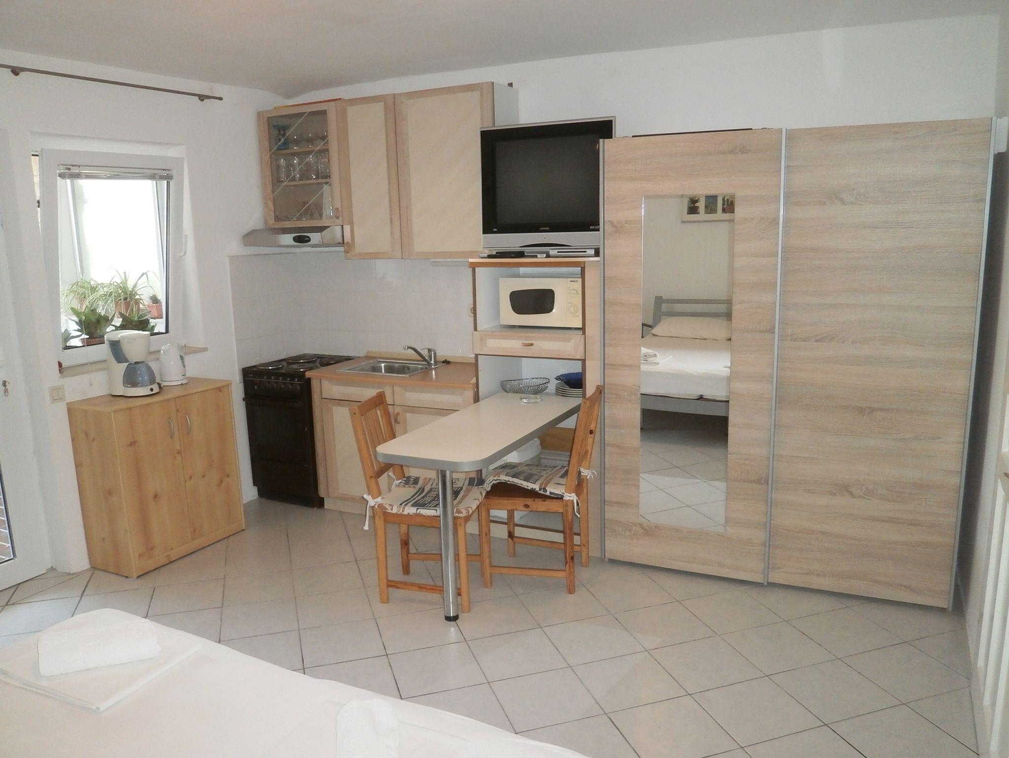 Studio bietet Platz für 2 Gäste. Die Betten sind in Schlafzimmern, die es 1 gibt, innerhalb einer Gesamtfläche von 26m2, angeordnet. Die Gäste haben eine eigene Terrasse zur Verfügung, auf der sie in warmen Sommernächten genießen können. Es ist erlaubt, Speisen auf dem Gemeinschafts-Grill vorzubereiten. IM PREIS INBEGRIFFEN: Kurtaxe, Endreinigung, Parkplatz, Internet, Kinderbett, Zusatzbett, Sonnenschirm. Die Verfügbarkeit zusätzlicher Dienstleistungen in Ihrem reservierten Termin und die Preise derselben (falls nicht aufgeführt) müssen im Voraus überprüft werden. Zusätzliche Dienstleistungen die in der Zahlungsaufforderung nicht aufgeführt sind werden direkt beim Vermieter bezahlt, angenommen der Gast nutzt auch diese.