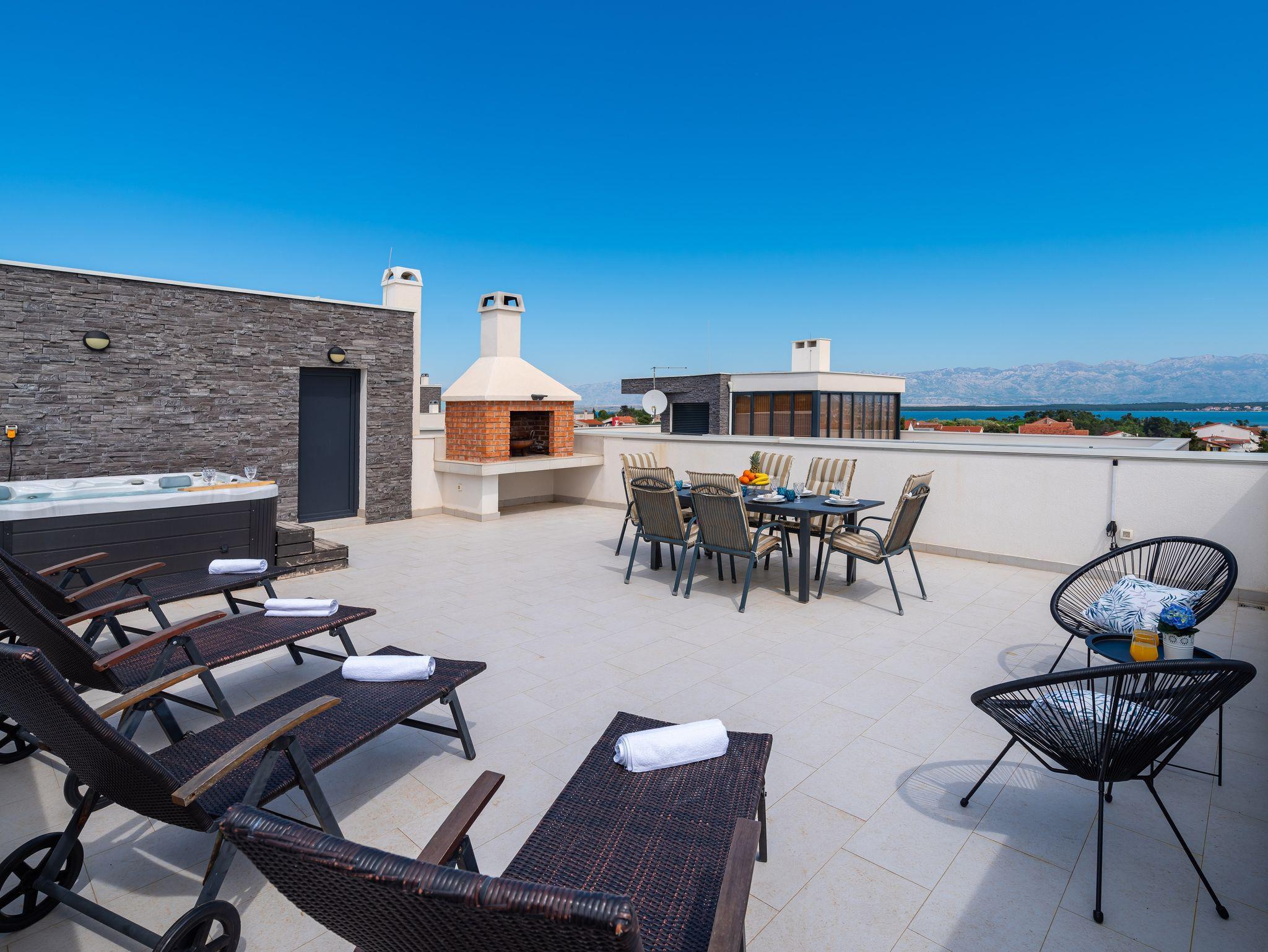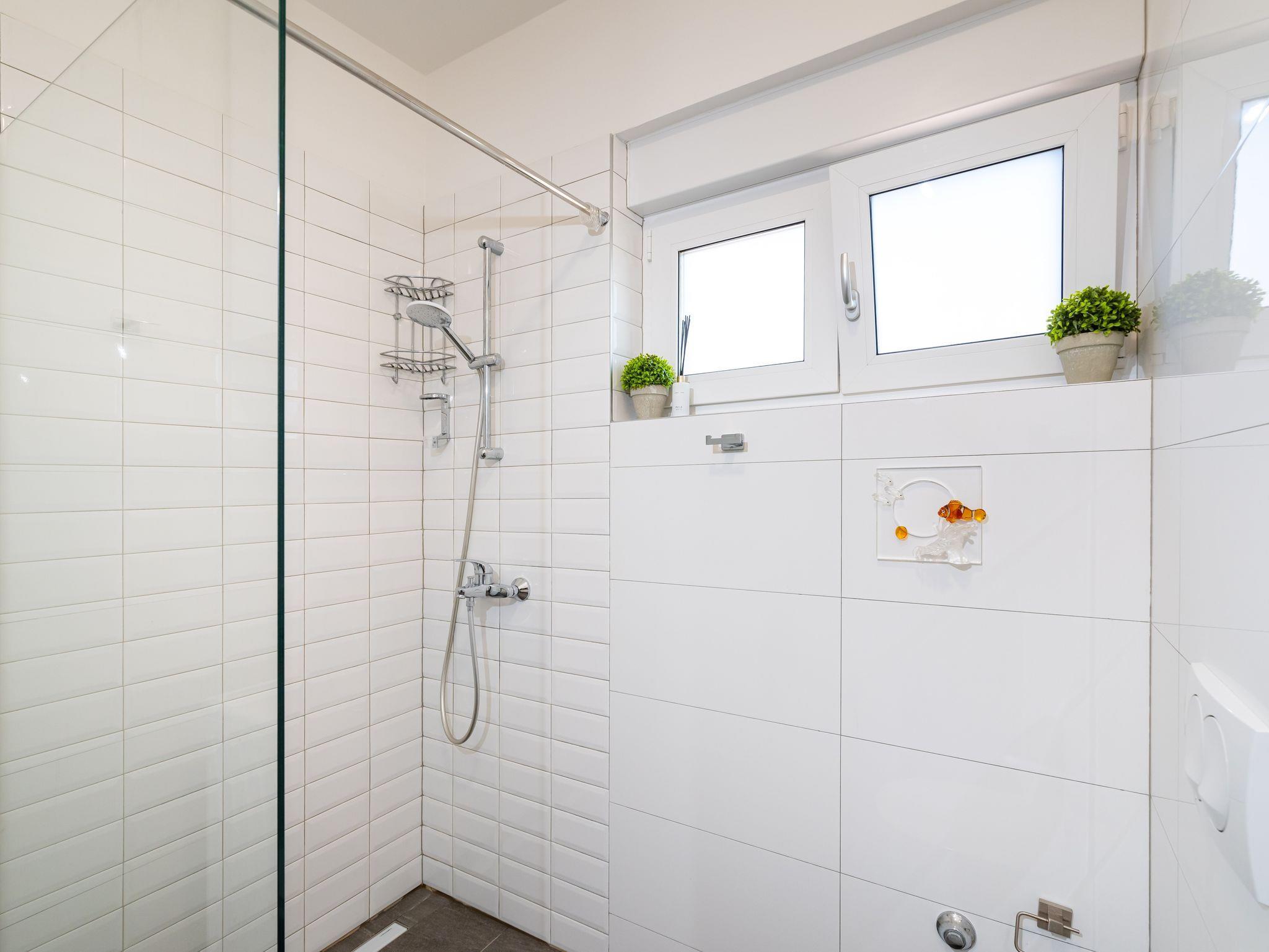 Ferienwohnung bietet Platz für 4 Gäste. Die Betten sind in Schlafzimmern, die es 2 gibt, innerhalb einer Gesamtfläche von 56m2, angeordnet. Die Gäste haben eine eigene Terrasse zur Verfügung, auf der sie in warmen Sommernächten genießen können. Das Apartment bietet Meerblick. Für vollen Genuss und Entspannung gibt es einen privaten Grill für Gäste dieser Unterkunft. IM PREIS INBEGRIFFEN: Kurtaxe, Endreinigung, Klimatisierung, Parkplatz, Internet, Fahrrad, Kinderbett, Bügeleisen, Bügelbrett, Föhn. VERBINDLICHE ZUSÄTZLICHE KOSTEN: Aufzahlung für Kurzaufenthalte (prozentualer Zuschlag pro Nächtigungsanzahl: 30% - 1, 20% - 2, 10% - 3). Die Verfügbarkeit zusätzlicher Dienstleistungen in Ihrem reservierten Termin und die Preise derselben (falls nicht aufgeführt) müssen im Voraus überprüft werden. Zusätzliche Dienstleistungen die in der Zahlungsaufforderung nicht aufgeführt sind werden direkt beim Vermieter bezahlt, angenommen der Gast nutzt auch diese.