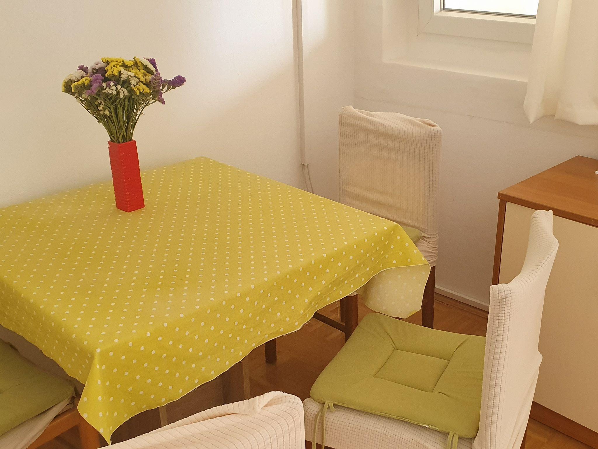 Ferienwohnung bietet Platz für 4 Gäste. Die Betten sind in Schlafzimmern, die es 1 gibt, und in Wohnzimmer, innerhalb einer Gesamtfläche von 30m2, angeordnet. Die Gäste haben eine eigene Terrasse zur Verfügung, auf der sie in warmen Sommernächten genießen können. Das Apartment bietet Meerblick. Es ist erlaubt, Speisen auf dem Gemeinschafts-Grill vorzubereiten. IM PREIS INBEGRIFFEN: Kurtaxe, Endreinigung, Klimatisierung, Parkplatz, Internet, Bootsanlegeplatz, Bügeleisen, Bügelbrett, Föhn. VERBINDLICHE ZUSÄTZLICHE KOSTEN: Aufzahlung für Kurzaufenthalte (prozentualer Zuschlag pro Nächtigungsanzahl: 30% - 1, 20% - 2, 10% - 3). UNVERBINDLICHE ZUSÄTZLICHE KOSTEN: Zusatzbett (5,00 € pro Nacht). Die Verfügbarkeit zusätzlicher Dienstleistungen in Ihrem reservierten Termin und die Preise derselben (falls nicht aufgeführt) müssen im Voraus überprüft werden. Zusätzliche Dienstleistungen die in der Zahlungsaufforderung nicht aufgeführt sind werden direkt beim Vermieter bezahlt, angenommen der Gast nutzt auch diese.