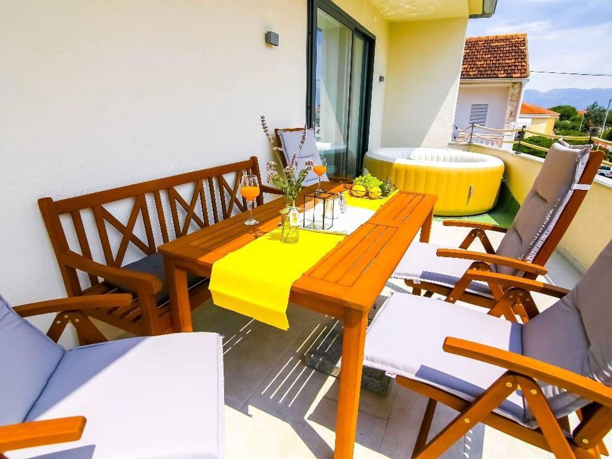 Ferienwohnung bietet Platz für 6 Gäste. Die Betten sind in Schlafzimmern, die es 2 gibt, innerhalb einer Gesamtfläche von 78m2, angeordnet. Die Gäste haben eine eigene Terrasse zur Verfügung, auf der sie in warmen Sommernächten genießen können. Das Apartment bietet Meerblick. Für vollen Genuss und Entspannung gibt es einen privaten Grill für Gäste dieser Unterkunft. IM PREIS INBEGRIFFEN: Kurtaxe, Endreinigung, Klimatisierung, Parkplatz, Internet, Bootsanlegeplatz, Kinderbett, Bügeleisen, Bügelbrett, Föhn, tragbarer Grill. Die Verfügbarkeit zusätzlicher Dienstleistungen in Ihrem reservierten Termin und die Preise derselben (falls nicht aufgeführt) müssen im Voraus überprüft werden. Zusätzliche Dienstleistungen die in der Zahlungsaufforderung nicht aufgeführt sind werden direkt beim Vermieter bezahlt, angenommen der Gast nutzt auch diese. Ermäßigung auf den Grundpreis: Gratistag 14=13 (bei einem Aufenthalt von 14 Tagen oder mehr erhalten Sie einen Gratistag für den Aufenthalt bis 31.12.26).
