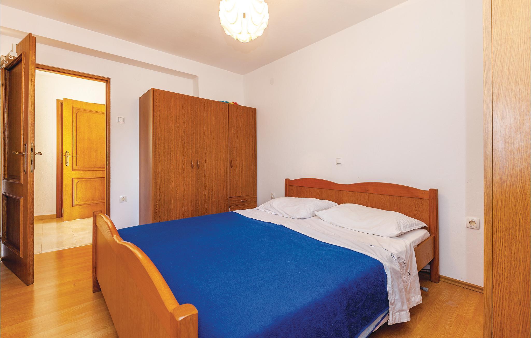 Du bor på första våningen i en enkelt och funktionellt inredd semesterlägenhet. Invändigt hittar du ett sovrum med den lägsta takhöjden på 1,55 m. En utvändig trappa leder till din egen lägenhetsdörr. Du har en täckt terrass till ditt förfogande, som erbjuder en vacker utsikt över bukten samt delvis utsikt över havet. Tillaga läckra måltider på grillen och ta promenader längs strandpromenaden.