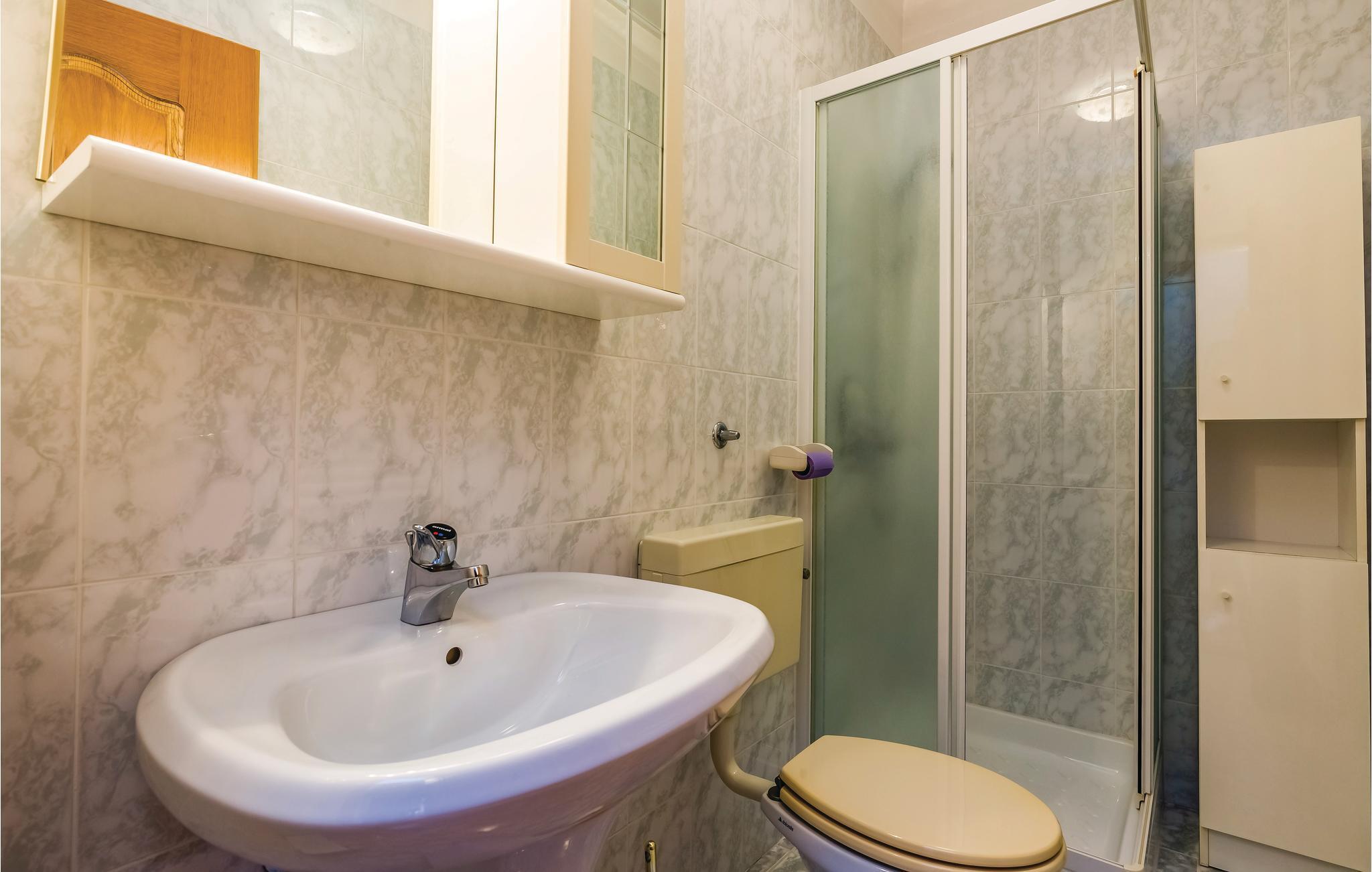 Badrum (nr. 3) - WC: Varmt och kallt vatten. Dusch