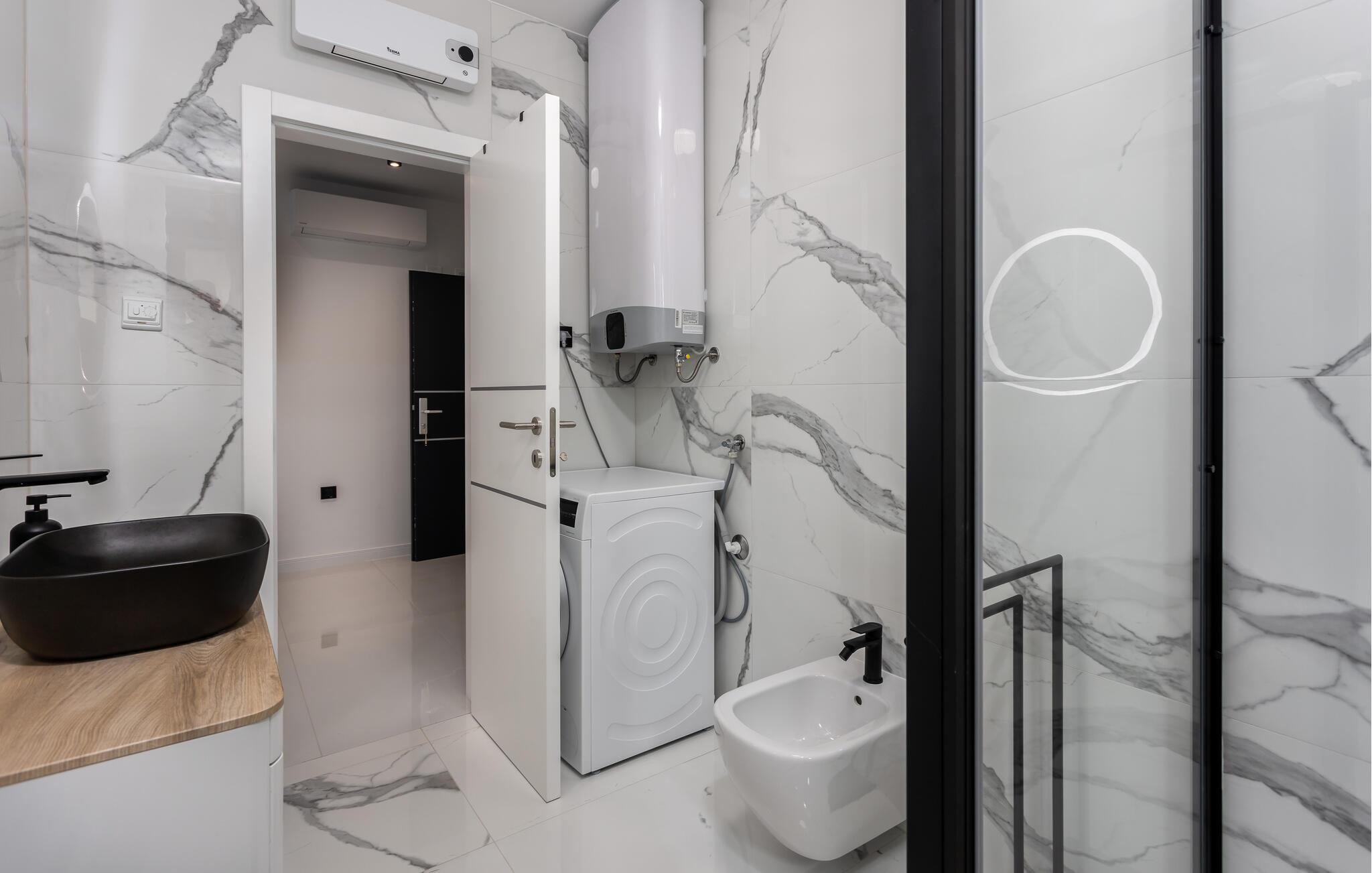 Njut av din semester i denna lyxiga semesterlägenhet i Novi Vinodolski, bara några meter från stranden och strandpromenaden. Lägenheten imponerar med sin moderna och eleganta inredning, som erbjuder maximal komfort. Stora fönster släpper in mycket naturligt ljus och skapar en ljus och vänlig atmosfär.
