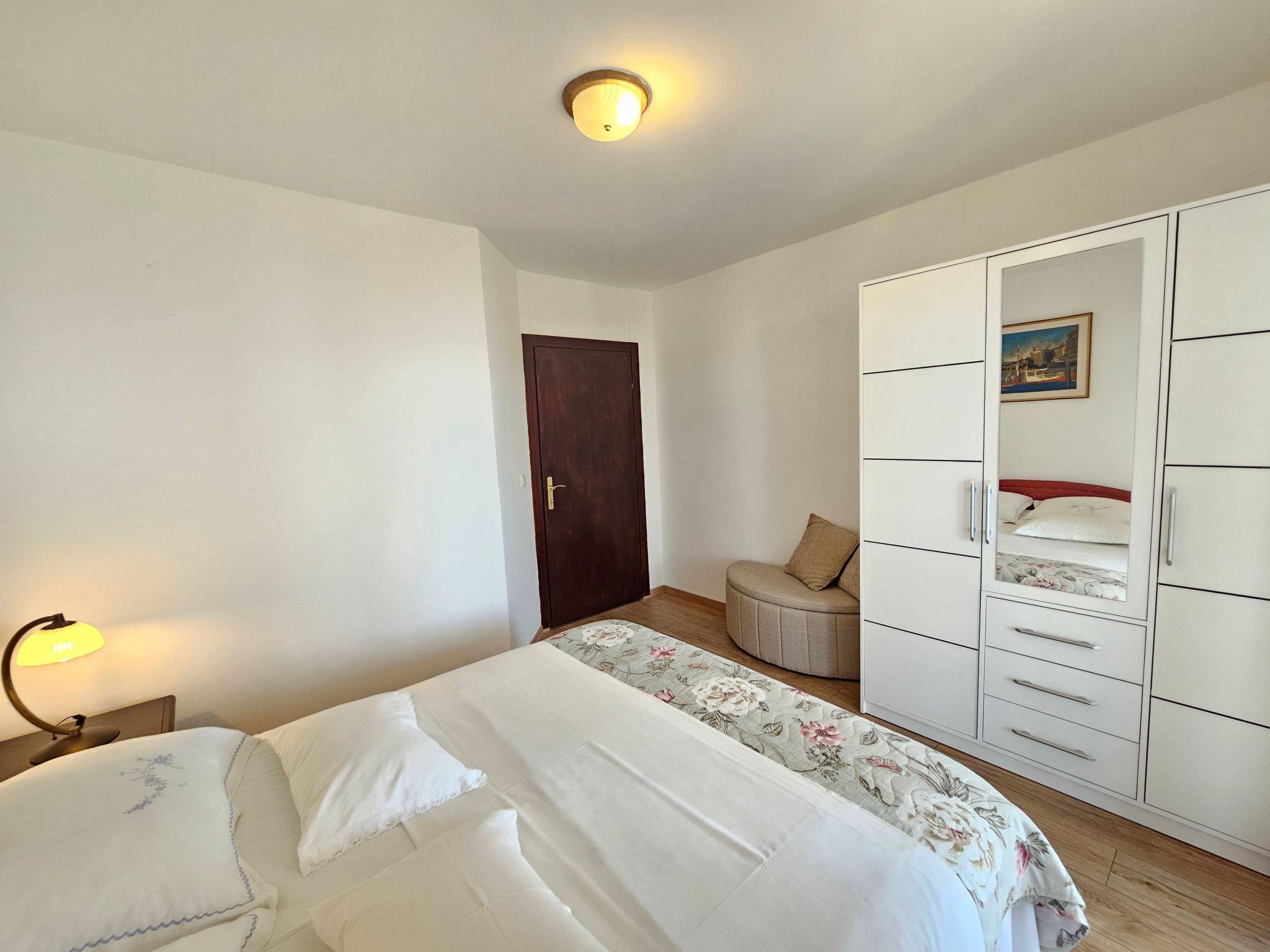 The apartment's exterior is just as appealing, with a big terrace that invites you to bask in the breathtaking sea views. The shared garden houses a grill, perfect for enjoying alfresco dining amidst the tranquil surroundings. Private parking is also included, ensuring peace of mind for those traveling with a vehicle.