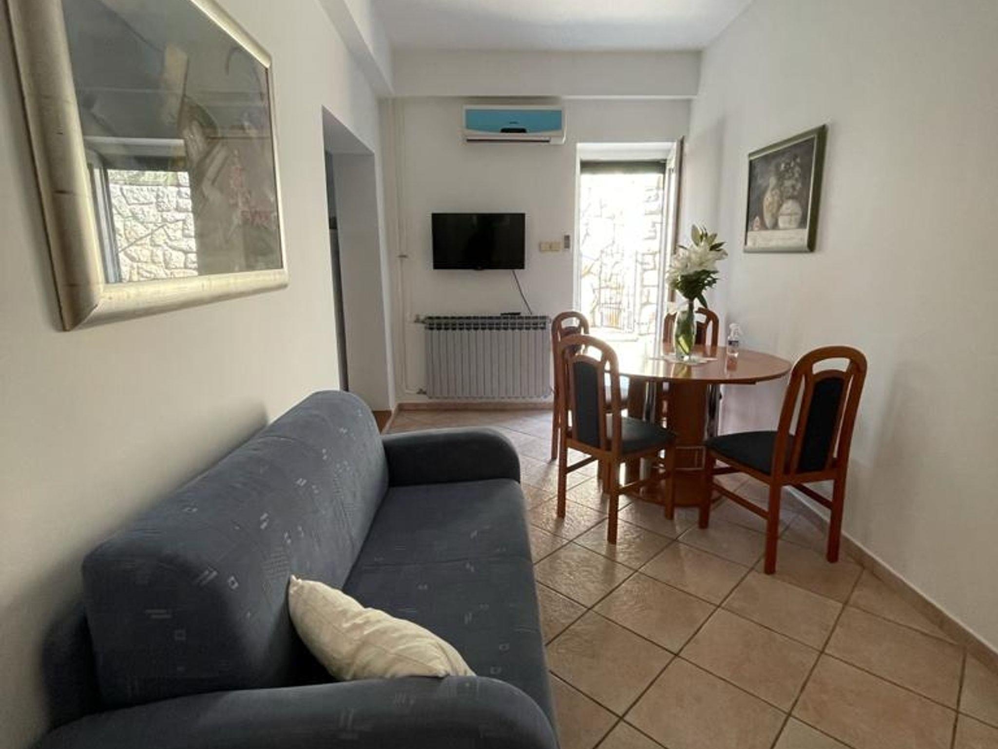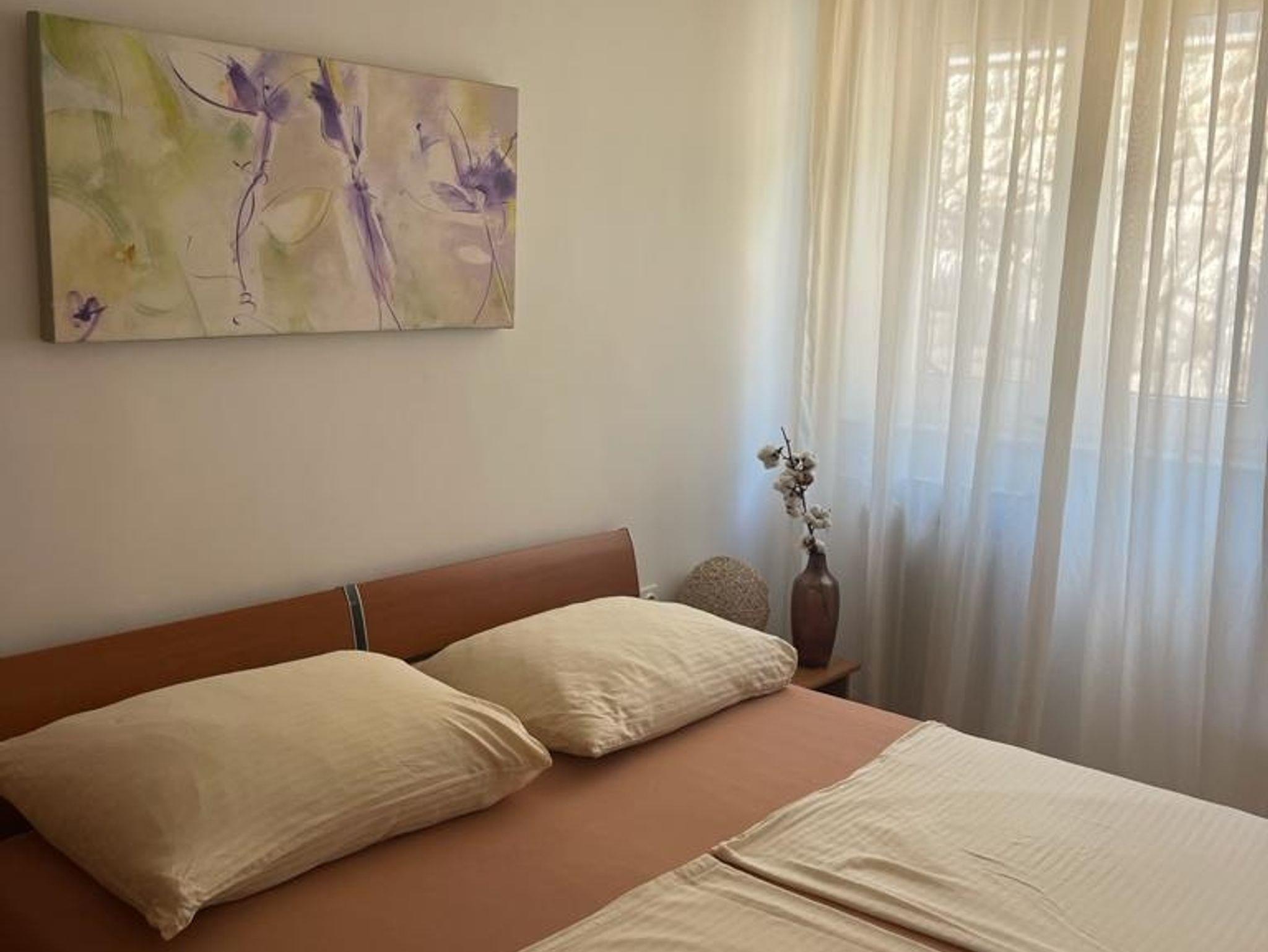 Ferienwohnung bietet Platz für 5 Gäste. Die Betten sind in Schlafzimmern, die es 2 gibt, und in Esszimmer, innerhalb einer Gesamtfläche von 51m2, angeordnet. Die Gäste haben eine eigene Terrasse zur Verfügung, auf der sie in warmen Sommernächten genießen können. Das Apartment bietet Meerblick. Für vollen Genuss und Entspannung gibt es einen privaten Grill für Gäste dieser Unterkunft. IM PREIS INBEGRIFFEN: Kurtaxe, Endreinigung, Klimatisierung, Zentralheizung, Parkplatz, Internet, Bügeleisen, Bügelbrett, Föhn. VERBINDLICHE ZUSÄTZLICHE KOSTEN: Aufzahlung für Kurzaufenthalte (prozentualer Zuschlag pro Nächtigungsanzahl: 30% - 1, 20% - 2, 10% - 3). Die Verfügbarkeit zusätzlicher Dienstleistungen in Ihrem reservierten Termin und die Preise derselben (falls nicht aufgeführt) müssen im Voraus überprüft werden. Zusätzliche Dienstleistungen die in der Zahlungsaufforderung nicht aufgeführt sind werden direkt beim Vermieter bezahlt, angenommen der Gast nutzt auch diese. Ermäßigung auf den Grundpreis: Gratistag 14=13 (bei einem Aufenthalt von 14 Tagen oder mehr erhalten Sie einen Gratistag für den Aufenthalt bis 31.12.26).