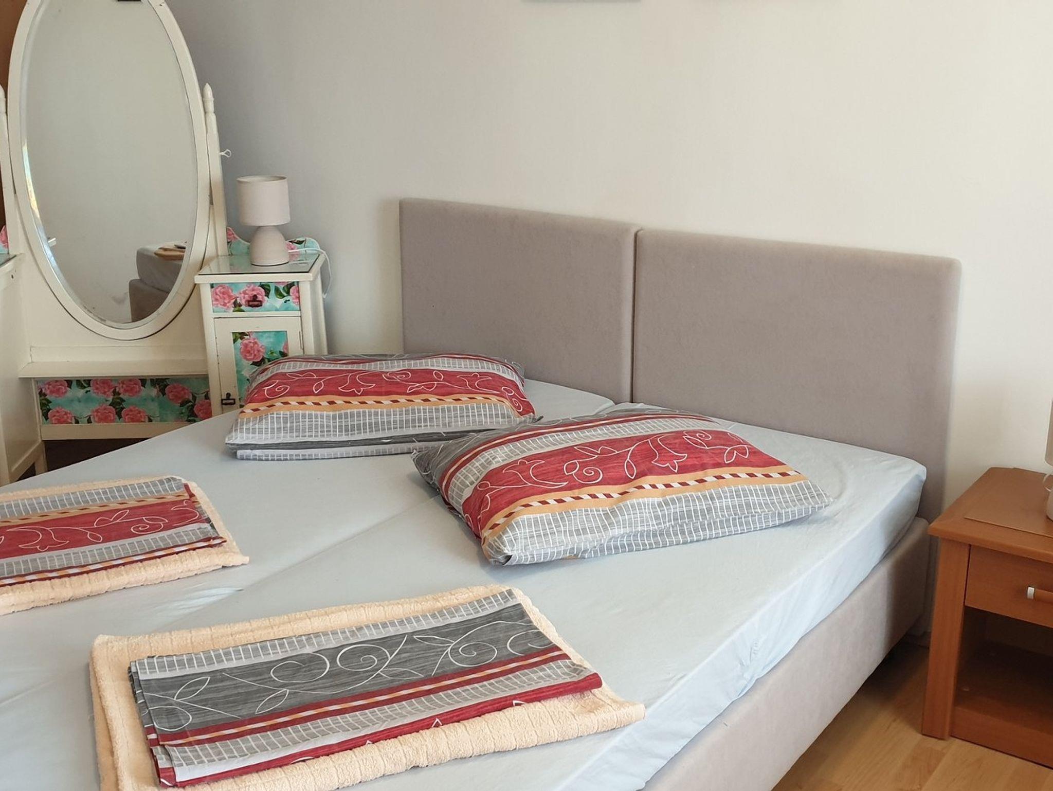 Ferienwohnung bietet Platz für 4 Gäste. Die Betten sind in Schlafzimmern, die es 2 gibt, innerhalb einer Gesamtfläche von 62m2, angeordnet. Die Gäste haben eine eigene Terrasse zur Verfügung, auf der sie in warmen Sommernächten genießen können. Das Apartment bietet Meerblick. Es ist erlaubt, Speisen auf dem Gemeinschafts-Grill vorzubereiten. In der Unterkunftseinheit besteht die Möglichkeit des Mitbringens von Haustieren gegen Aufpreis. IM PREIS INBEGRIFFEN: Kurtaxe, Endreinigung, Klimatisierung, Parkplatz, Internet, tragbarer Grill. VERBINDLICHE ZUSÄTZLICHE KOSTEN: Aufzahlung für Kurzaufenthalte (prozentualer Zuschlag pro Nächtigungsanzahl: 30% - 1, 20% - 2, 10% - 3). UNVERBINDLICHE ZUSÄTZLICHE KOSTEN: Haustiere (5,00 € pro Nacht). Die Verfügbarkeit zusätzlicher Dienstleistungen in Ihrem reservierten Termin und die Preise derselben (falls nicht aufgeführt) müssen im Voraus überprüft werden. Zusätzliche Dienstleistungen die in der Zahlungsaufforderung nicht aufgeführt sind werden direkt beim Vermieter bezahlt, angenommen der Gast nutzt auch diese.