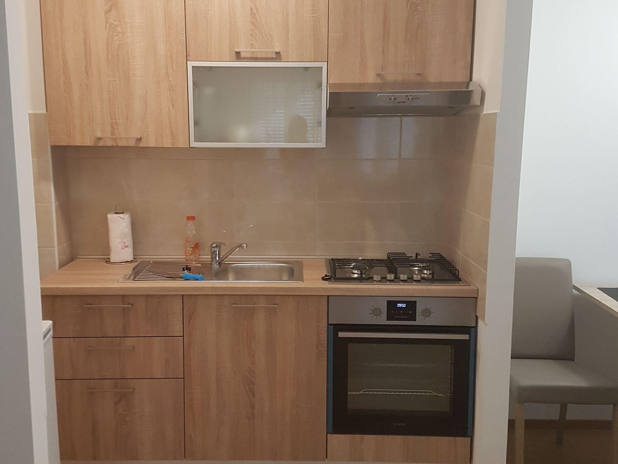 Studio bietet Platz für 3 Gäste. Die Betten sind in Wohnzimmer, innerhalb einer Gesamtfläche von 27m2, angeordnet. Die Gäste haben eine eigene Terrasse zur Verfügung, auf der sie in warmen Sommernächten genießen können. Das Studio-Apartment bietet Meerblick. Es ist erlaubt, Speisen auf dem Gemeinschafts-Grill vorzubereiten. IM PREIS INBEGRIFFEN: Kurtaxe, Endreinigung, Parkplatz, Internet, Bügeleisen, Bügelbrett. VERBINDLICHE ZUSÄTZLICHE KOSTEN: Aufzahlung für Kurzaufenthalte (prozentualer Zuschlag pro Nächtigungsanzahl: 30% - 1, 20% - 2, 10% - 3). UNVERBINDLICHE ZUSÄTZLICHE KOSTEN: Klimatisierung (5,00 € pro Nacht). Die Verfügbarkeit zusätzlicher Dienstleistungen in Ihrem reservierten Termin und die Preise derselben (falls nicht aufgeführt) müssen im Voraus überprüft werden. Zusätzliche Dienstleistungen die in der Zahlungsaufforderung nicht aufgeführt sind werden direkt beim Vermieter bezahlt, angenommen der Gast nutzt auch diese. Ermäßigung auf den Grundpreis: Gratistag 14=13 (bei einem Aufenthalt von 14 Tagen oder mehr erhalten Sie einen Gratistag für den Aufenthalt bis 31.12.26).
