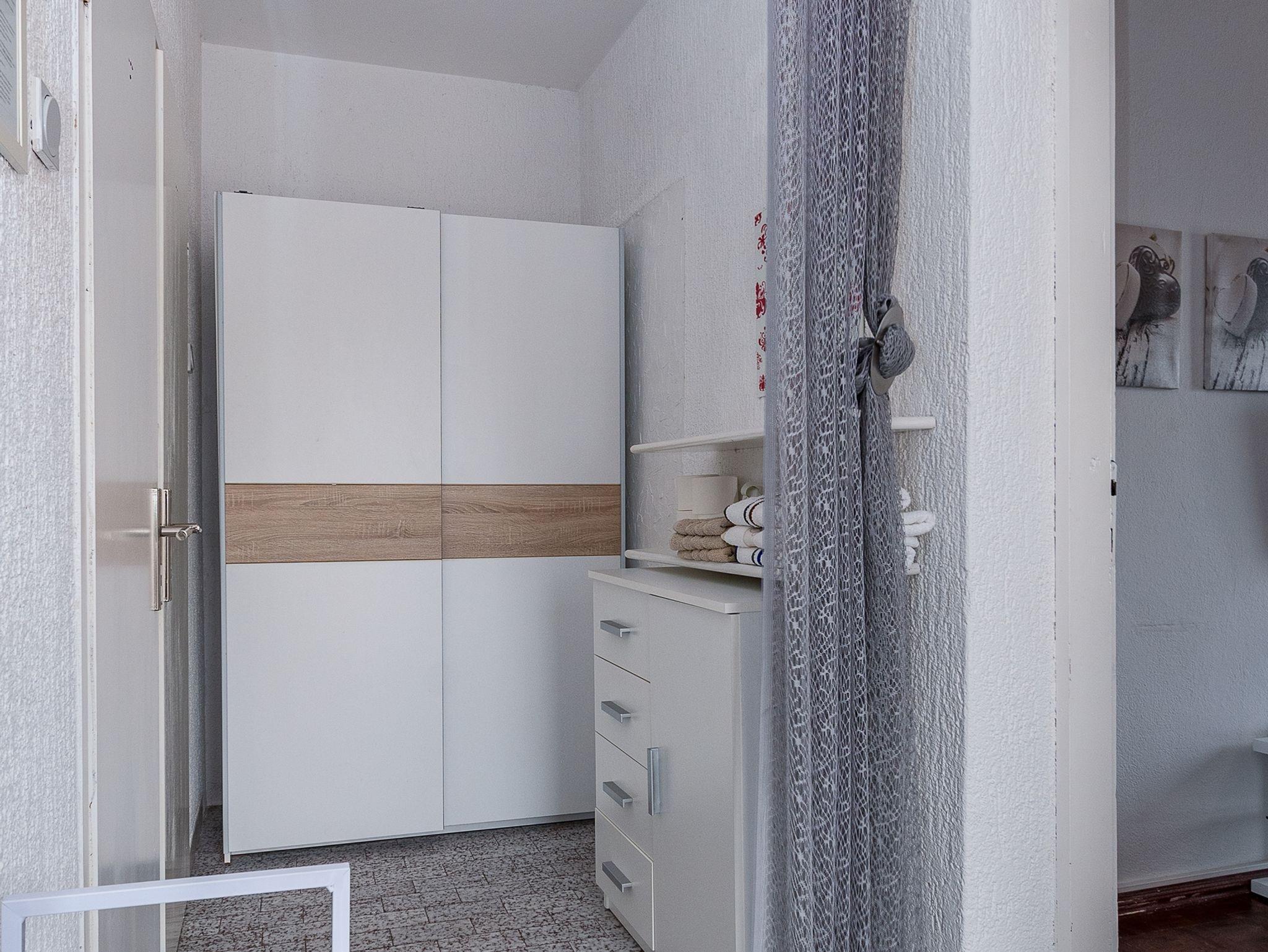 Ferienwohnung bietet Platz für 3 Gäste. Die Betten sind in Schlafzimmern, die es 1 gibt, und in Wohnzimmer, innerhalb einer Gesamtfläche von 39m2, angeordnet. Die Gäste haben einen eigenen Balkon zur Verfügung, auf der sie in warmen Sommernächten genießen können. Das Apartment bietet Meerblick. Es ist erlaubt, Speisen auf dem Gemeinschafts-Grill vorzubereiten. Während ihres Aufenthalts können Gäste das gemeinsam zur Nutzung stehende Schwimmbad benutzen. Die reservierte Unterkunftseinheit verfügt über einen gemeinsame Terrasse. IM PREIS INBEGRIFFEN: Kurtaxe, Endreinigung, Klimatisierung, Pool, Parkplatz, Internet. Die Verfügbarkeit zusätzlicher Dienstleistungen in Ihrem reservierten Termin und die Preise derselben (falls nicht aufgeführt) müssen im Voraus überprüft werden. Zusätzliche Dienstleistungen die in der Zahlungsaufforderung nicht aufgeführt sind werden direkt beim Vermieter bezahlt, angenommen der Gast nutzt auch diese.
