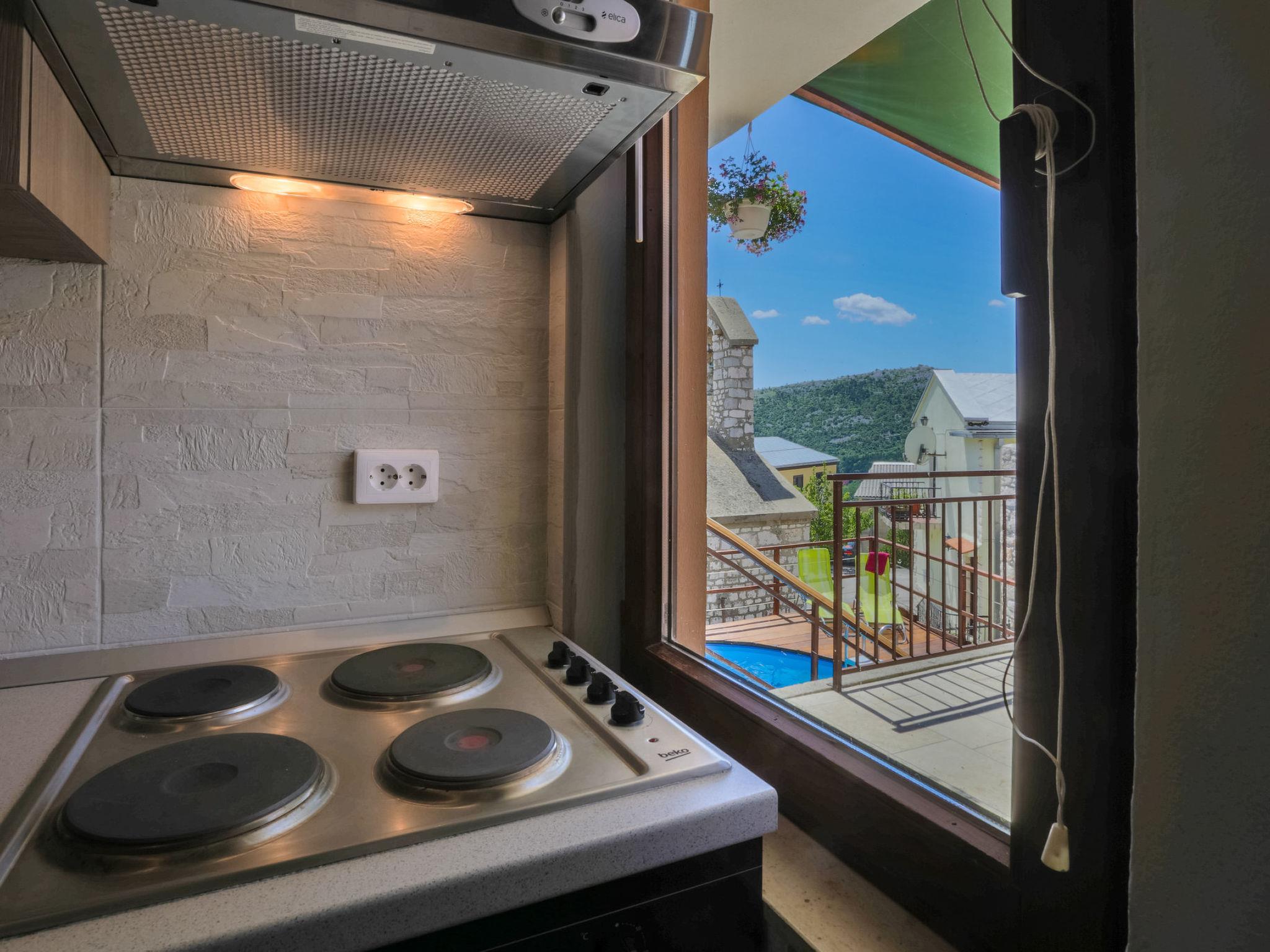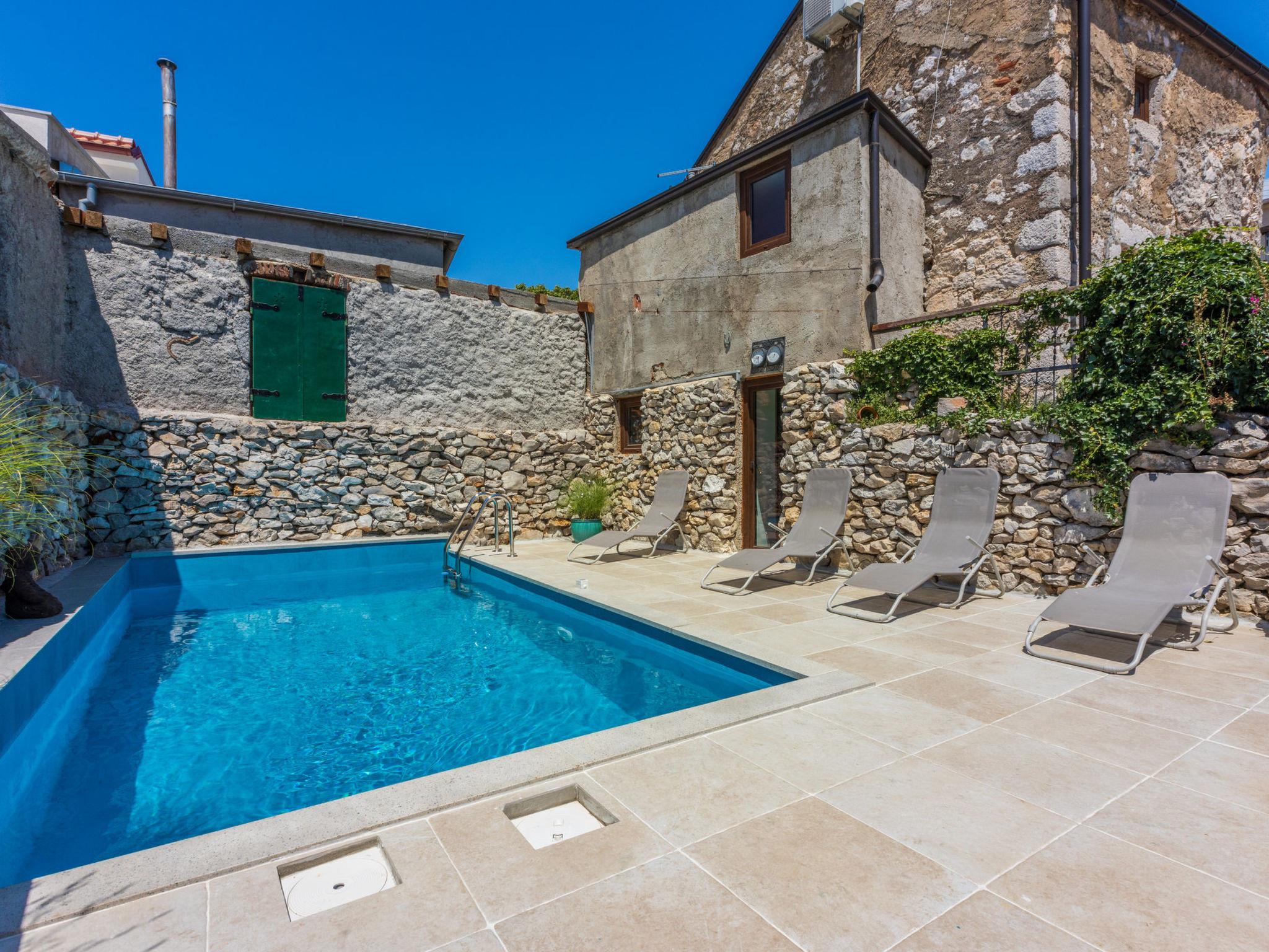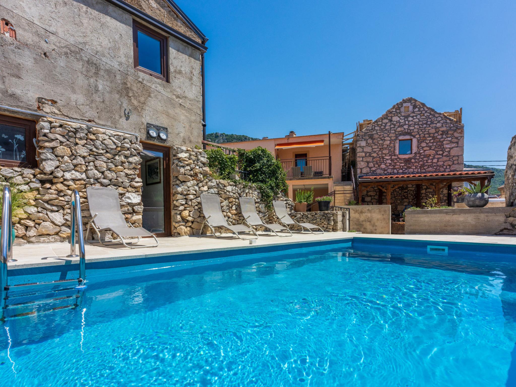 Villa Casa Royal is located not far from the sea and the popular holiday resort of Crikvenica in the village of Bribir.The property consists of a main house with 2 apartments and a stone house. There is enough space for up to 14 people.It has a large covered terrace, an enclosed courtyard, and a pool.1st unit is the ground floor in the main house and consists of 2 bedrooms, living/dining room with kitchen, bathroom, guest toilet and a hallway. It also has a covered terrace.2nd unit is the 1st floor in the main house and has 2 bedrooms, living/dining room with kitchen with a sofa bed, 2 bathrooms, a furnished balcony and a hallway.3rd unit is the stone house which has a pleasant and well-equipped kitchen, as well as a living room, 2 bedrooms, 2 bathrooms and a small balcony.Pets are welcome.Description:Living area:Living / dining room and kitchen are in one room, sofa bed for two people, 2 extra beds, balcony, terrace, parquet, radio, satellite TVKitchen:Kitchen, dishes, kitchen towels, electric cooker, hot plates: 4, oven, refrigerator with freezer, filter coffee machine, kettle, microwave, toasterBedroom:Double room with double bed, sea view, tilesDouble room with double bed, tilesDouble room with double bed, tilesDouble room with double bed, parquetDouble room with double bed, parquetBathroom:Bathroom with toilet, showerBathroom with toilet, showerBathroom with toilet, showerBathroom with toilet, showerBalcony / terrace:Private balcony, covered, sea view, chairs, balcony size: 20 m², private terrace, covered, chairs, loungers, terrace size: 15 m²This outdoor area surface is 100 m² and has a beautiful swimming pool with sun loungers.There are 4 parking spaces on the property. There are also free public parking spaces near the house.Other:Barbecue, you can bring your own barbecue, garage, parking on the property, swimming pool, swimming pool size: 16 m², pets allowed, daily fee for pet: 10.00 EUR, air conditioning included in the price, bed linen available, towels available, washing machine in apartment, internet via WiFiTo the sea 7000 m, sandy beach 9000 m, fine pebble beach 7000 m, pebble beach 7000 m, rocky beach 7500 m, concrete beach 8000 m, center 150 m, restaurant 200 m, supermarket 150 m, diving center 9000 m, discotheque 8000 m