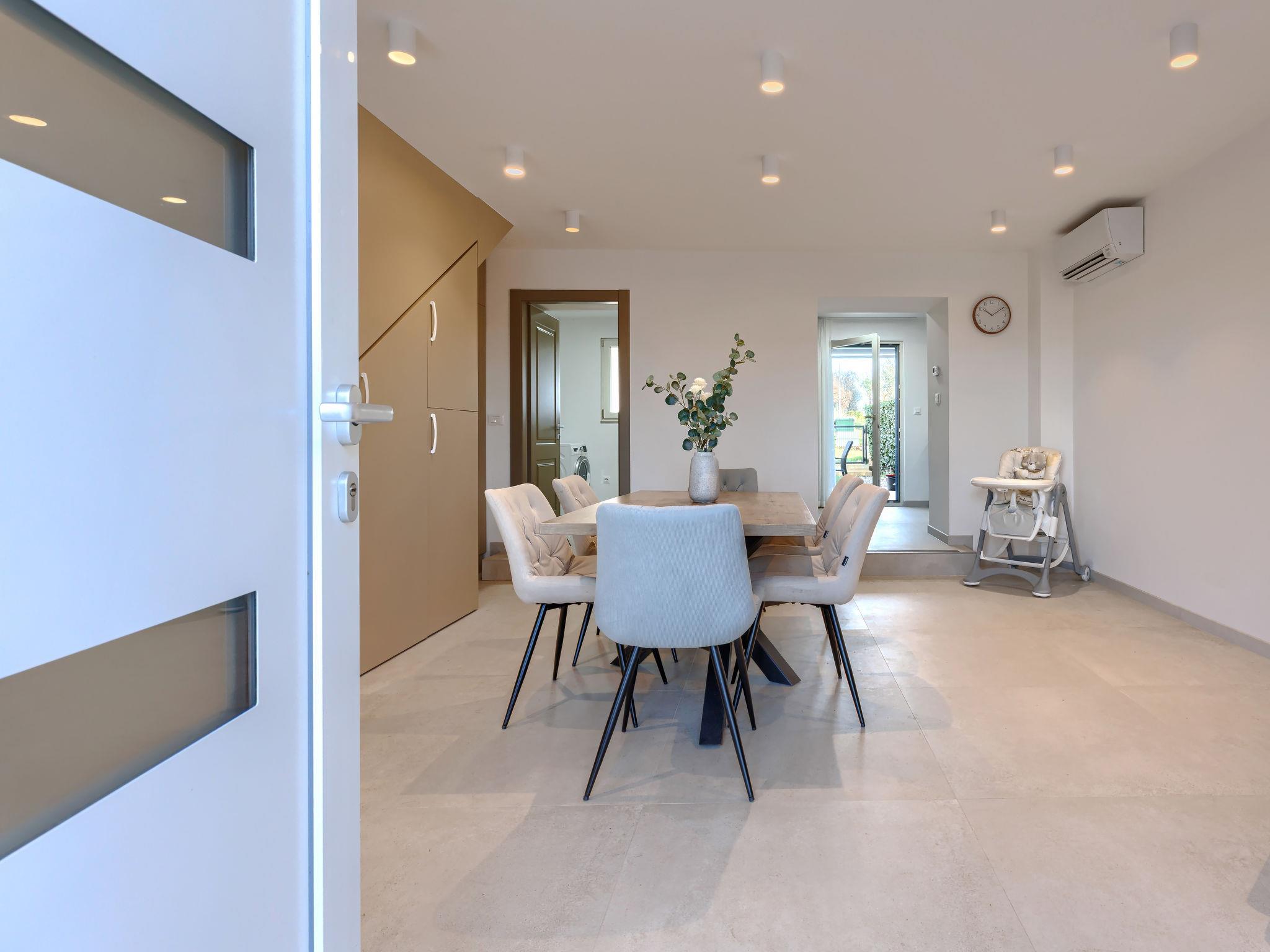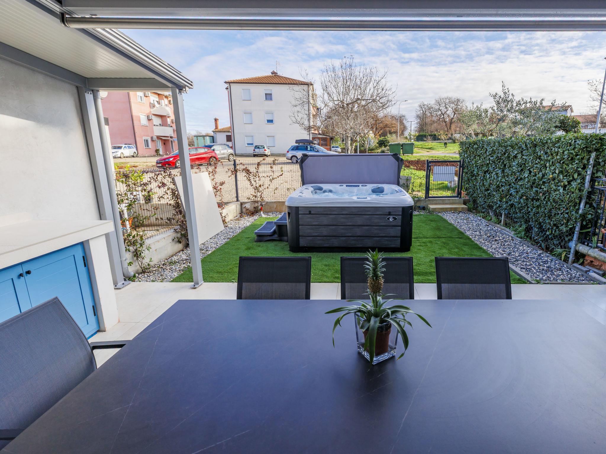 Cosy terraced house "Casa Rinata", 3 storeys, terraced. In the hamlet Bužinija 3.8 km from the centre of Novigrad, in a sunny position, 4 km from the sea, 4 km from the beach. Private: hot tub, pergola, garden furniture, barbecue. In the house: internet access, washing machine. Parking (for 3 cars) at the house on the premises. Shop 3 km, supermarket 3 km, restaurant 50 m, bus stop 350 m, pebble beach 3.8 km, rocky beach 3.8 km. Tennis 3.5 km, riding stable 3 km, walking paths from the house 100 m, cycle lane 150 m. Nearby attractions: Aquapark 6.5 km, Mramornica cave 6 km.