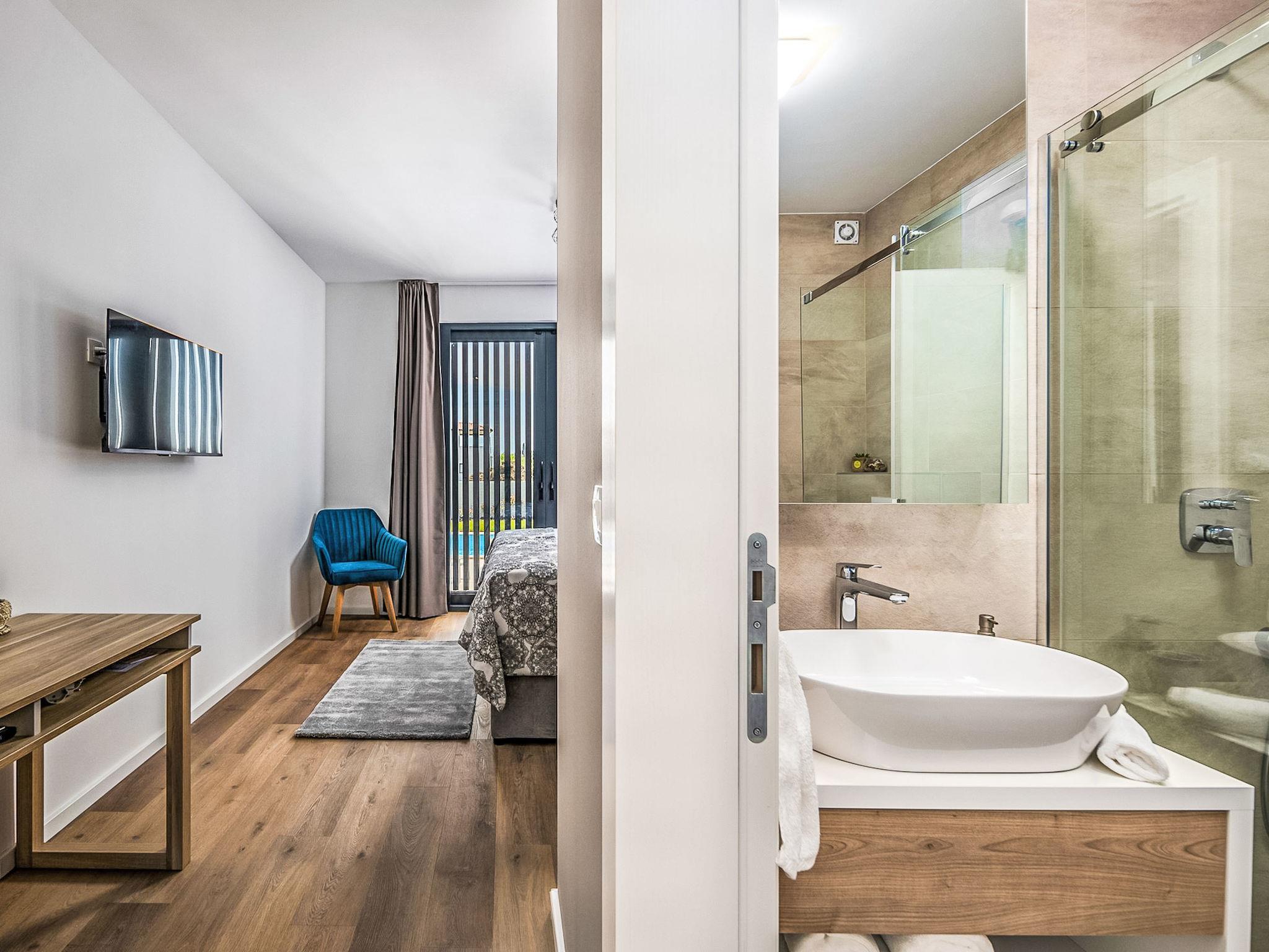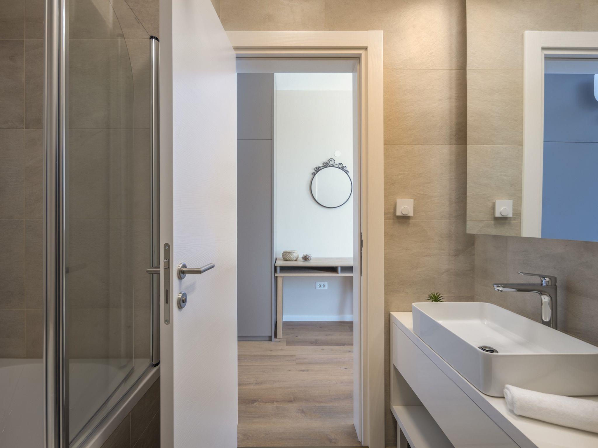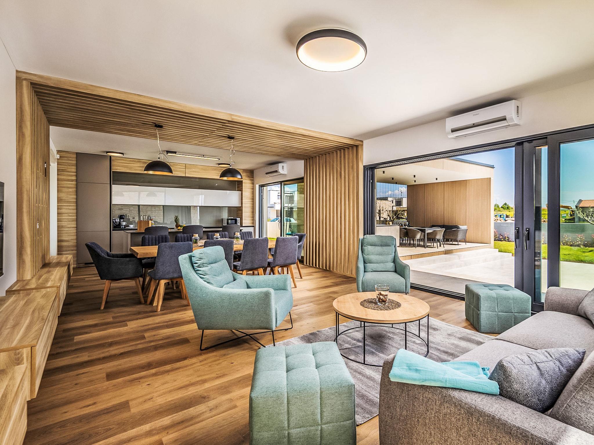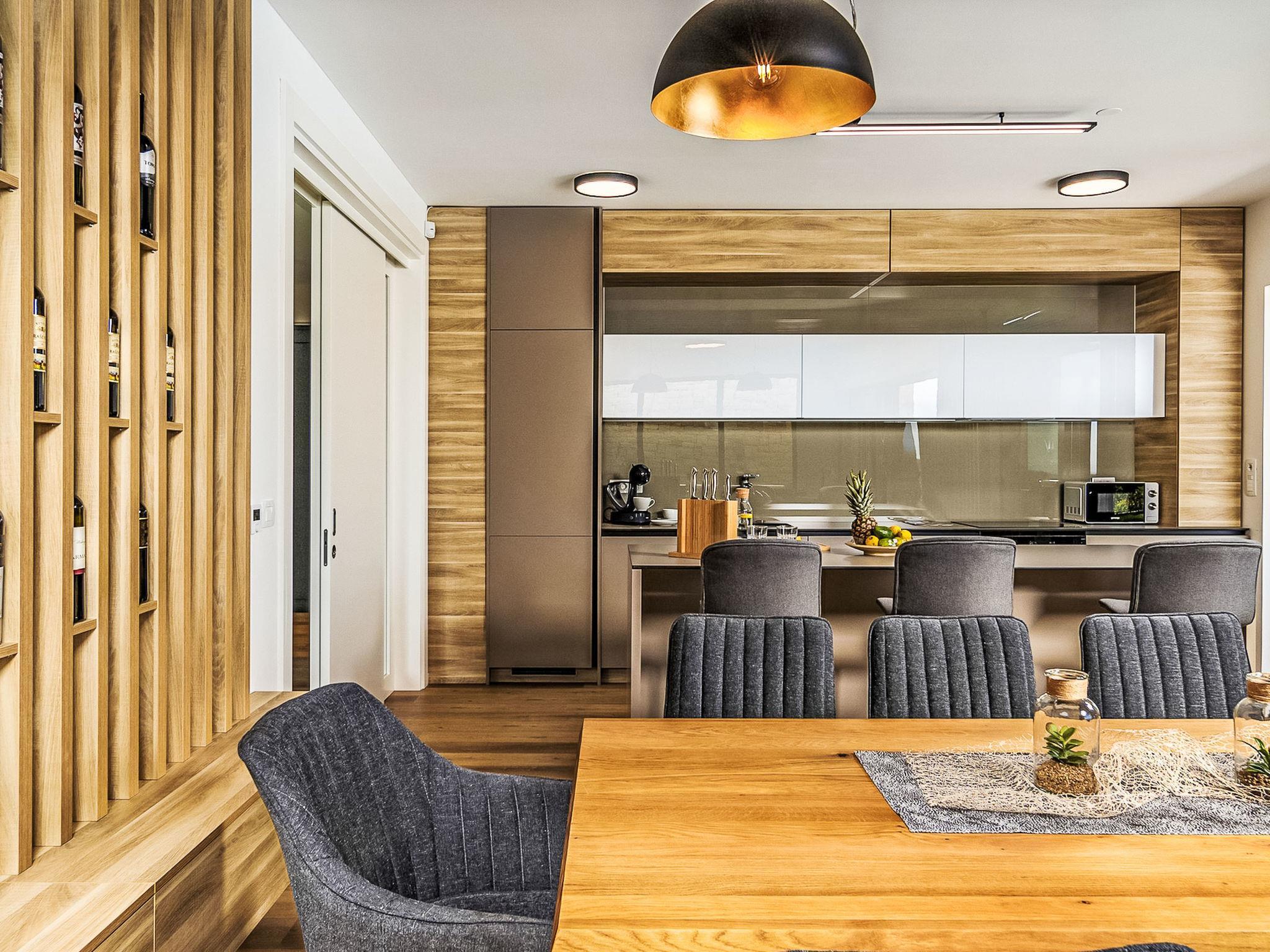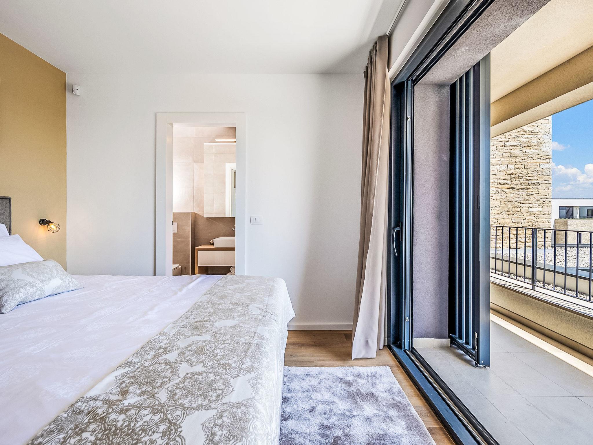 Modern, luxurious villa "La Perla", 2 storeys, built in 2021. 1 km from the centre of Nova Vas, 2 km from the centre of Brtonigla, 10 km from the centre of Novigrad, in a sunny position, 8.2 km from the sea. Private: property 900 m2 (fenced) with lawn, swimming pool angular, heated (60 m2, depth 135 cm, seasonal availability: 10.Apr. - 05.Nov.) with internal staircase. Outdoor shower, hot tub, badminton, terrace (10 m2), garden furniture, barbecue house. In the house: internet access, sauna, table football, trampoline, washing machine. Available: bicycles (2). Motor access (500 m via unmade road). Parking (for 4 cars) at the house on the premises. Shop 1.5 km, restaurant 650 m, bus stop 4 km, pebble beach 8.2 km. Walking paths from the house, cycle lane 100 m. Nearby attractions: Aquapark 2 km. Groups of teenagers on request only. Please note: airfield 20 km from the property. Swimming pool heated (extra). Video surveillance of the driveway and parking.