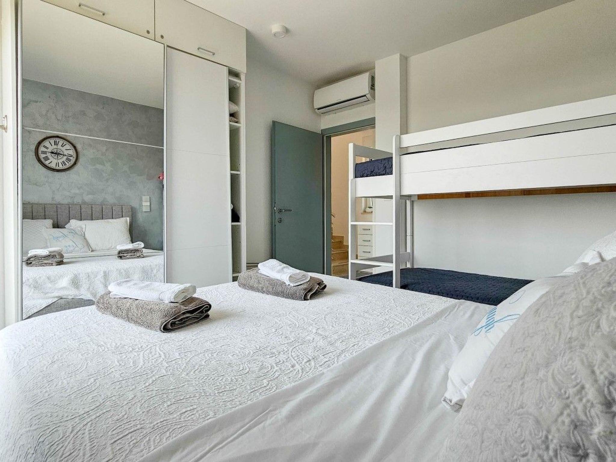 On the ground floor of the house there is a modern equipped kitchen with a dining room, a spacious living room with a sofa bed for 2 people, one bathroom and a laundry room. On the first floor there are two comfortable bedrooms with a double bed and an additional bathroom.