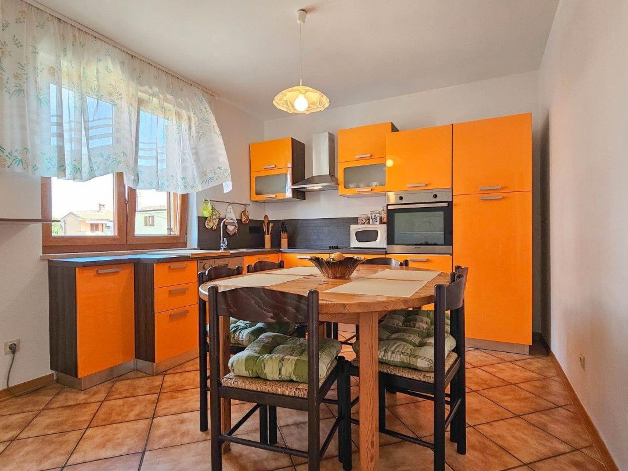 Located on the first floor, the apartment has three comfortable bedrooms, ideal for families or friends looking for privacy and comfort. The living room, spacious and bright, is perfect for relaxing after a day spent exploring the surrounding beauty, while the kitchen and dining room are equipped with everything you need to prepare delicious meals.