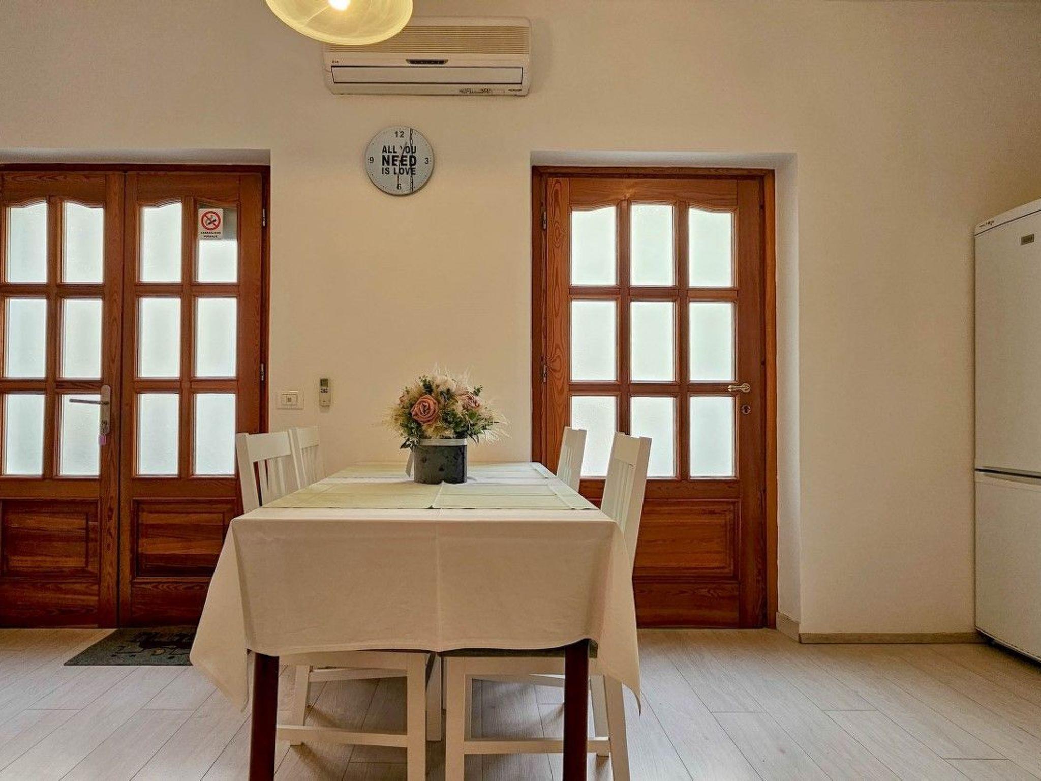 Stepping outside, the apartment opens up to a delightful terrace furnished with outdoor seating, where you can relax and soak up the serene atmosphere. This space, coupled with a garden for your exclusive use, offers an idyllic setting to unwind and savor the gentle sea breeze. The presence of the owner on the property ensures that any assistance you might need is readily available, adding a personal touch to your stay.