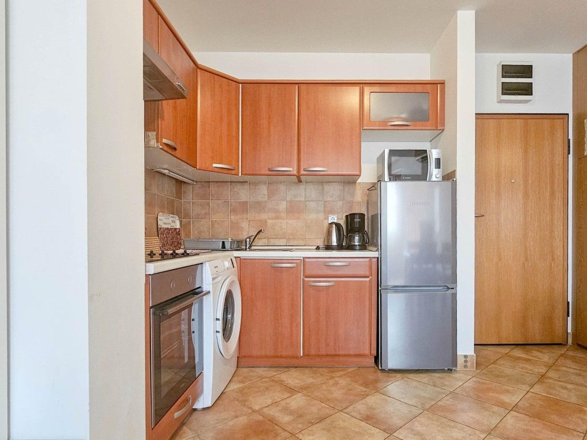 Inside, the apartment spans 45m2 on the second floor, featuring a well-equipped kitchen to cater to your culinary needs. The kitchen comes complete with an electric stove, oven, refrigerator, and coffee maker, ensuring you can start each day with a fresh brew. The living area provides a comfortable sofa bed that can accommodate an additional 1-2 guests, making this apartment suitable for small families or a group of friends. The inclusion of a washing machine for exclusive use adds a layer of convenience to your stay, making it easy to keep your holiday wardrobe fresh.