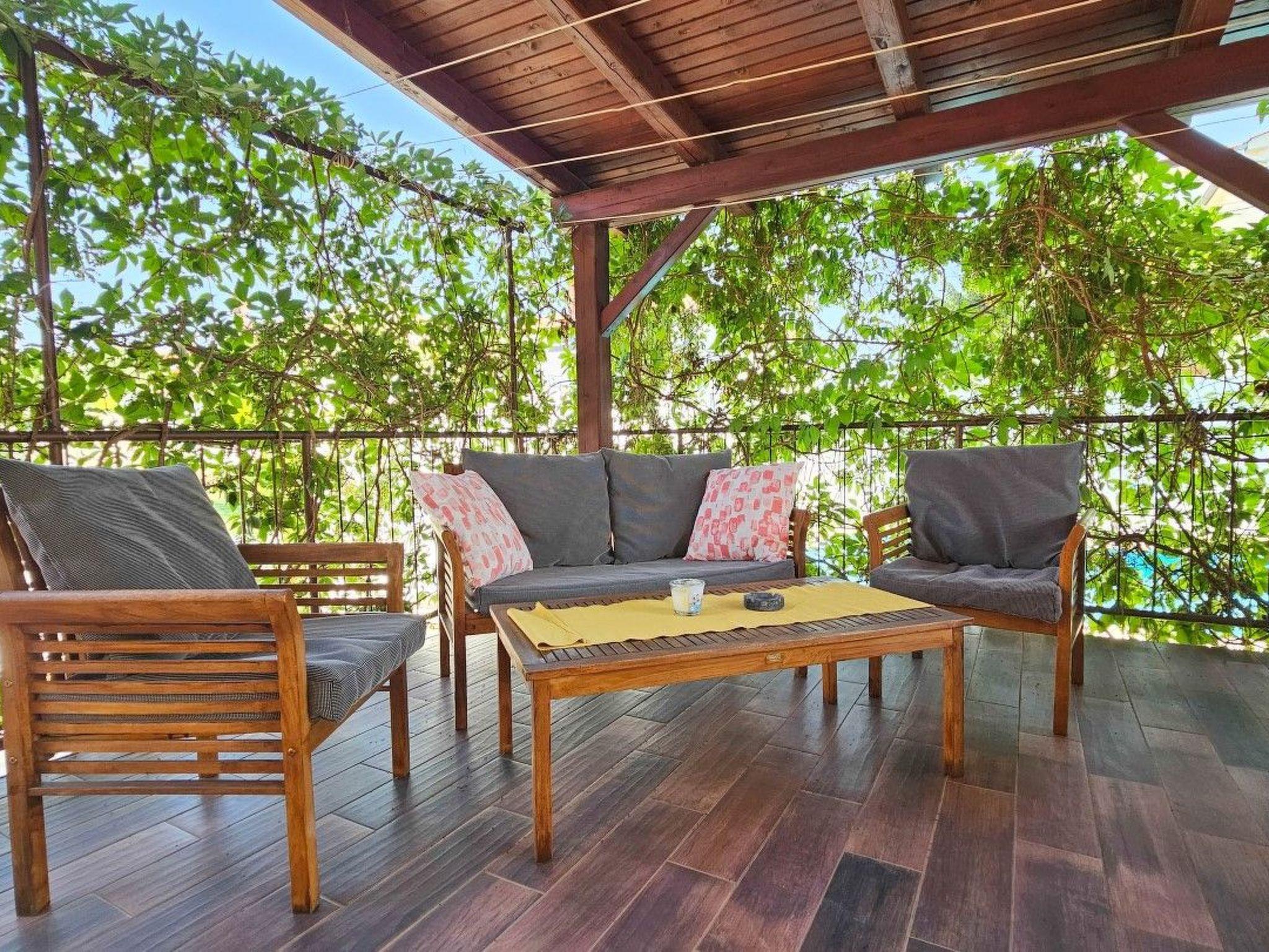 The outdoor space of the house is a real oasis of peace - a garden with greenery and a barbecue, a swimming pool with deckchairs and an outdoor shower make it the perfect place to relax under the sun. Enjoy swimming or simply relax in the shade, while evenings can be spent outdoors, absorbing the sounds of nature.