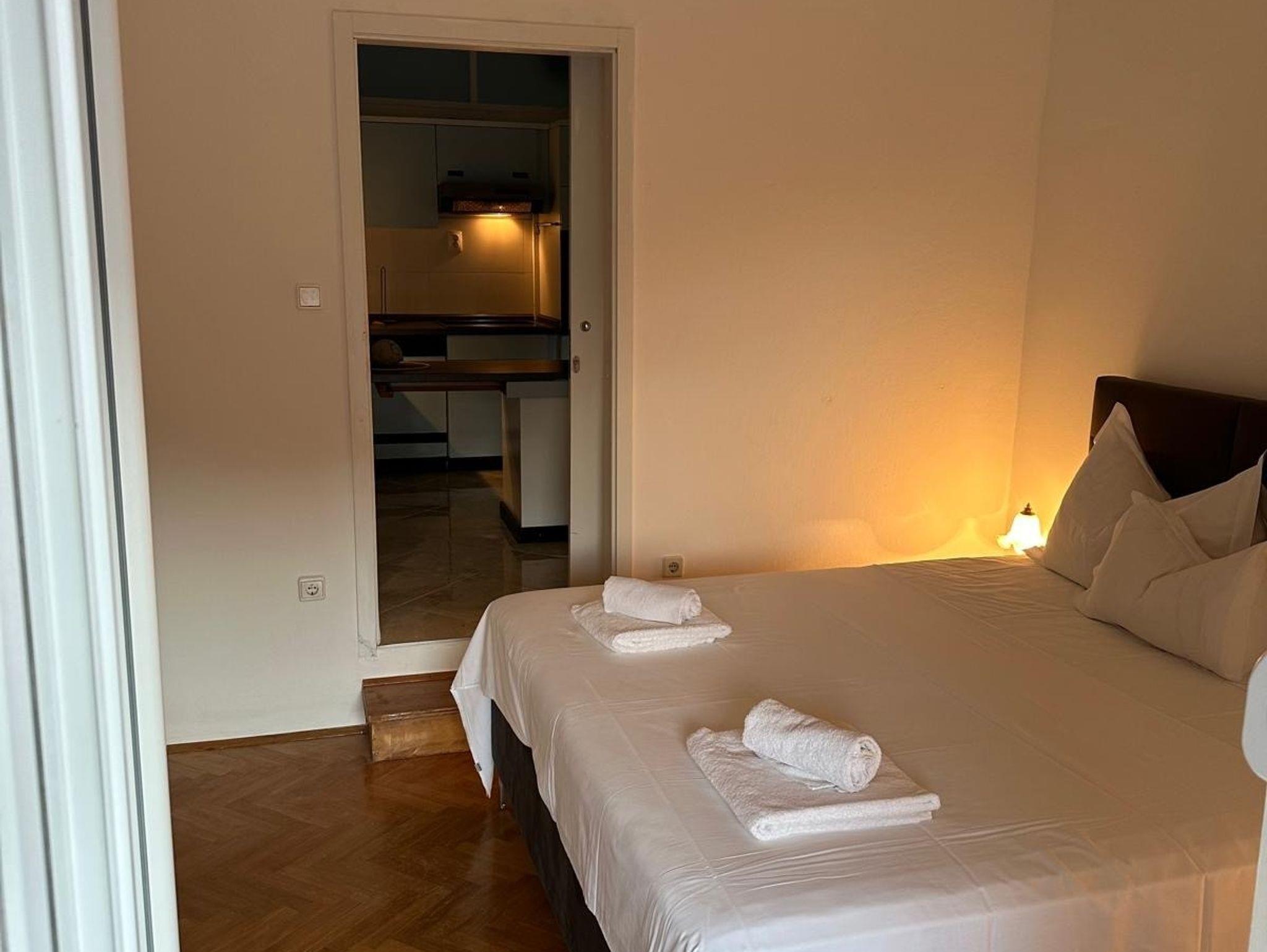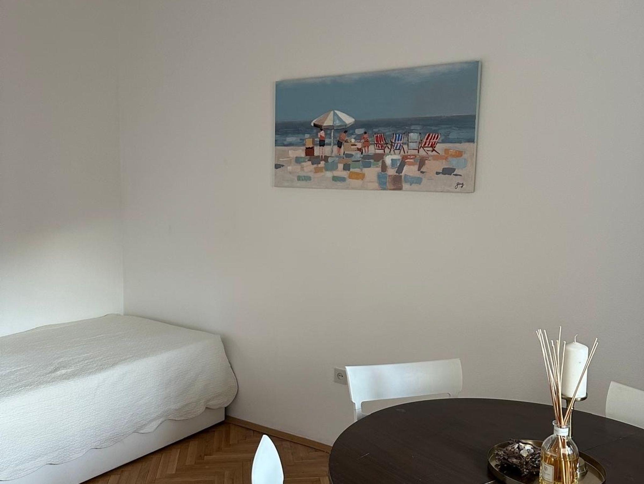 Ferienwohnung bietet Platz für 3 Gäste. Die Betten sind in Schlafzimmern, die es 1 gibt, und in Wohnzimmer, innerhalb einer Gesamtfläche von 32m2, angeordnet. Die Gäste haben eine eigene Terrasse zur Verfügung, auf der sie in warmen Sommernächten genießen können. Das Apartment bietet Meerblick. IM PREIS INBEGRIFFEN: Kurtaxe, Endreinigung, Klimatisierung, Internet, Föhn. VERBINDLICHE ZUSÄTZLICHE KOSTEN: Aufzahlung für Kurzaufenthalte (prozentualer Zuschlag pro Nächtigungsanzahl: 30% - 1, 20% - 2, 10% - 3). Die Verfügbarkeit zusätzlicher Dienstleistungen in Ihrem reservierten Termin und die Preise derselben (falls nicht aufgeführt) müssen im Voraus überprüft werden. Zusätzliche Dienstleistungen die in der Zahlungsaufforderung nicht aufgeführt sind werden direkt beim Vermieter bezahlt, angenommen der Gast nutzt auch diese.