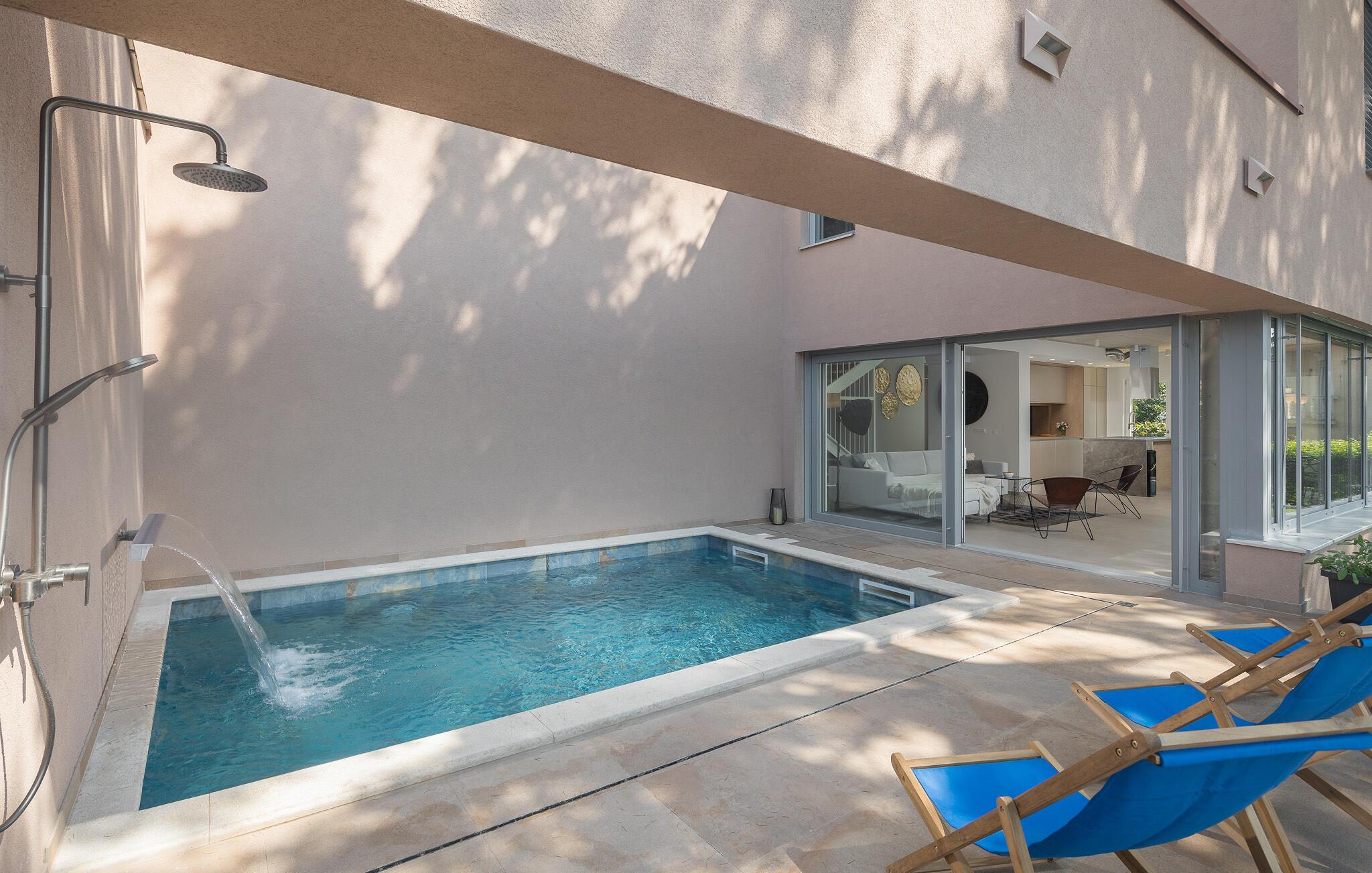 Promenera ut genom den breda skjutdörren till poolen och fräscha upp dig i det kristallklara vattnet. Koppla av på solstolarna och njut av de varma sommarkvällarna med ett glas vin på terrassen eller anordna en trevlig grillfest omgiven av medelhavsnatur.